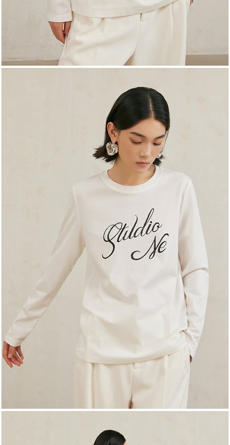 NEELLY纳俪商场同款冬季新款白色T恤女字母印花宽松圆领百搭显瘦N25104T04521