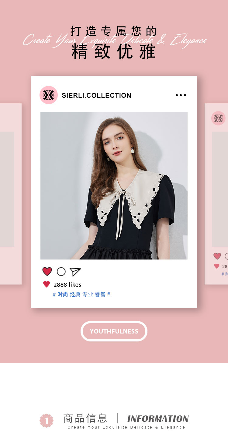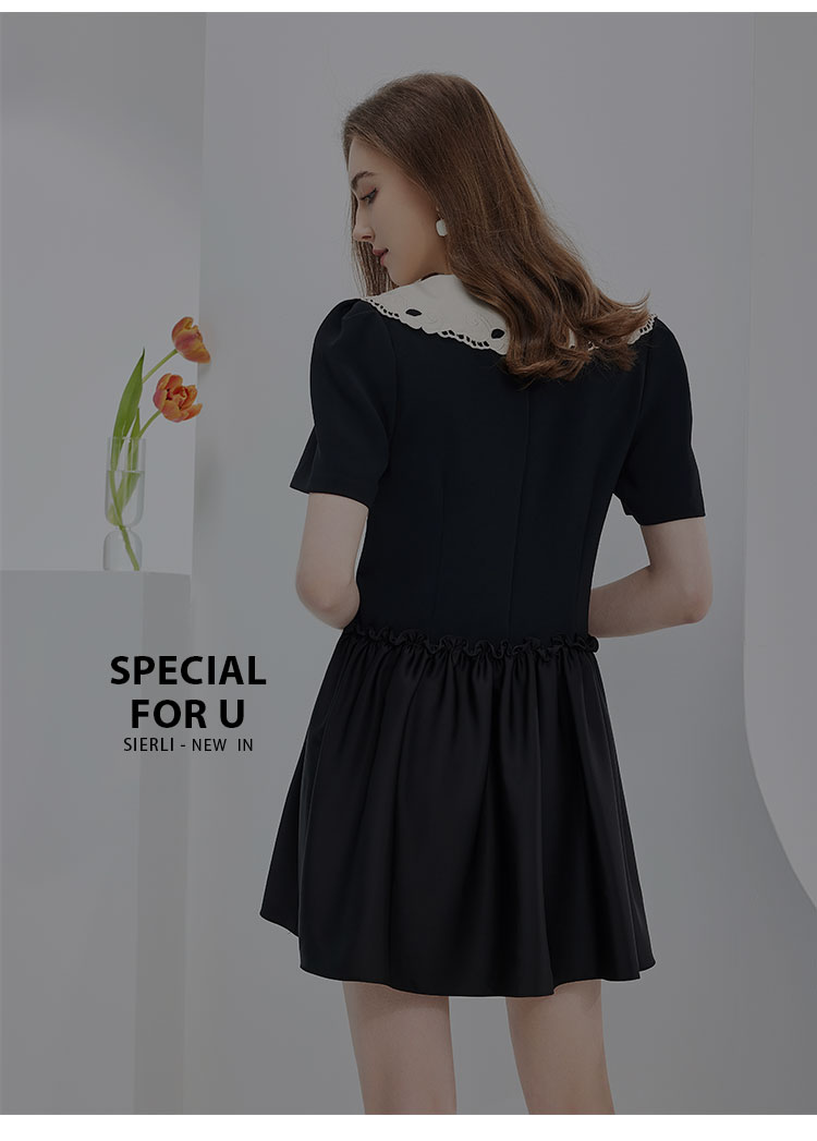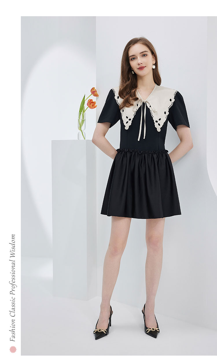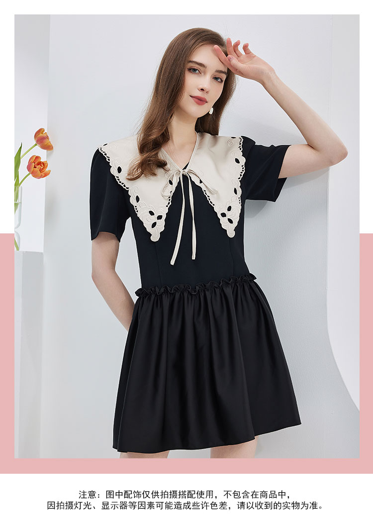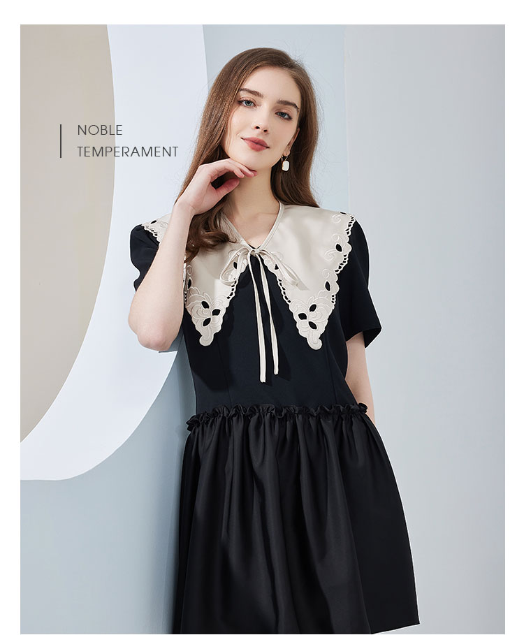 NF864斯尔丽瑟俪2023春夏新品可脱卸刺绣大领子撞色时尚宽松版连衣裙