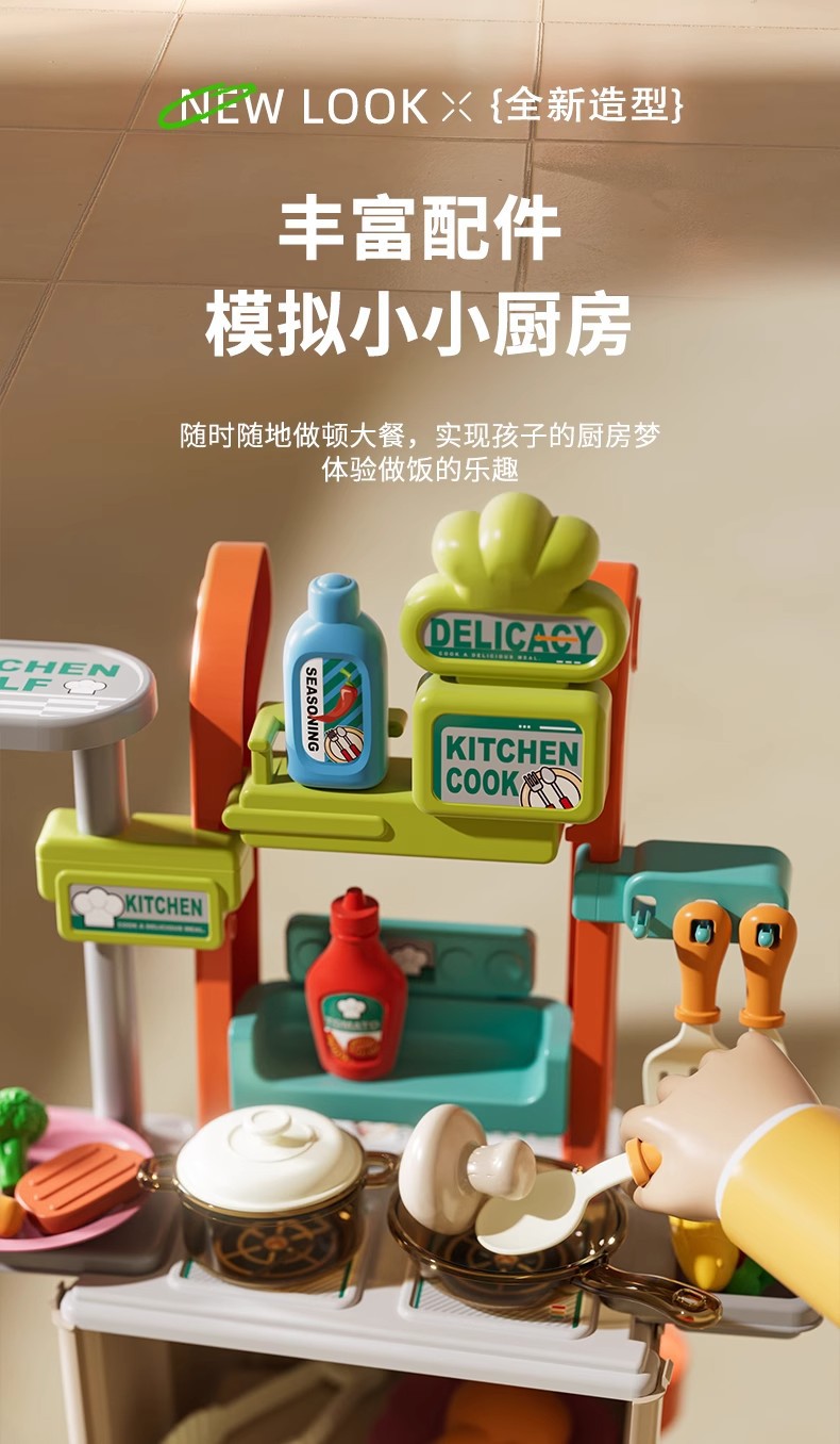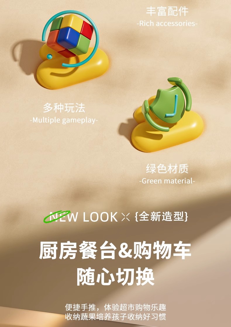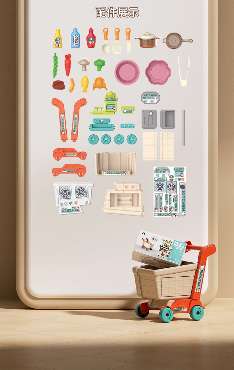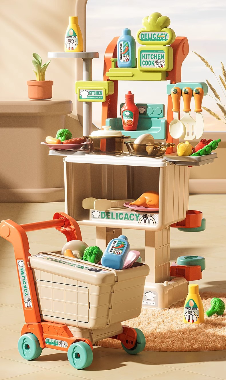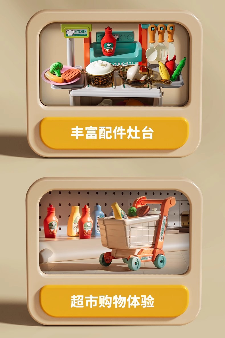 【云优选】专为儿童设计的厨房购物台儿童仿真迷你厨房2合1礼盒装 过家家宝宝超市购物小手推车 女孩切菜玩具 玩转欢乐食光