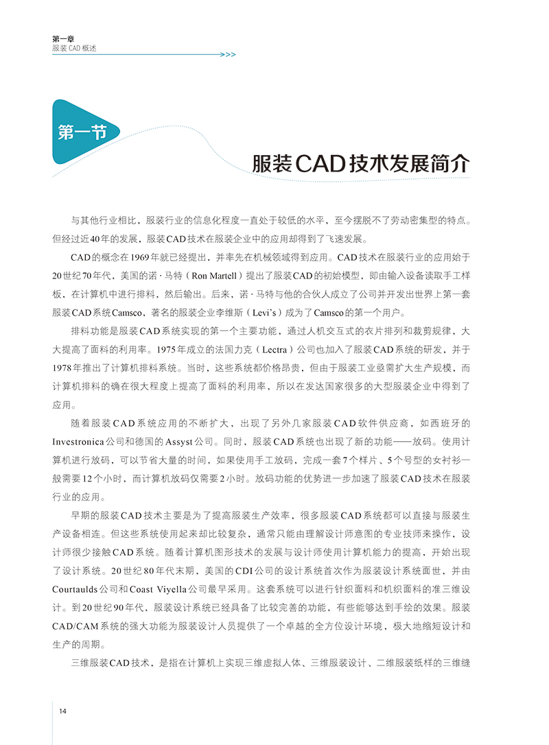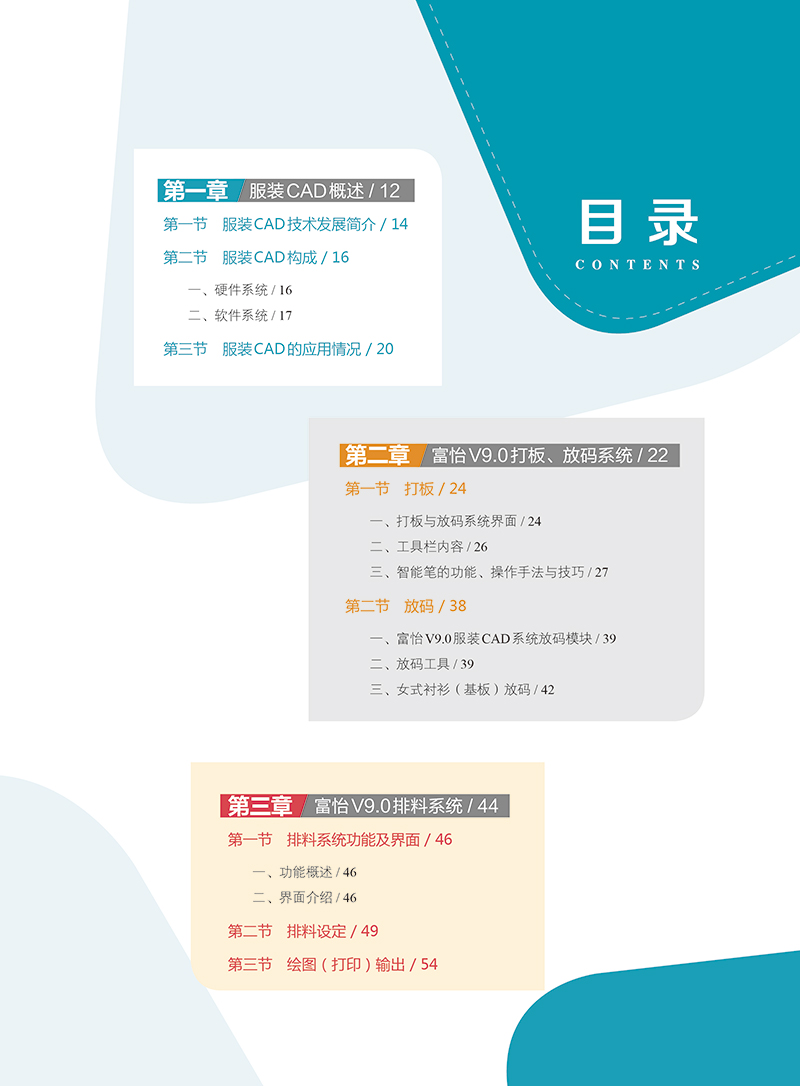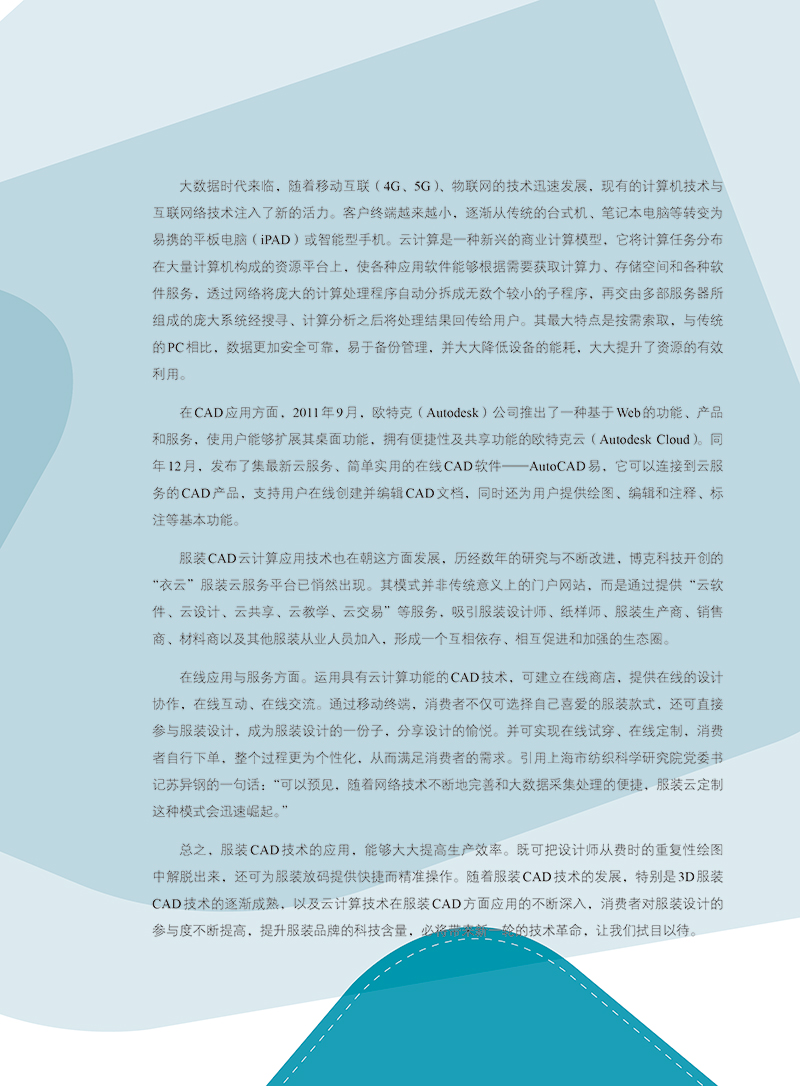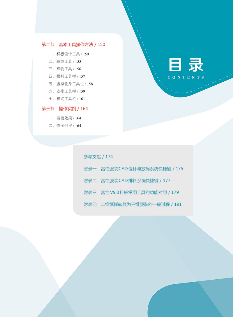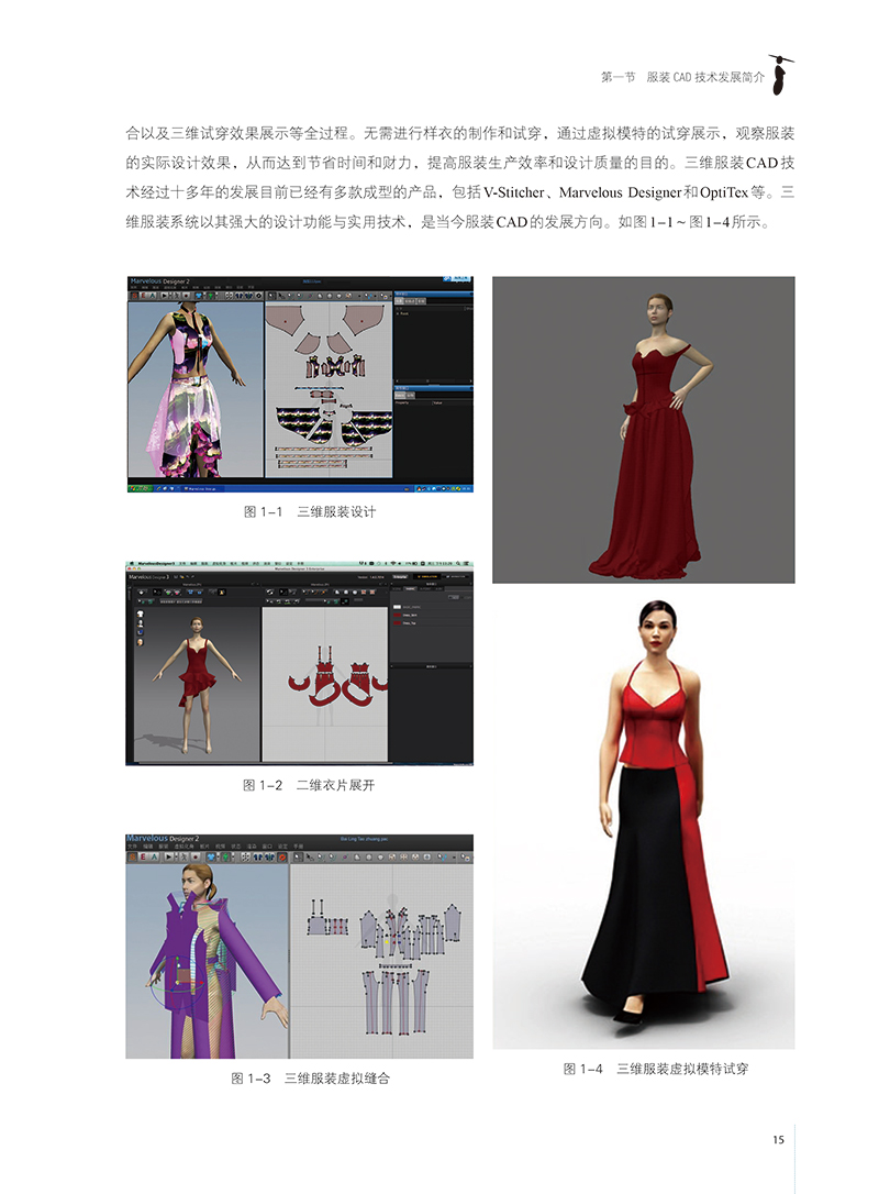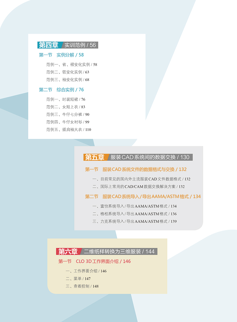 《服装CAD基础与实训》以深圳市盈瑞恒科技有限公开发的“富怡服装CAD V8.0”版本为基础,该系统的纸样设计与放码模块融合,较为符合我国服装板型师的打板手法,智能化程度较高,操作简便,便于上手。本教材采用由易到难的方式叙述。我们将整个内容划分为以下几个部分:服装CAD概述、系统工具功能介绍、实训范例、数据交换、二维纸样转换为三维服装等五个章节。1. 章“服装CAD概述”部分介绍了服装CAD的基础知识,帮助读者了解服装CAD的发展状况及外的*技术。2. 章“系统工具功能介绍”部分介绍了富怡服装CAD系统的工具和菜单,并给出了每个工具的简单介绍,以图的形式显示出来,便于初学者浏览查阅。3. 第三章“实训范例”部分以实例为基础,详细的讲解了所有的制作步骤,详细的制作信息可以帮助你再现每个实例。在编排此书时,采用了配图与讲述的内容紧密配合的版式,每个步骤的后放置的图片与实例相应的步骤一一对应。4. “数据交换”部分介绍了不同CAD软件数据存储的格式与数据交换的方式。5. 第五章“二维纸样转换为三维服装”以Marvelous服装试衣系统为平台,介绍了从二维纸样转换为三维服装的操作方法。从事服装CAD应用的人员,应该具备较扎实的服装制板专业知识与计算机的运用能力,本书作者长期从事高等院校服装CAD教学与教材编写工作,在结合企业服装CAD生产实践的基础上,积累了丰富的实验/实践教学经验,将服装专业知识融入服装CAD的学习中。着重介绍纸样设计主要工具应用及纸样变化,读者可通过学习本书所提供的范例,配合所附的光盘视频演示,反复实践,可快速掌握服装CAD软件的操作技巧,并能在实际应用过程中灵活运用、举一反三,从而在工作中得心应手。