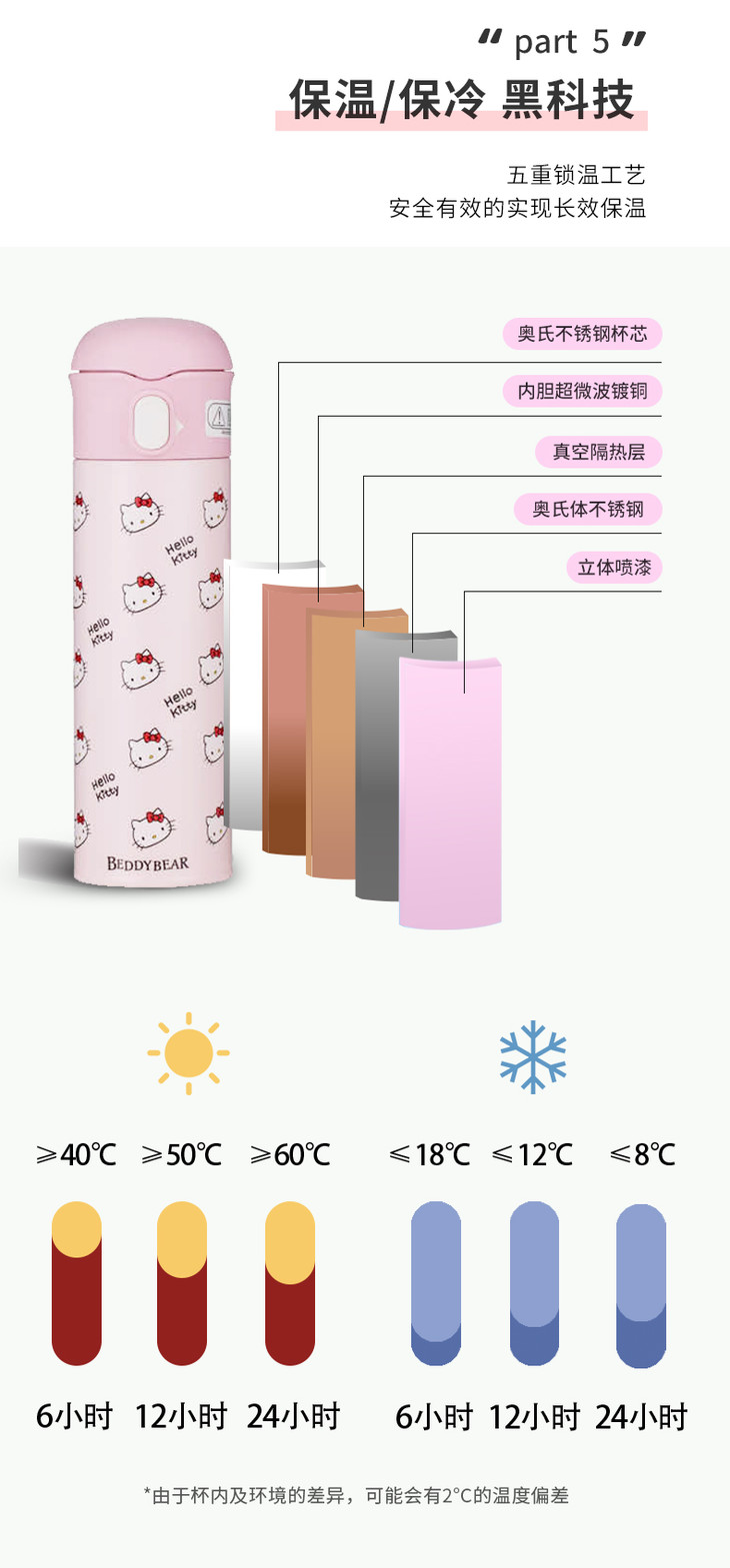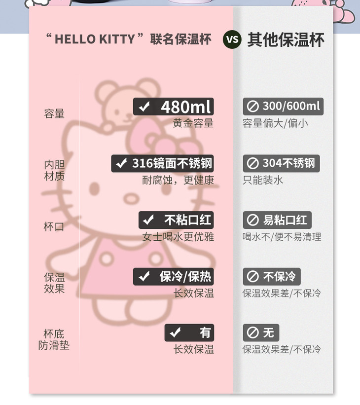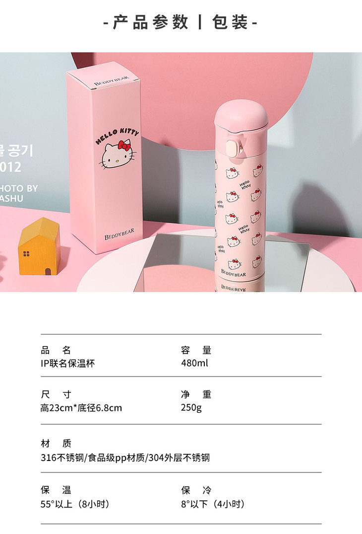 杯具熊新款HelloKitty联名保温杯女学生成人316不锈钢水杯(480ml)
