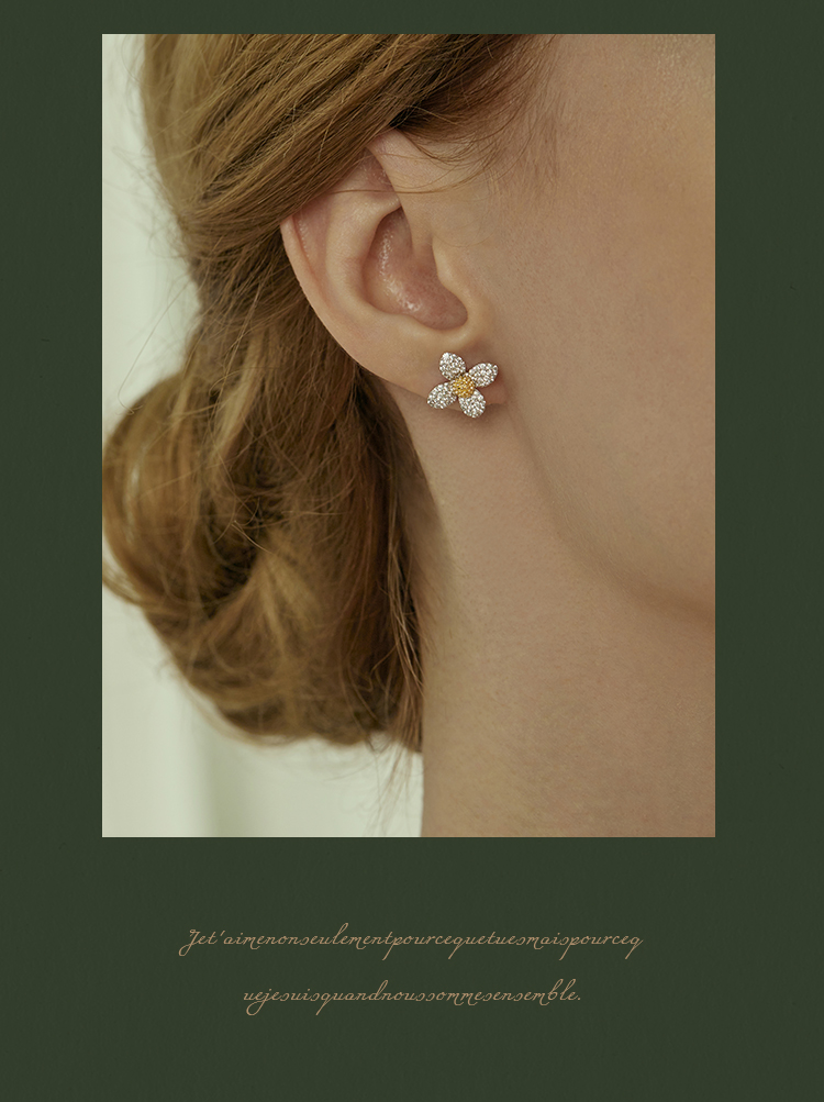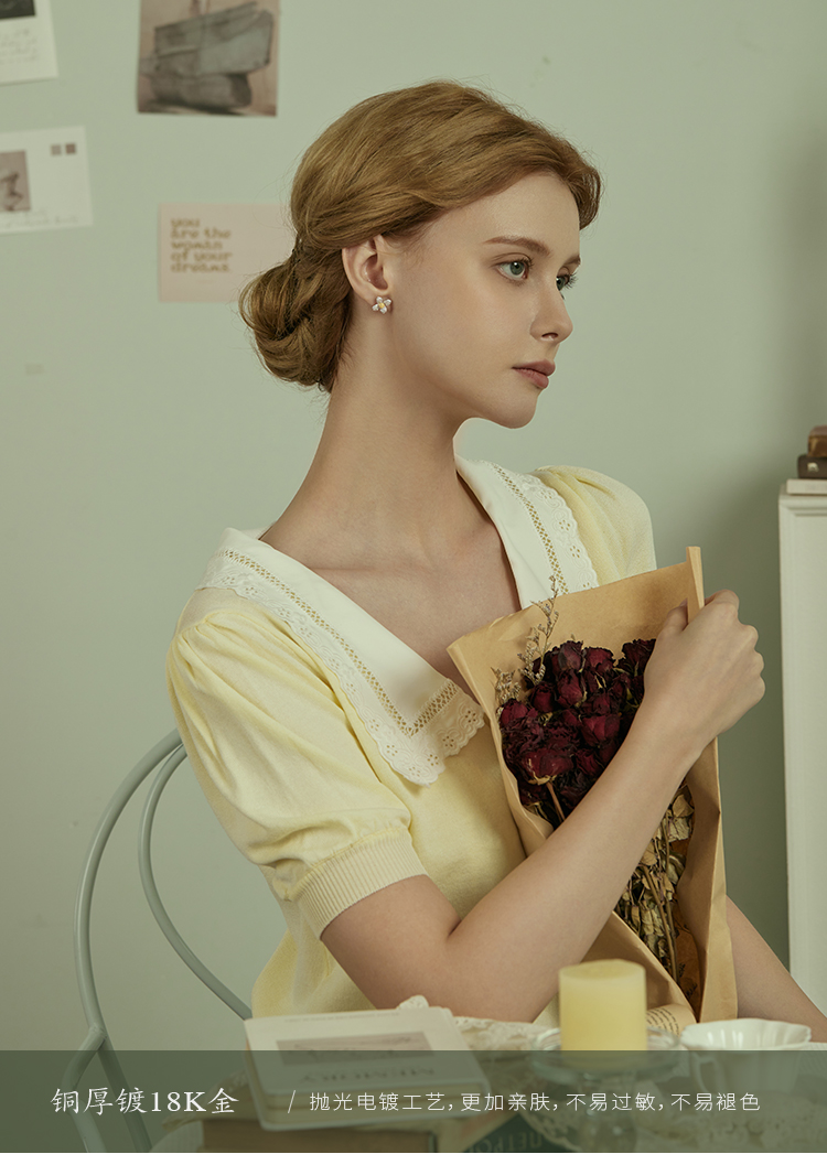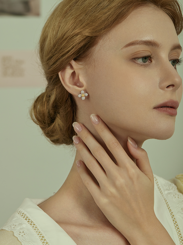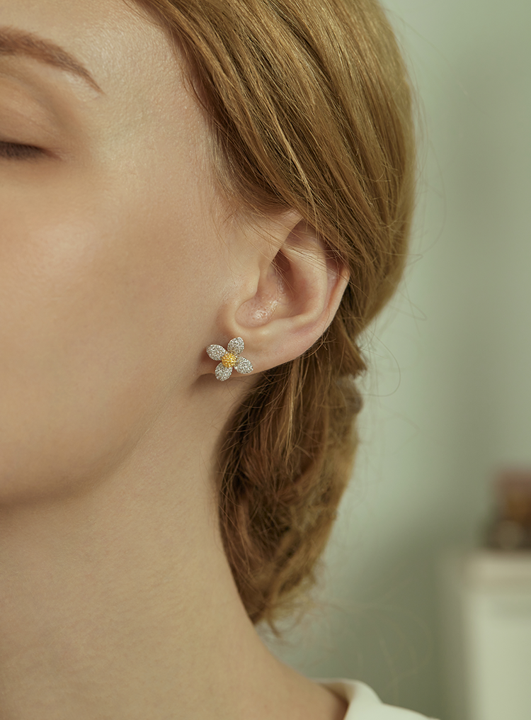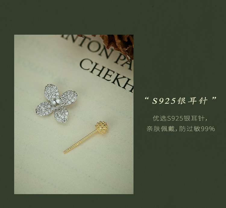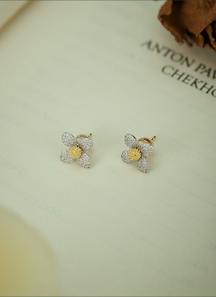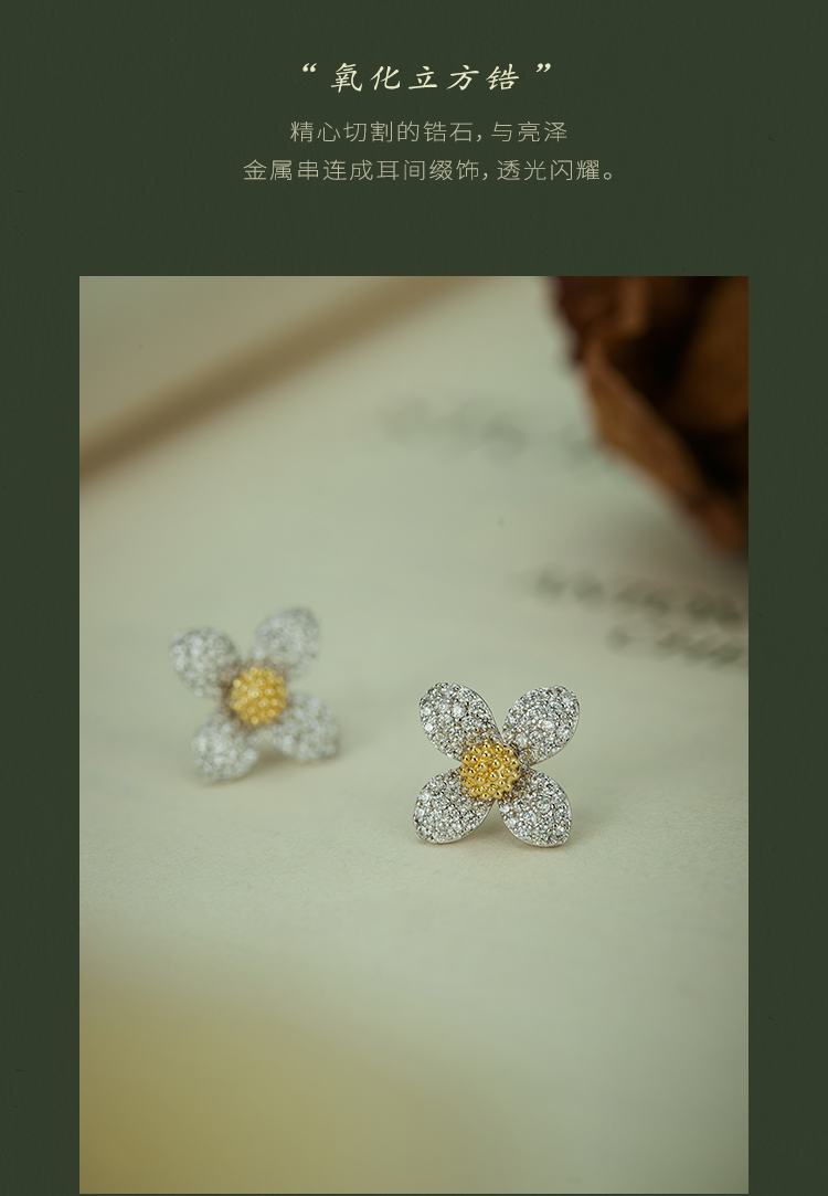 Oflye潮流饰品 气质四叶花朵耳环新款轻奢小清新满钻两戴耳钉女