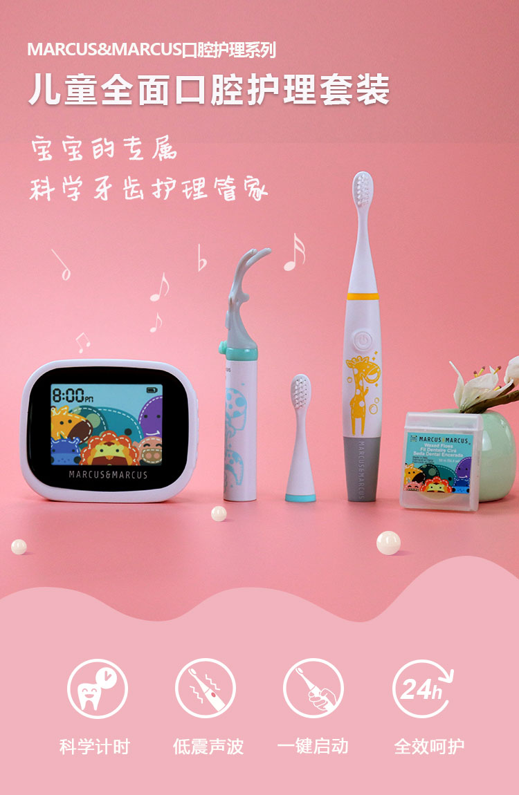 加拿大MARCUS&MARCUS儿童电动牙刷全面口腔护理套装【马库狮】