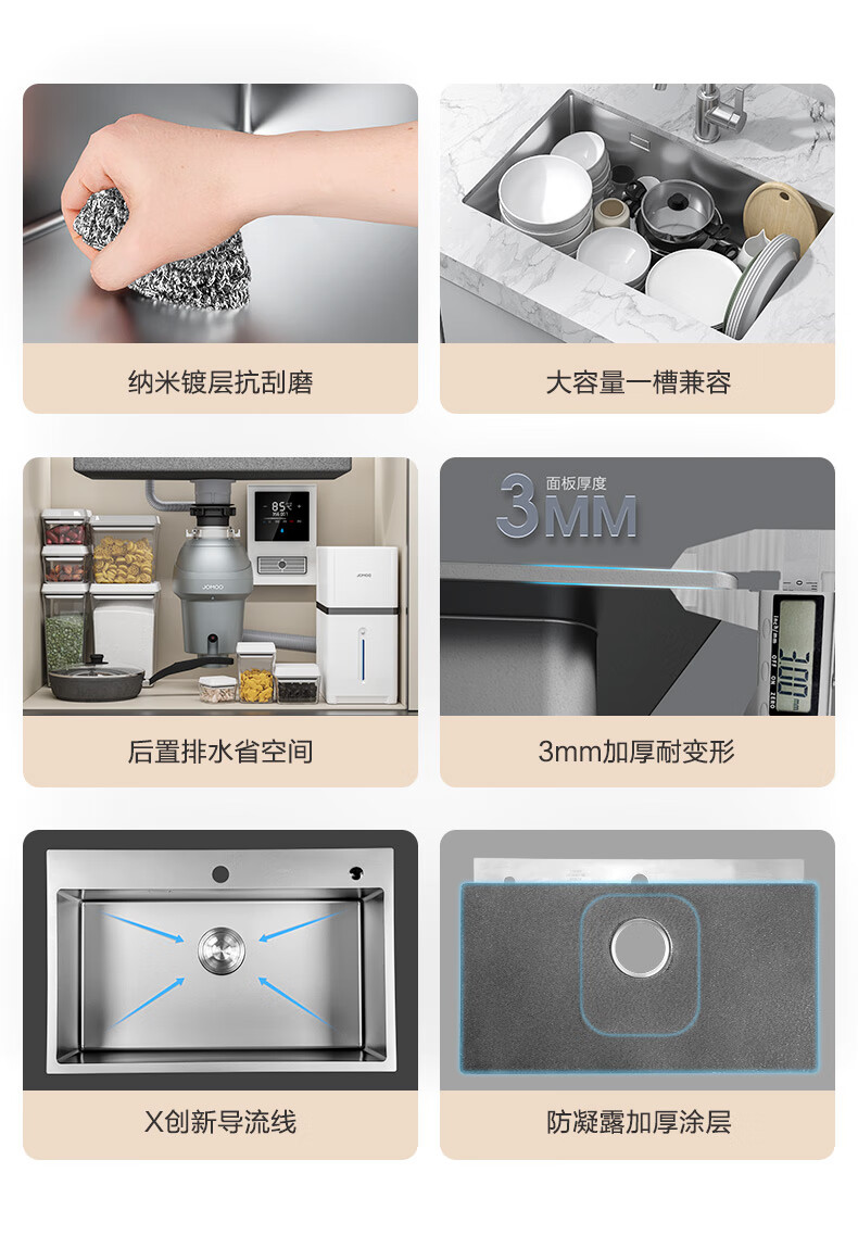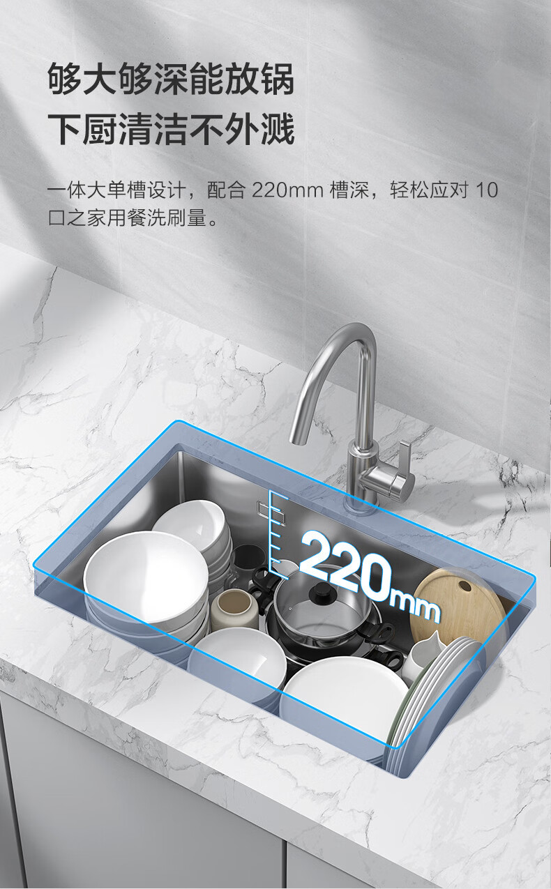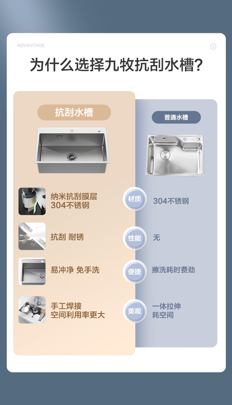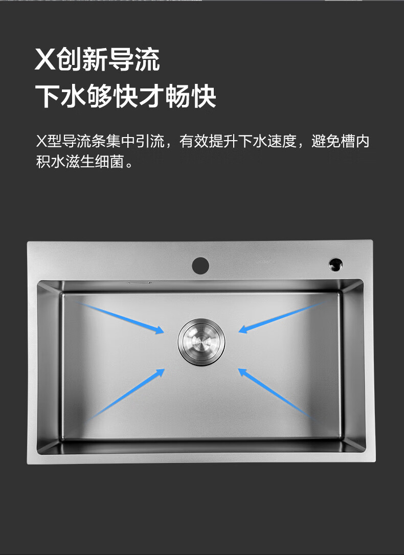 九牧(JOMOO)厨房大单槽不锈钢抗刮水槽龙头洗菜盆70*45(无龙头)06158-CZ-1