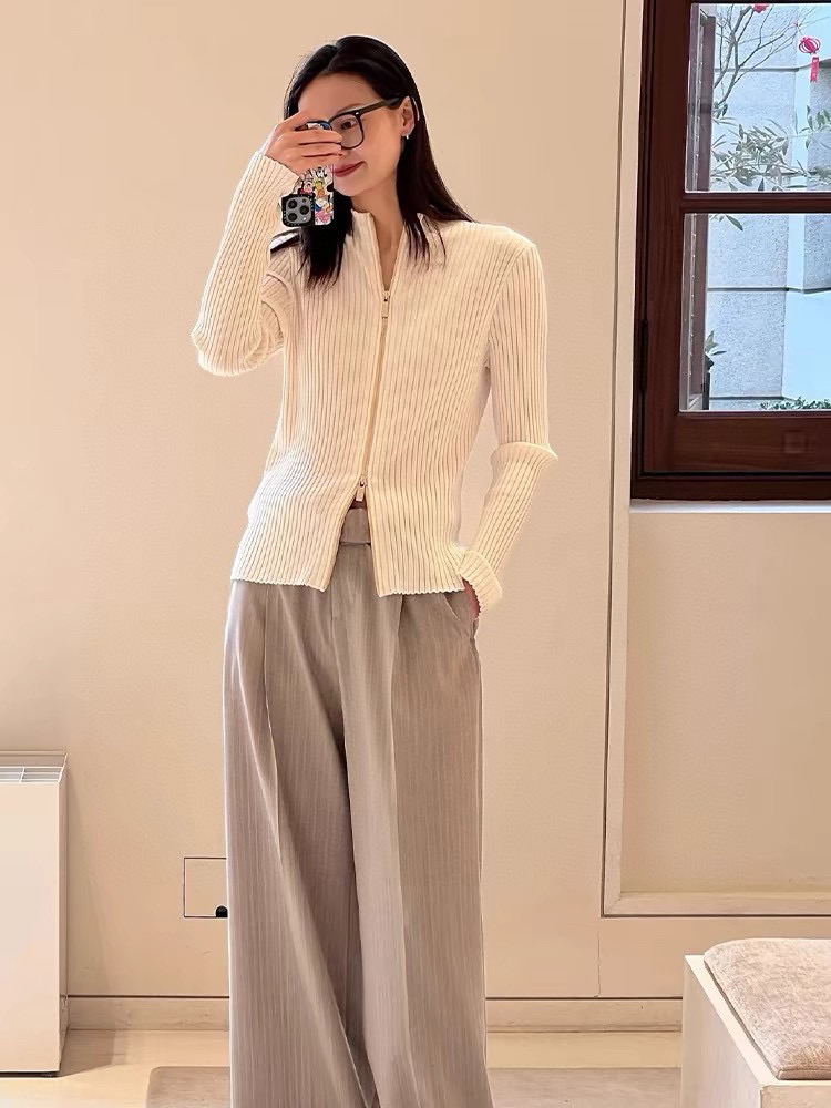 正经原厂单,真丝羊毛,科学配比,软糯细腻,出汗光速透湿了,能始终保持身体干爽。超细支纱线,贴身穿着超舒服😌。螺纹坑条针织很有品质感。拉链都是手工敲边,细节无可挑剔