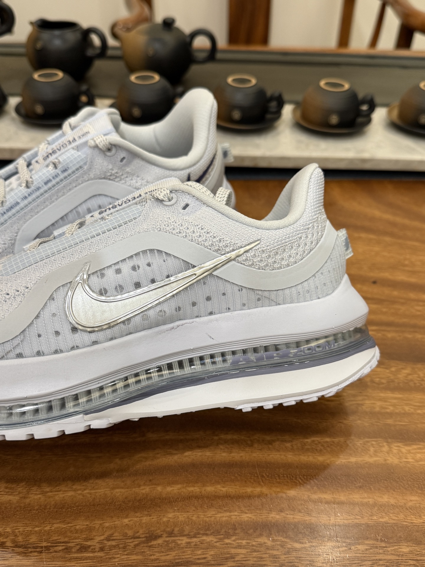 有史以来第一双拥有弯曲全掌的AIR ZOOM气垫,且结合ZOOM X 和REACT X 三明治的科技结构。从前掌开始以自然弧度延伸至后跟,能有效传给跑者从后脚触地到脚尖离地的力量。全掌可见的Air Zoom:首次在Pegasus系列中出现,模仿了Vaporfly的碳板曲线,增强了跑步时的流畅过渡