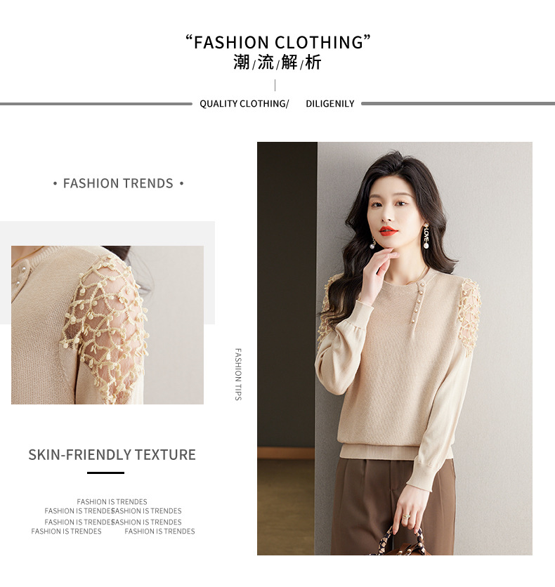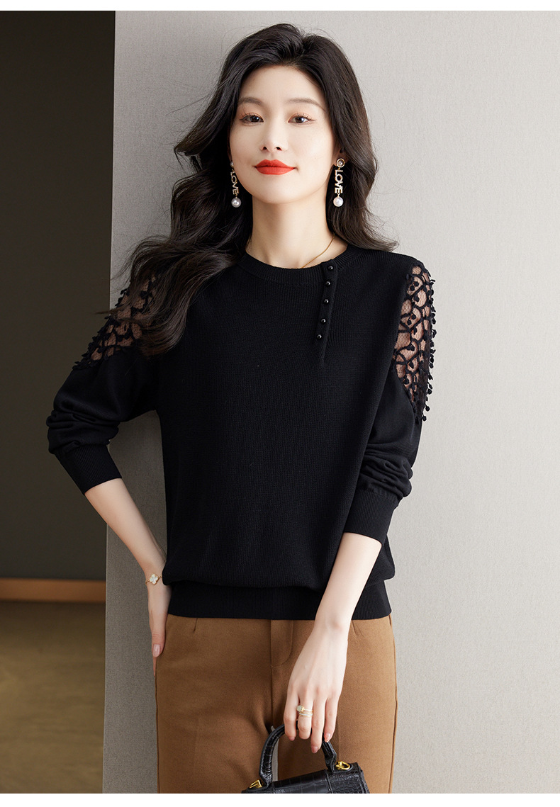 早春上衣镂空蕾丝针织衫CC-2419