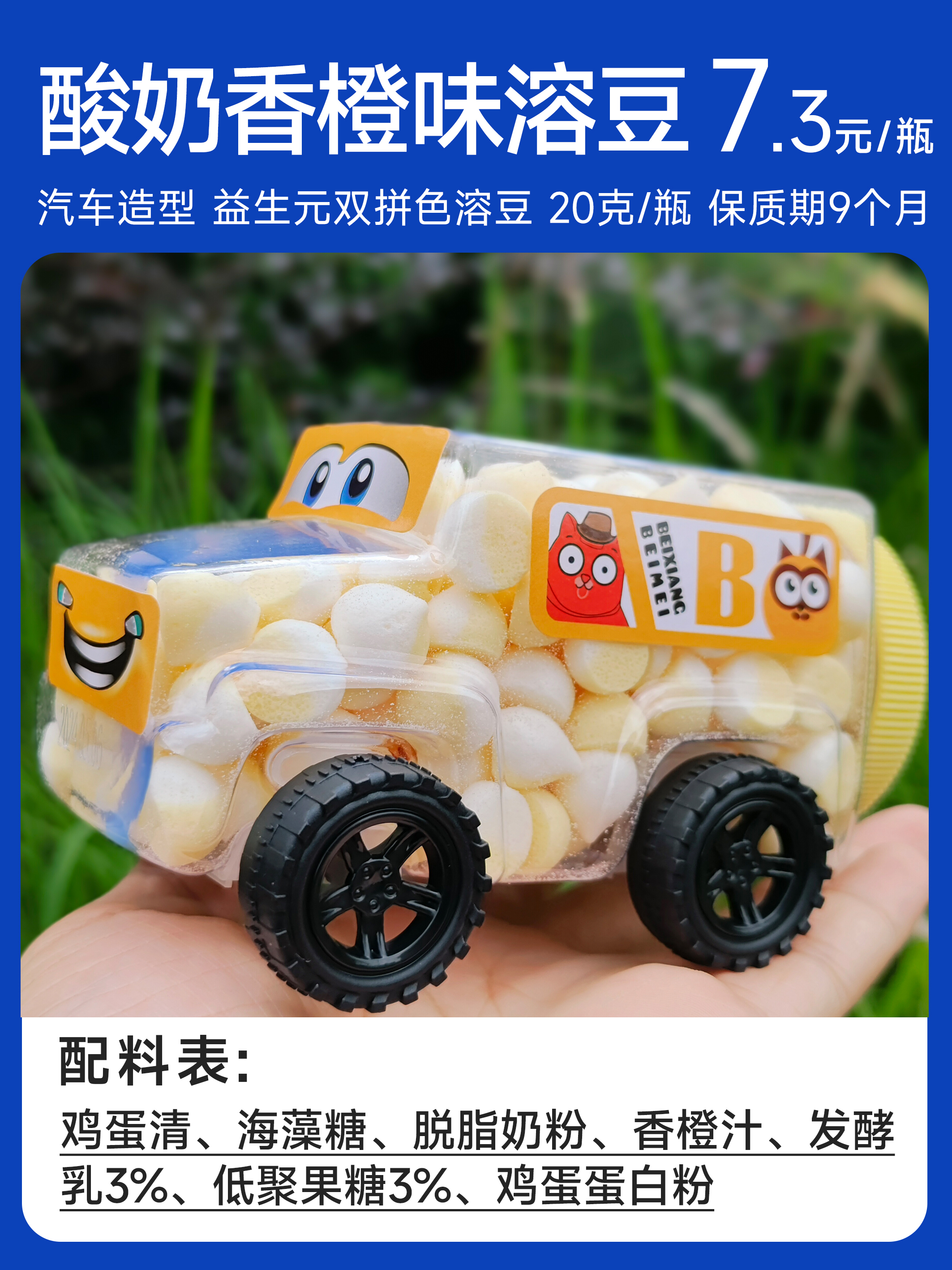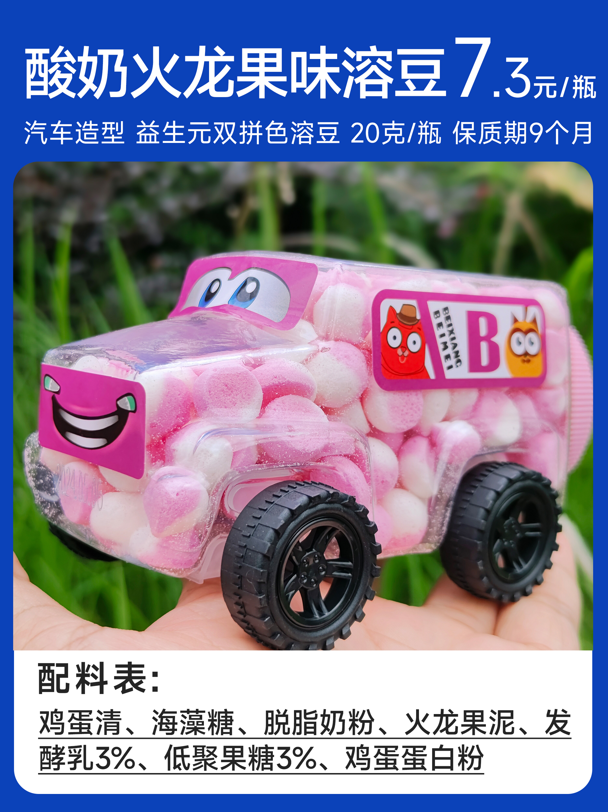 12月新货| 汽车瓶益生元拼色溶豆 双拼更有味 20克/罐 保质期9个月