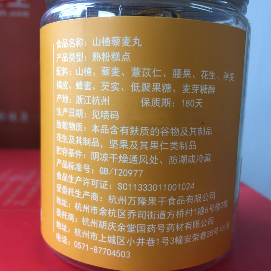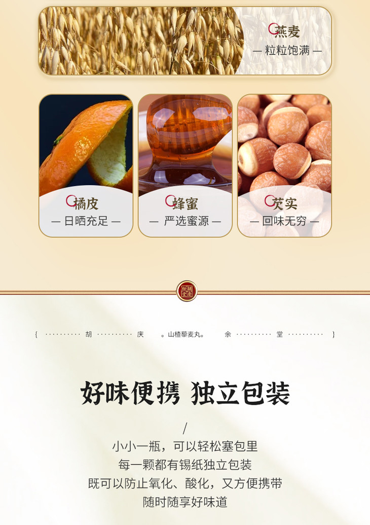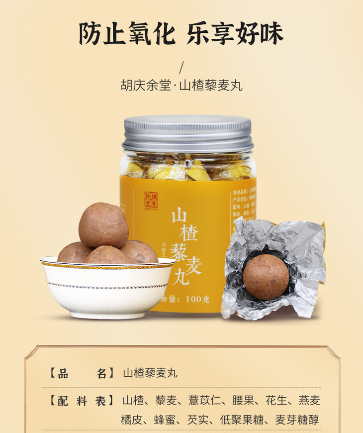 胡庆余堂 开胃解腻 山楂藜麦丸 3罐6罐12罐