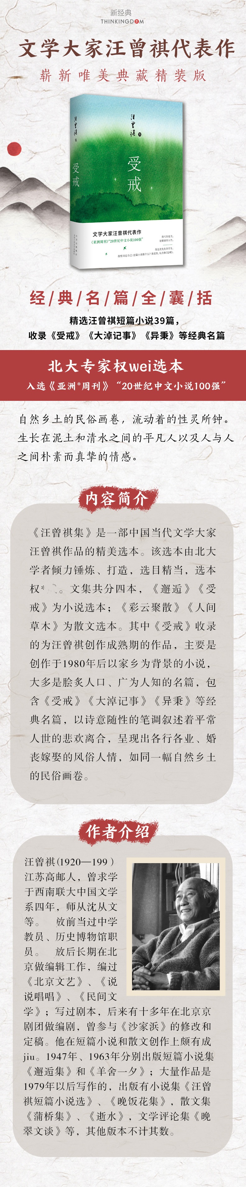 - 北大专家权*威选本,囊括汪氏经典作品