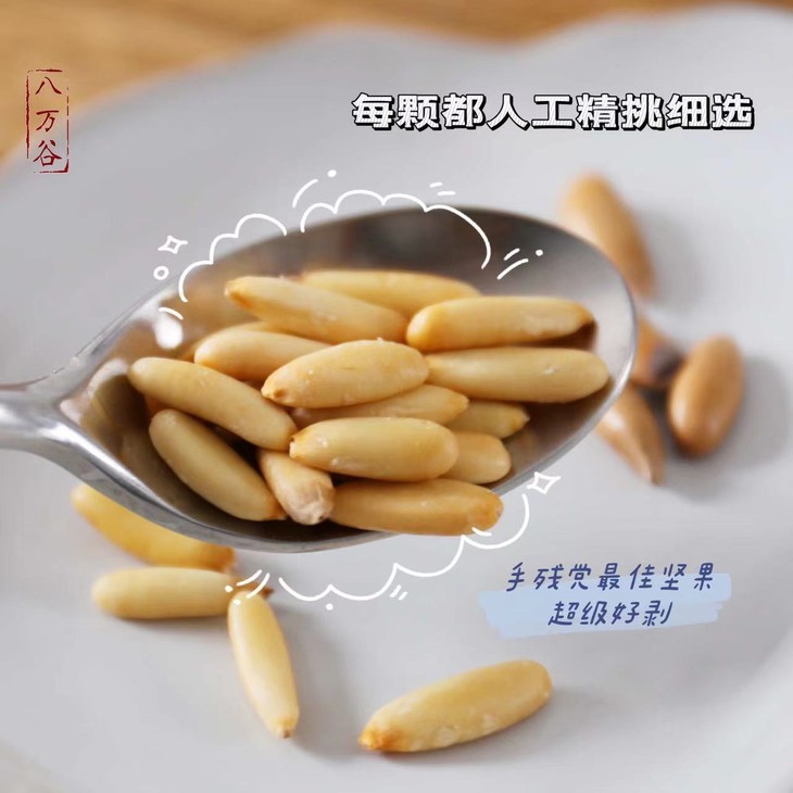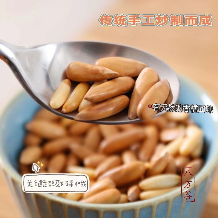 只选用当季的巴西松子做的,炒制的时候,只加了适量食用盐调味。