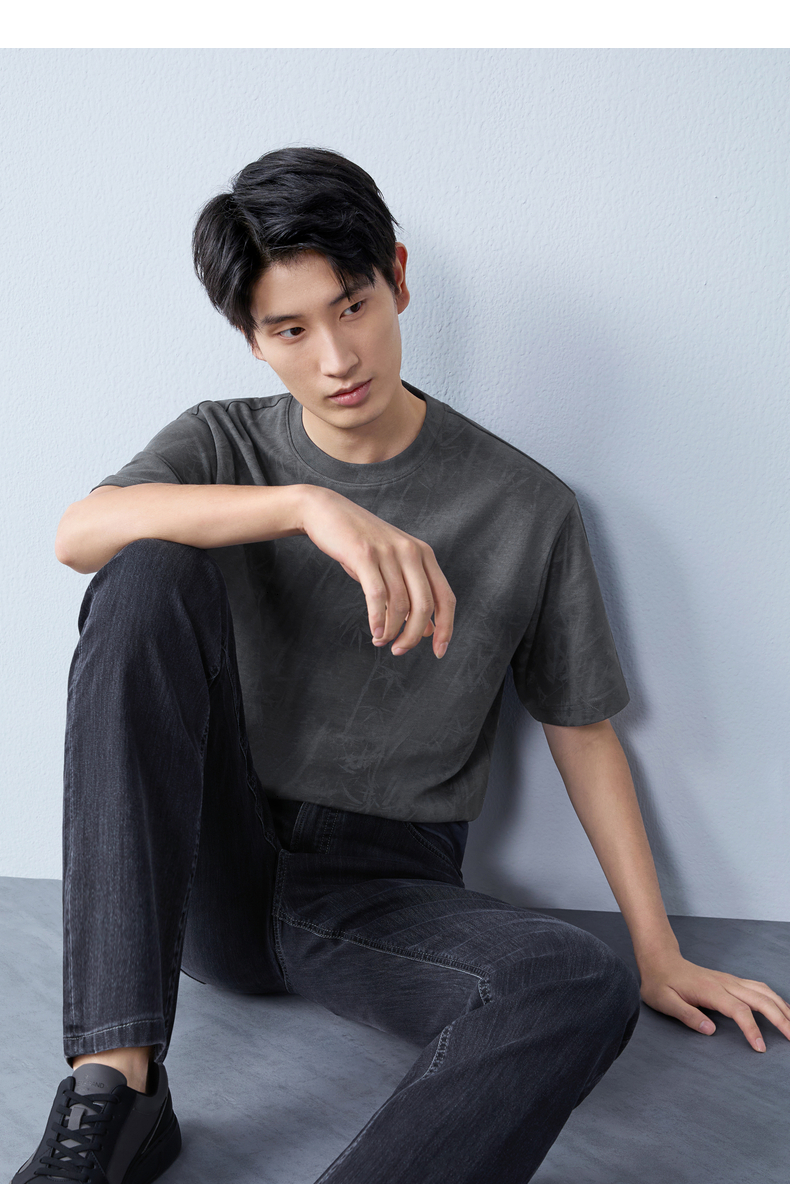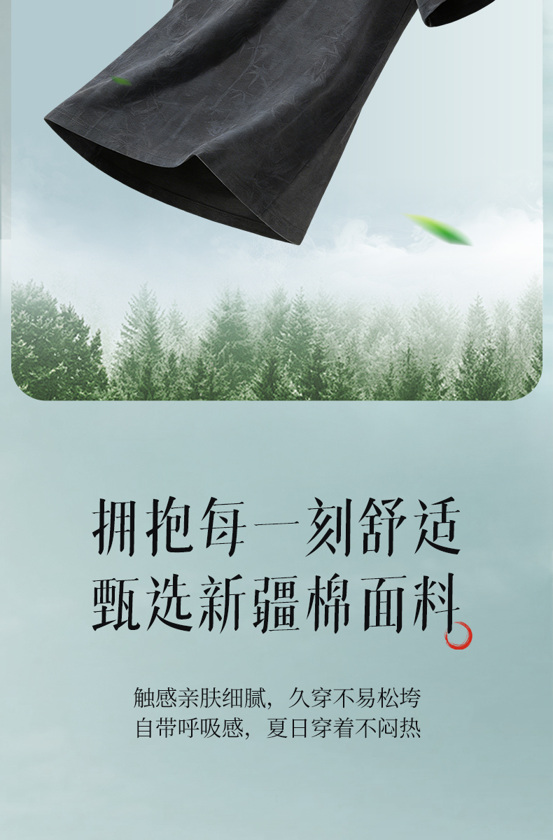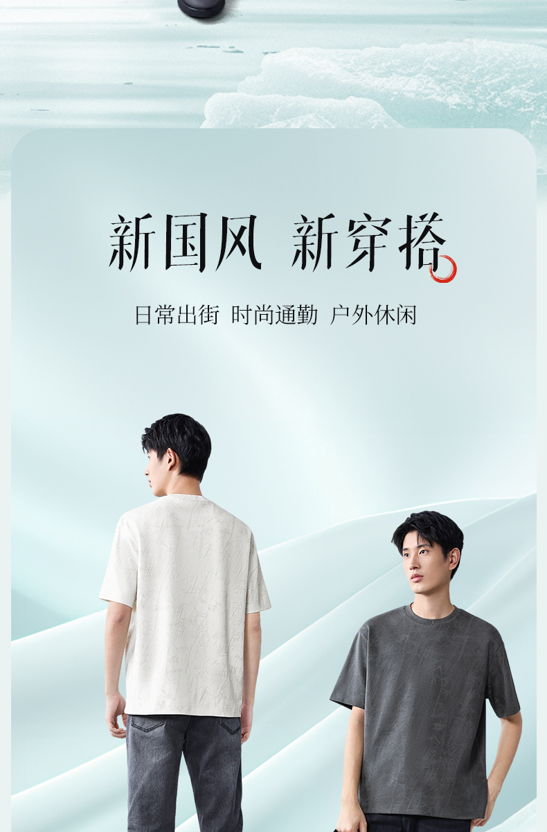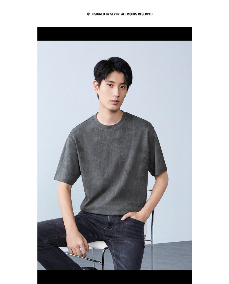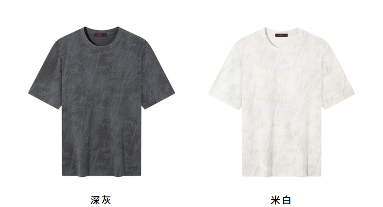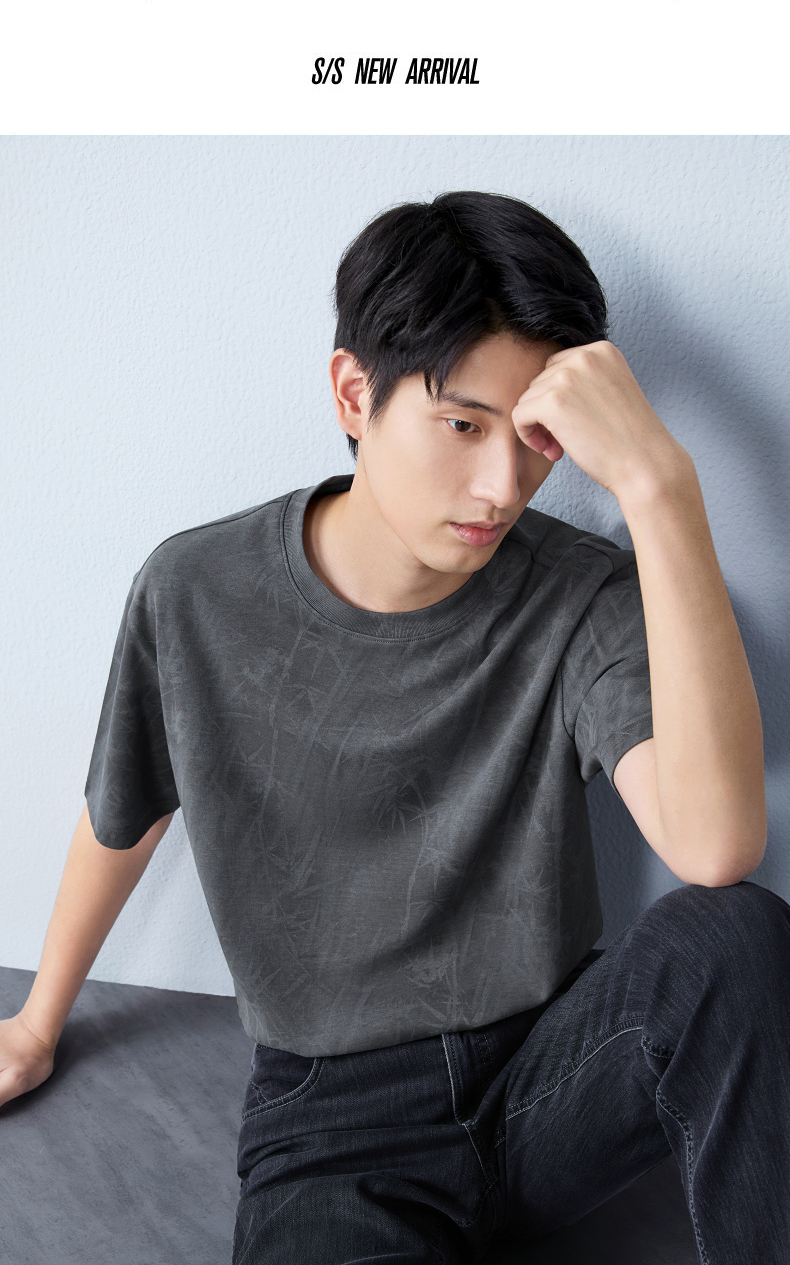 【蜡染T恤】柒牌男装2026夏季圆领宽松国风竹纹印花新疆棉短袖T恤 130T72340