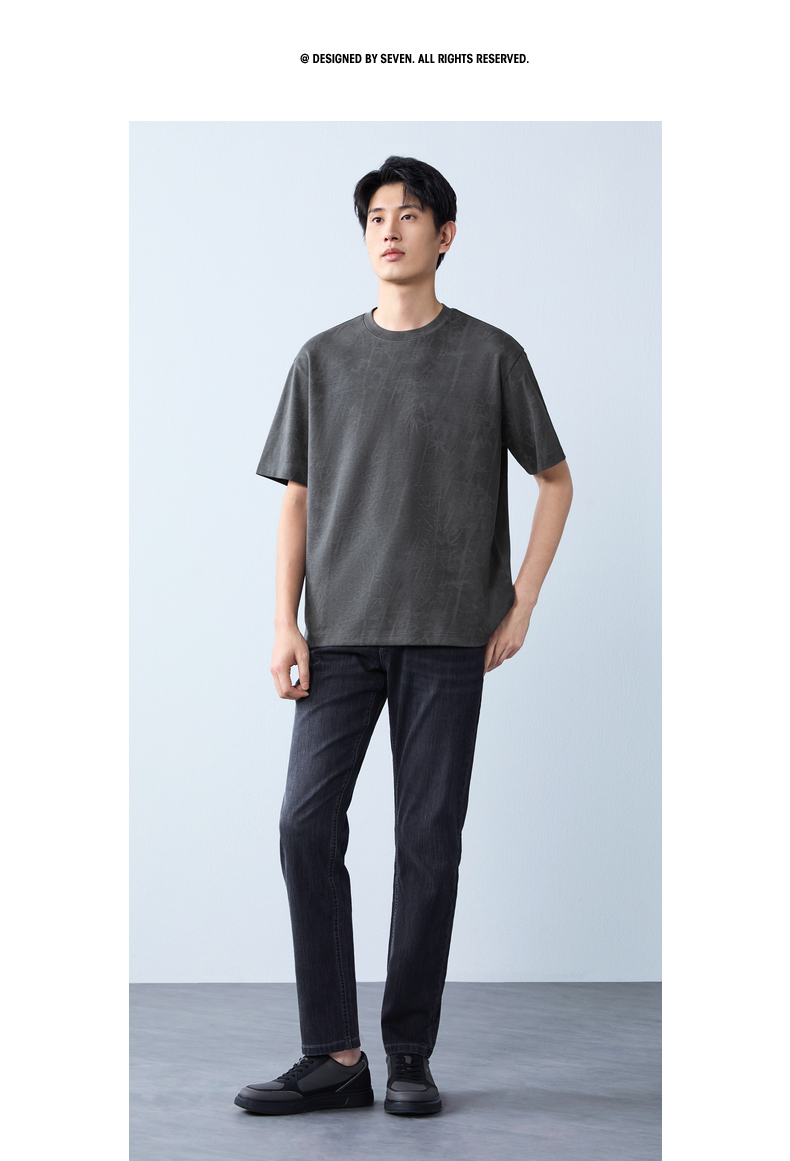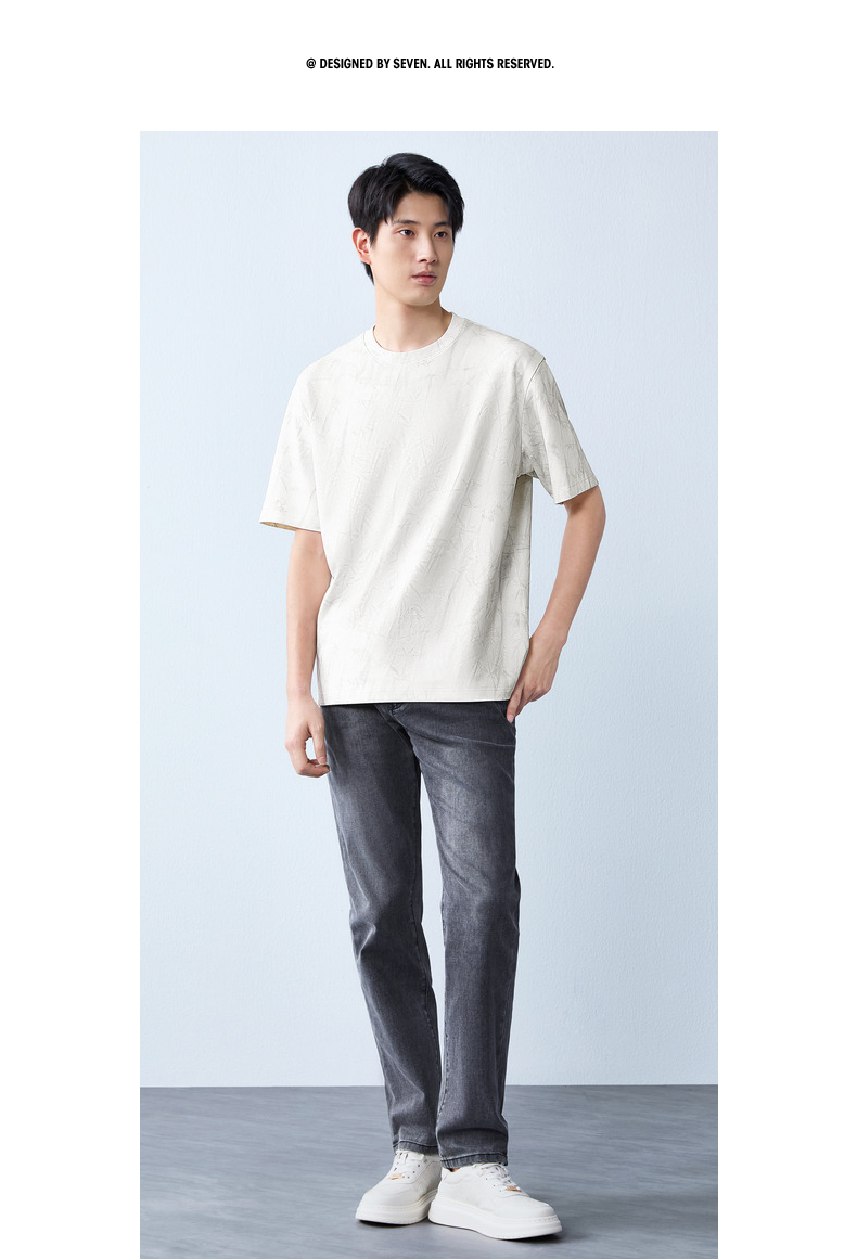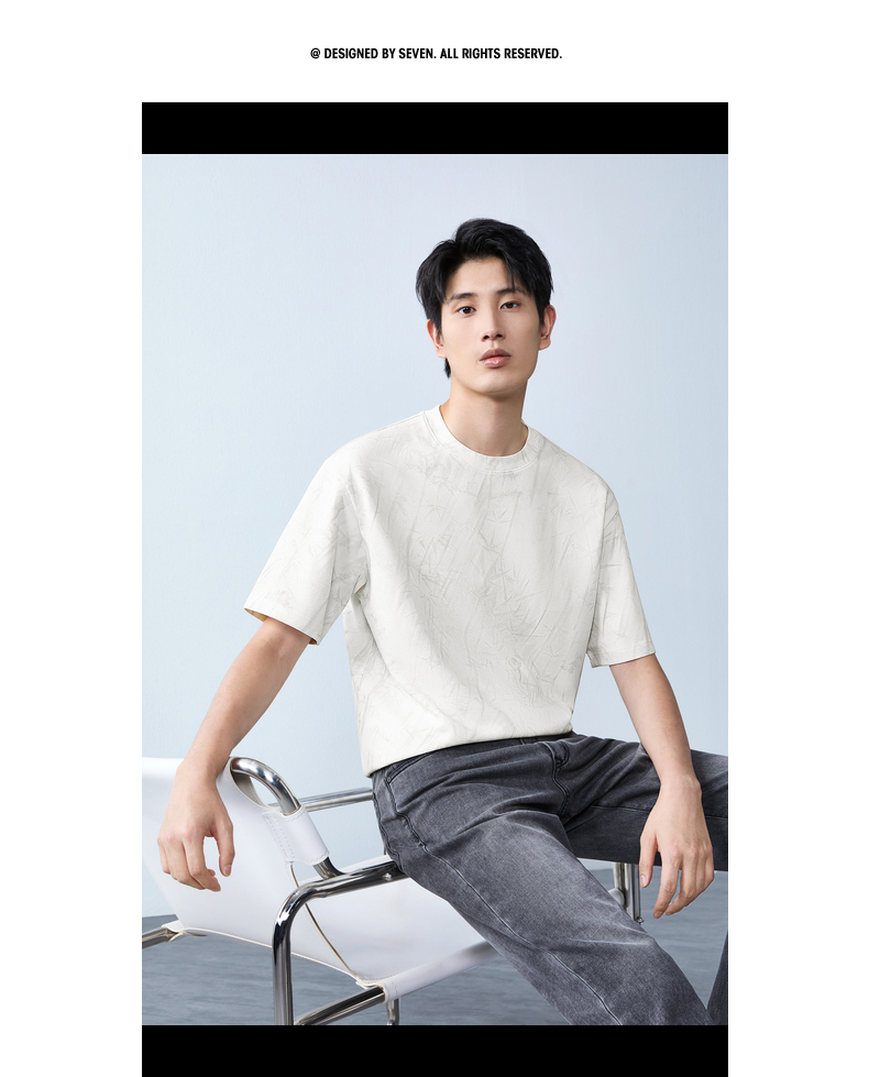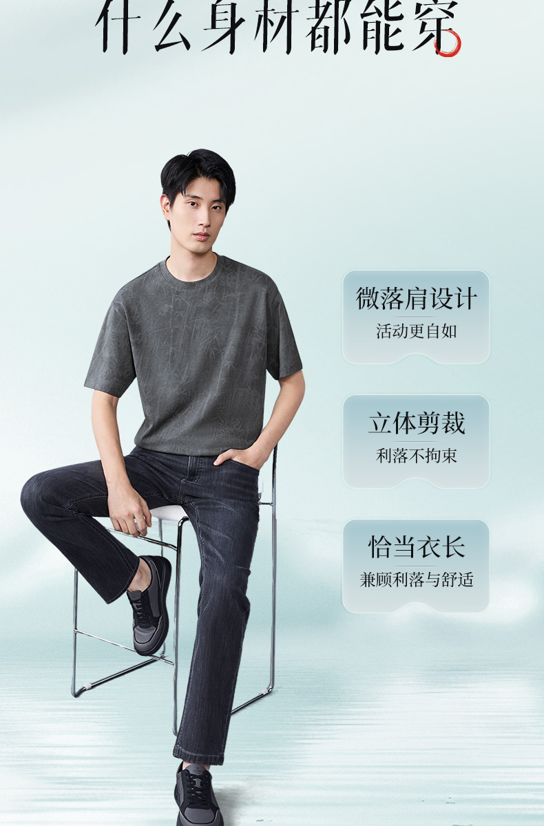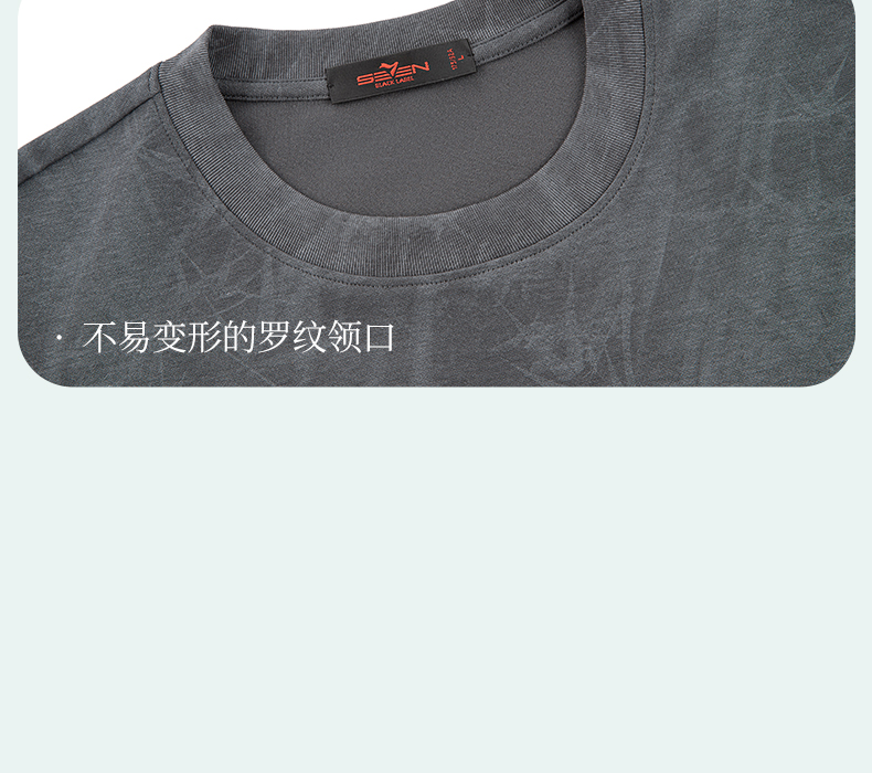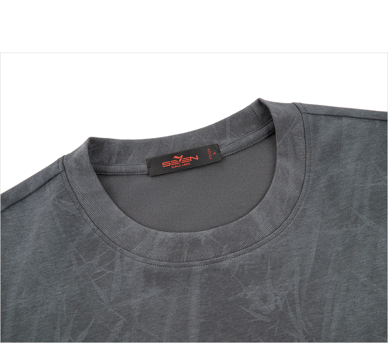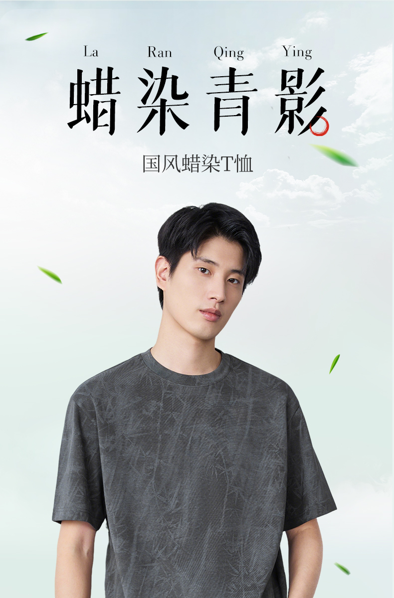 【蜡染T恤】柒牌男装2026夏季圆领宽松国风竹纹印花新疆棉短袖T恤 130T72340