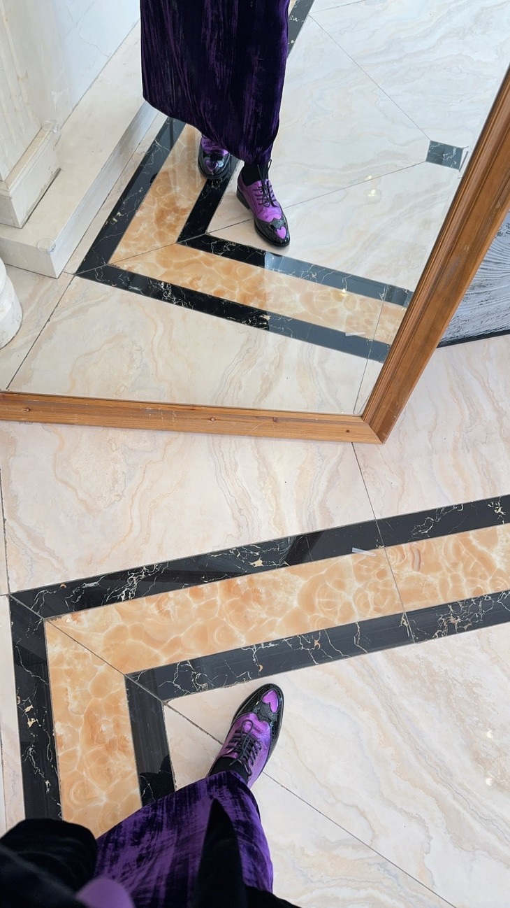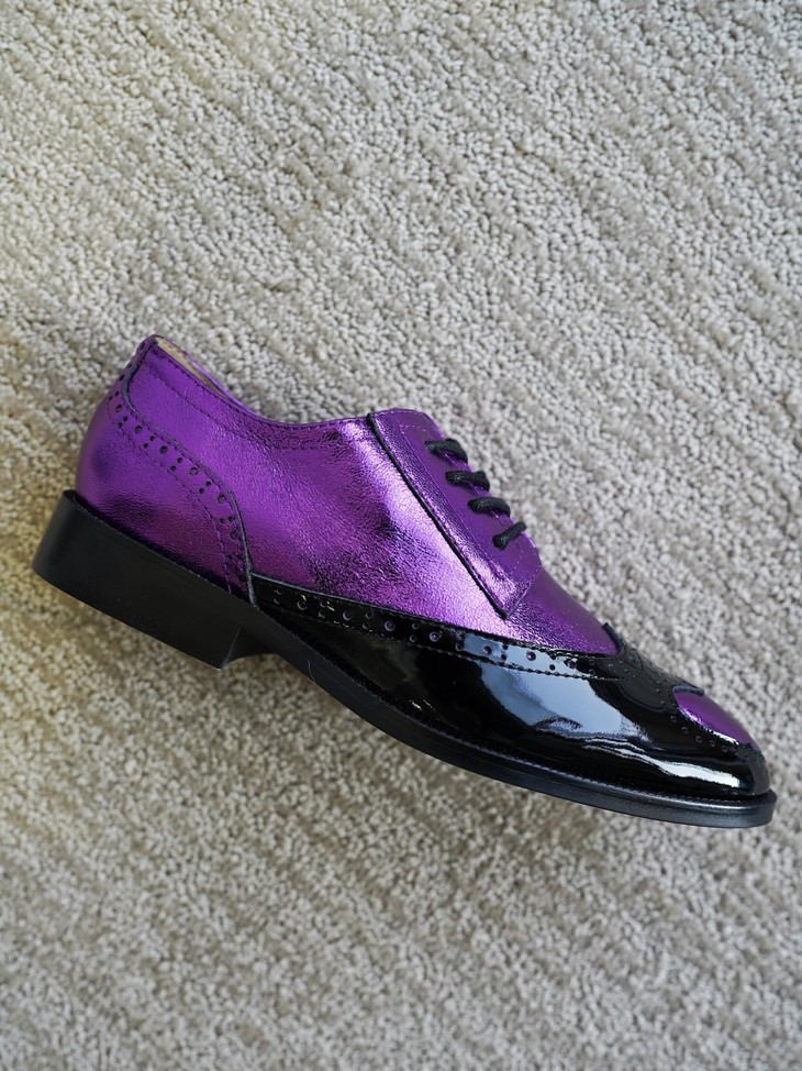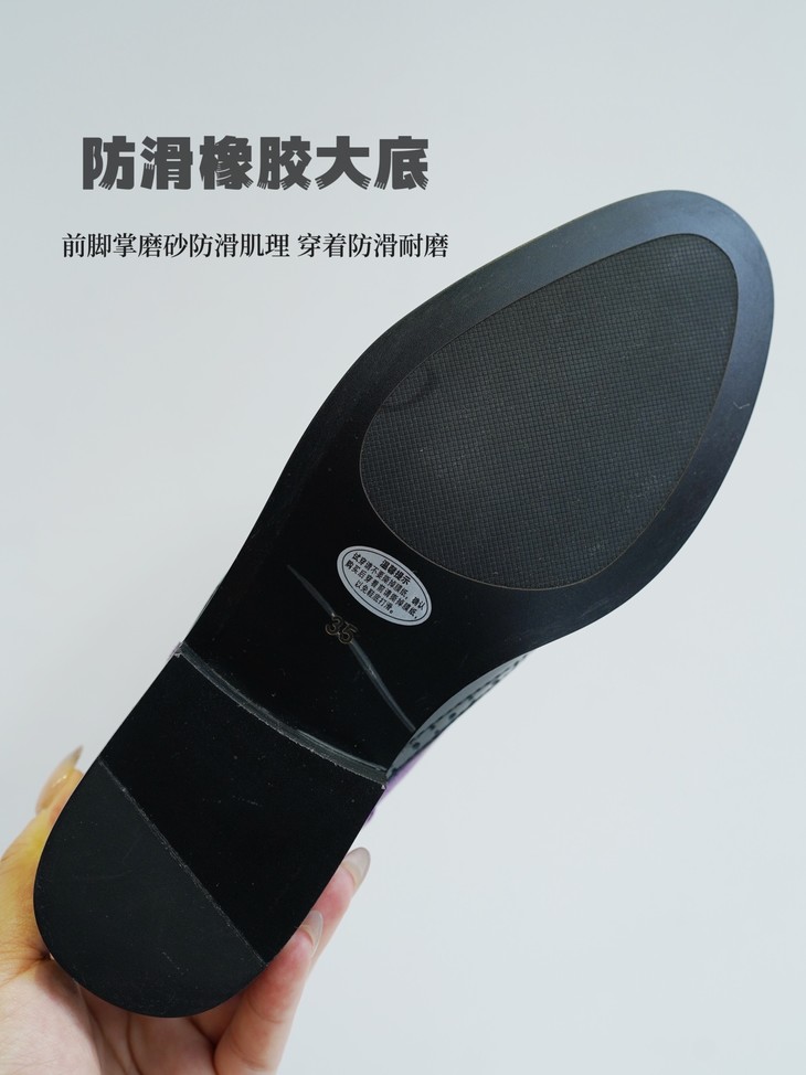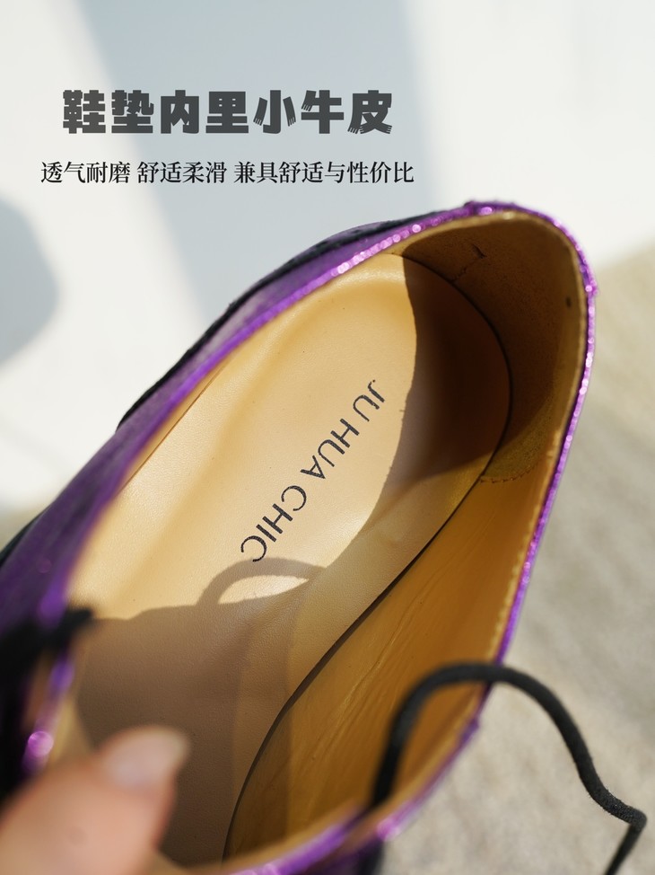 鞋面皮料看着是不是很篙级很特别?这双鞋是我们黑金牛油皮鞋同一家工厂做的2024春季新款!鞋面紫色的部分是现在的新型金属褶皱工艺,用羊皮做的!就跟我们春夏天出的金皱牛皮黑金玛丽珍类似的工艺,这家工厂更是用的羊皮👍