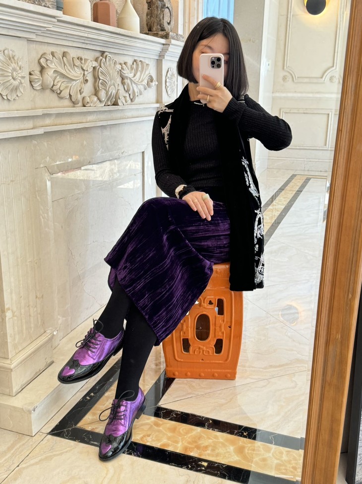 这双紫气东来的小紫鞋 ,来自花花品质生活du开发与定制!我觉得是非常适合搭配时装的一双鞋,寓意也非常好。尤其这个紫色真的很靓!😄