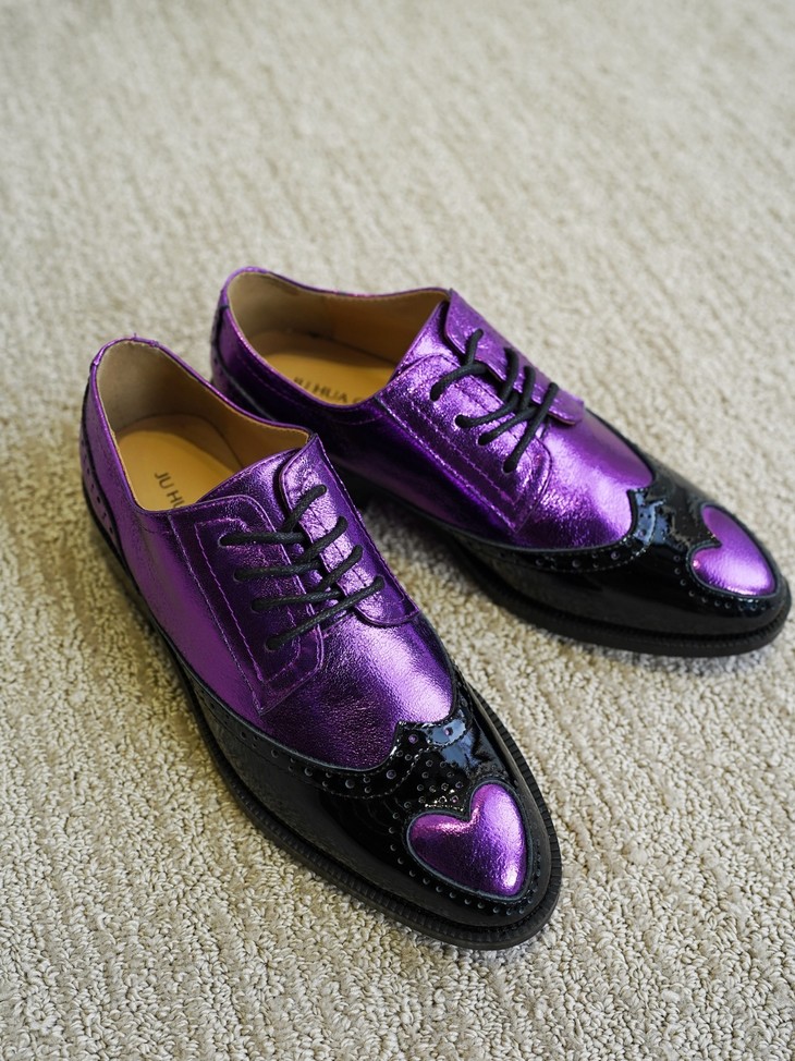 花花团定制春鞋款来啦,中式紫色,加英伦款式,一眼吸睛炒鸡时髦有没有!