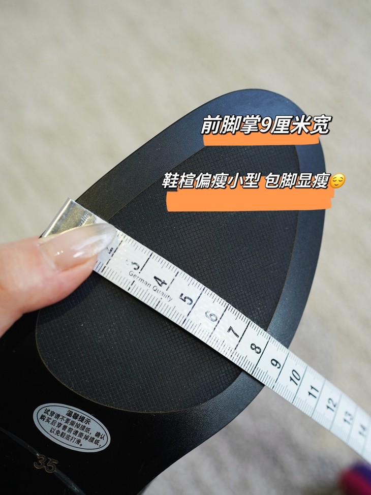 花痴小姐高脚背/肉肉脚,平时高跟鞋凉鞋类穿35码,运动鞋36码,这双鞋穿着35合适。建议大家按照高跟鞋尺码正码拍即可,鞋舌脚背系带可调节。