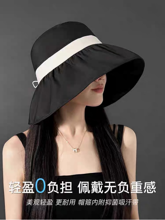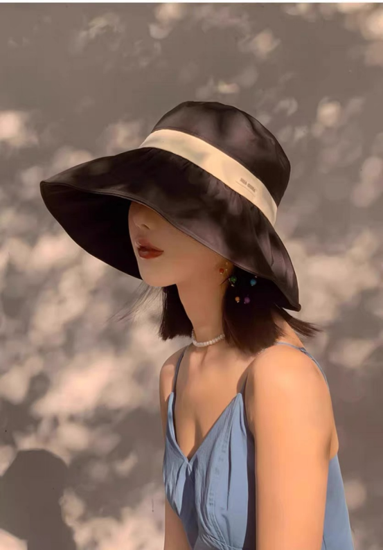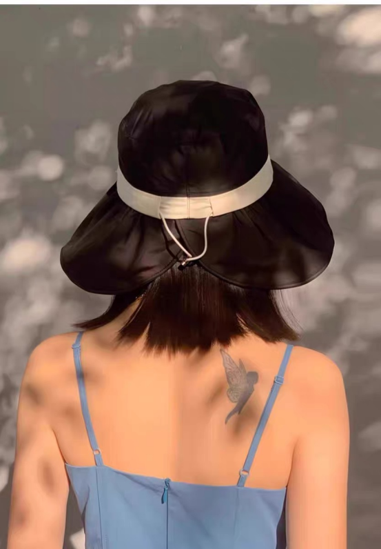 显脸小心机!👍素颜出门也能美成焦点! 两侧加宽帽檐暗藏“小V脸”buff! 立体剪裁自然修饰颧骨、下颌线,戴上瞬间脸小一圈,妥妥的“物理修容神器”! 高级哑光黑胶面+极简廓形🌹日常通勤搭配连衣裙,周末郊游配牛仔短裤,随手一拍就是ins博主风~ 低调又高级,防晒也能颜值拉满