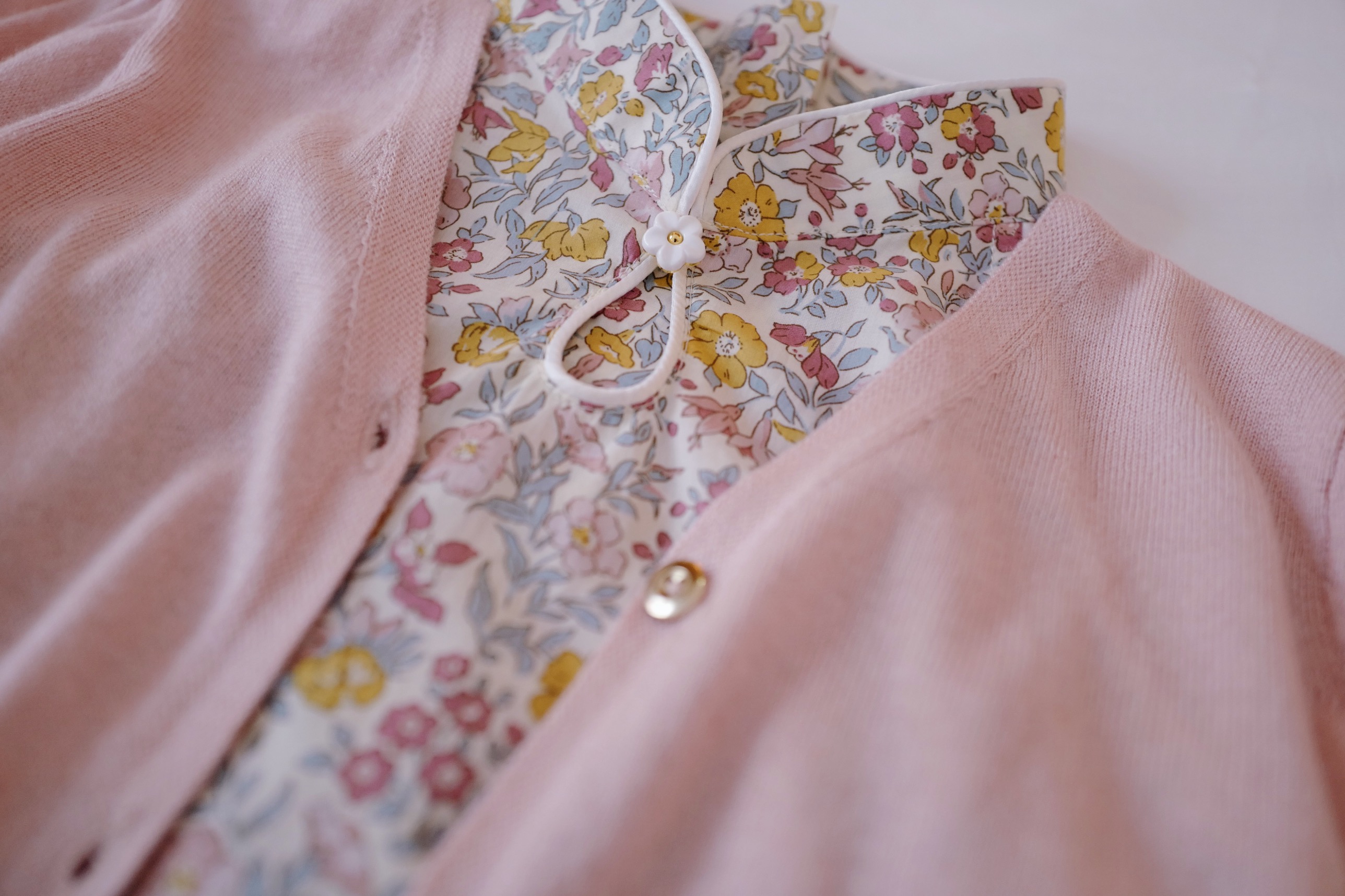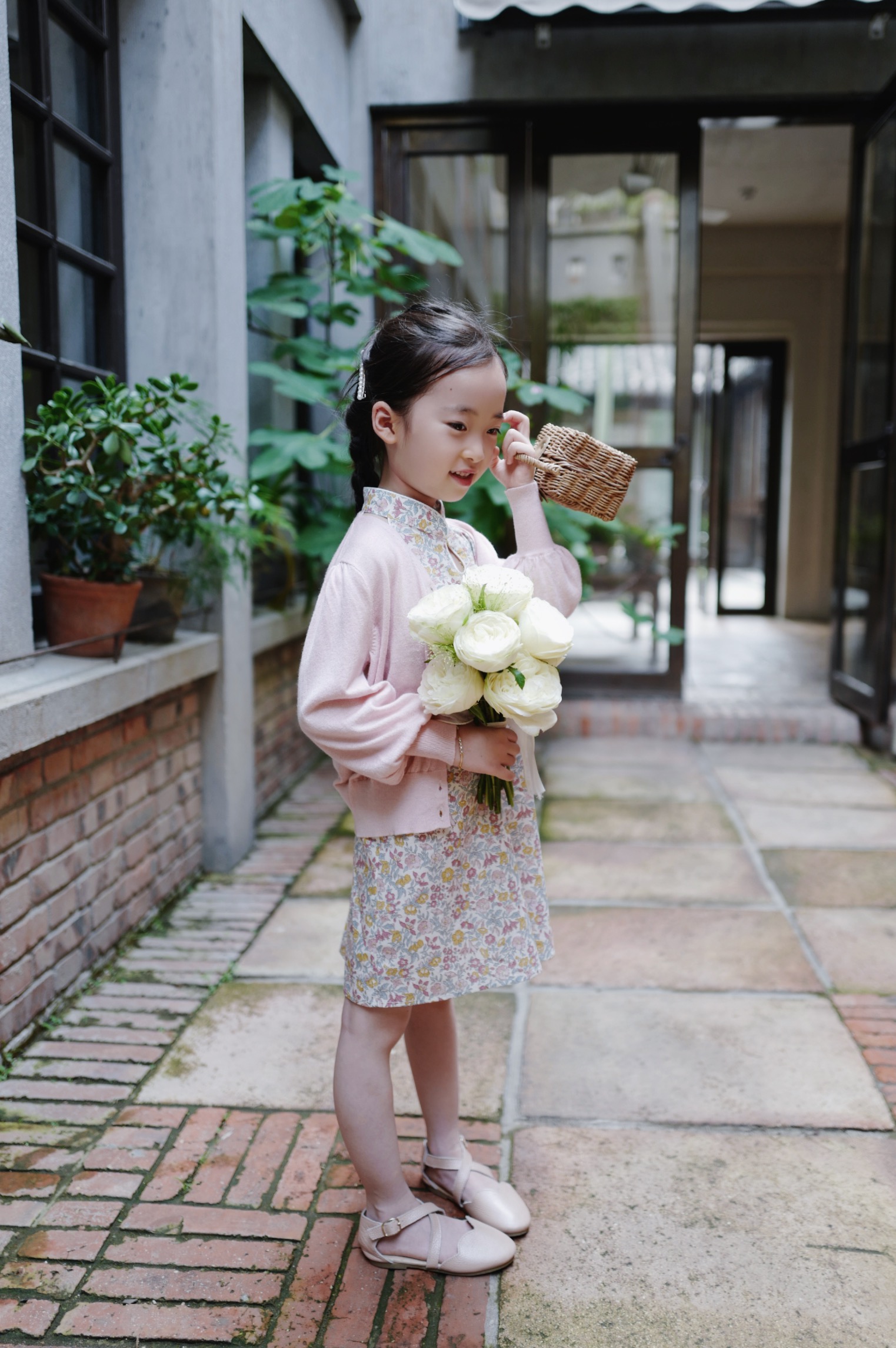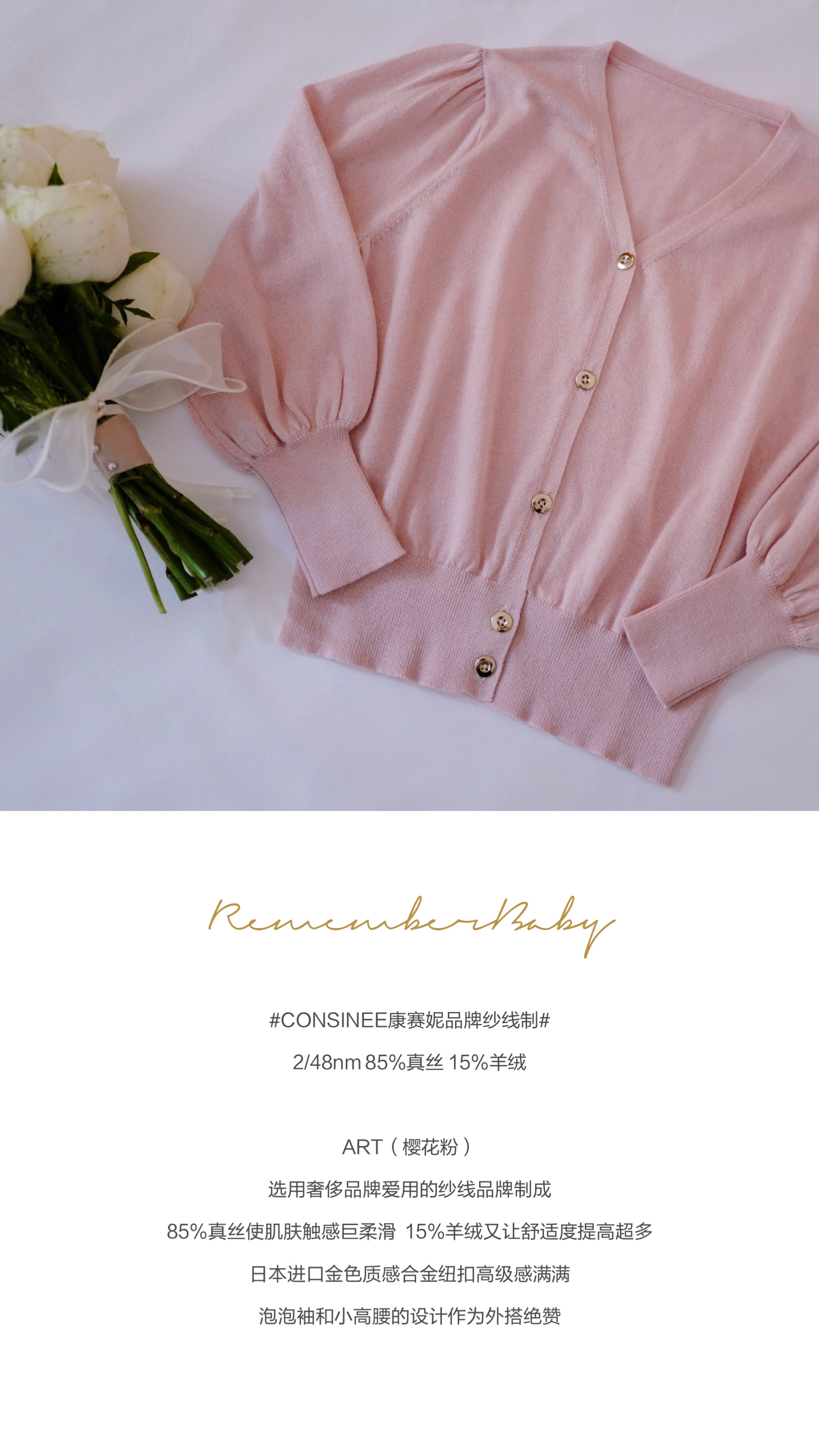 现货 / ART | 亲子款 樱花粉 康赛妮品牌纱线制 85%真丝15%羊绒 复古泡泡袖开衫