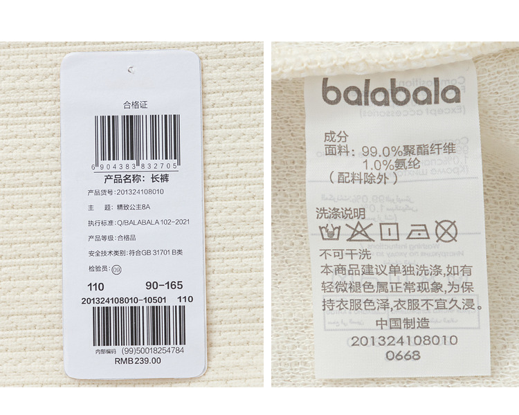 巴拉巴拉童装儿童长裤女童秋装款雪尼尔直筒裤子休闲柔弹舒适时尚
