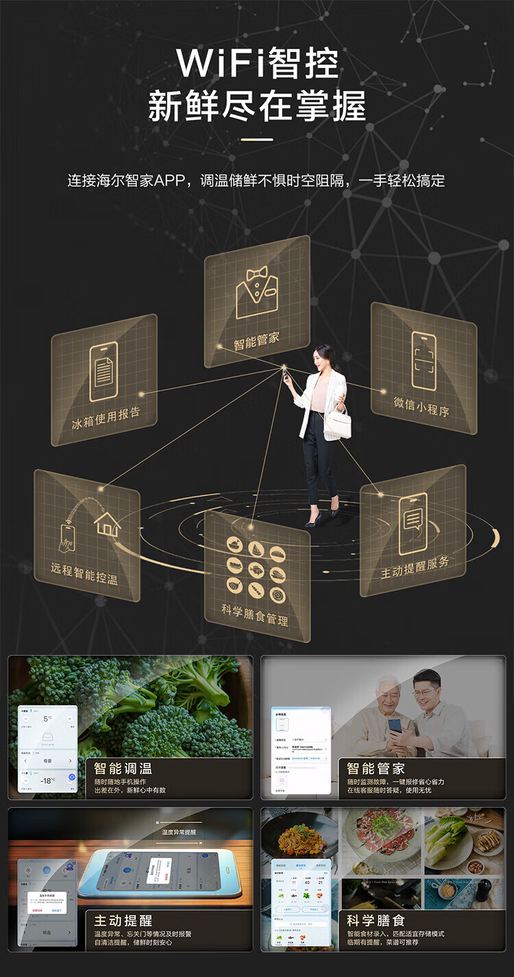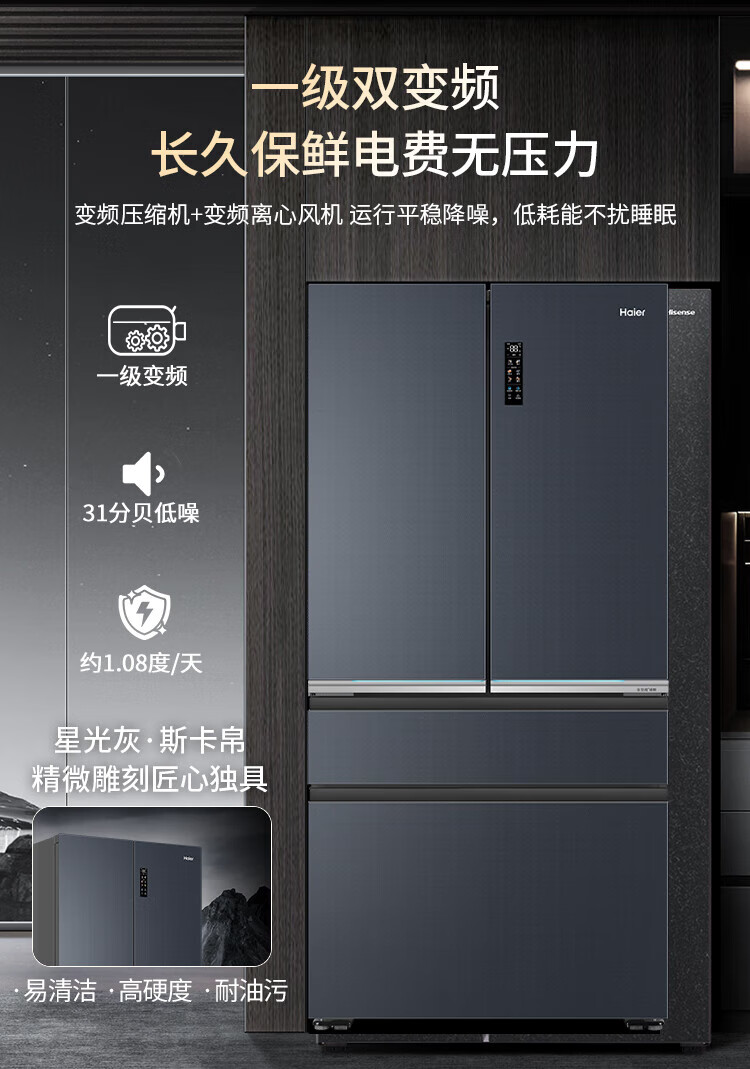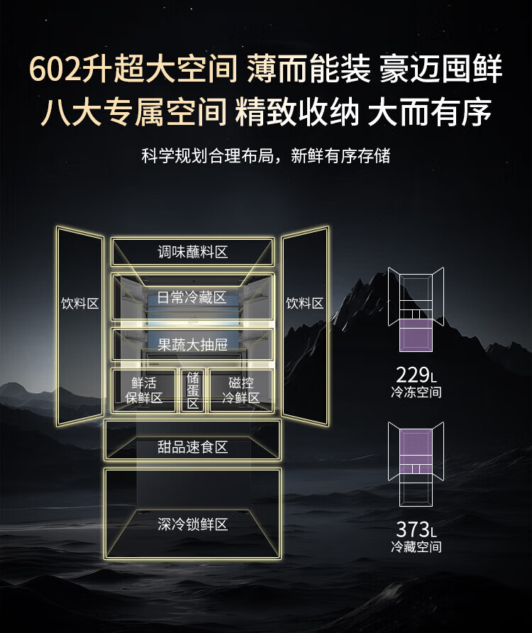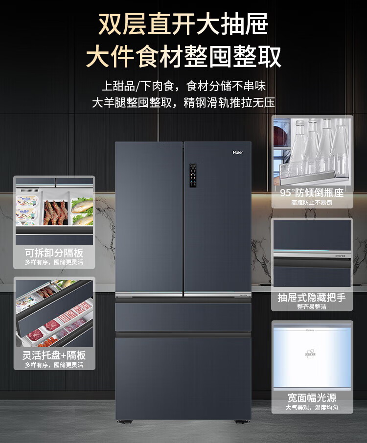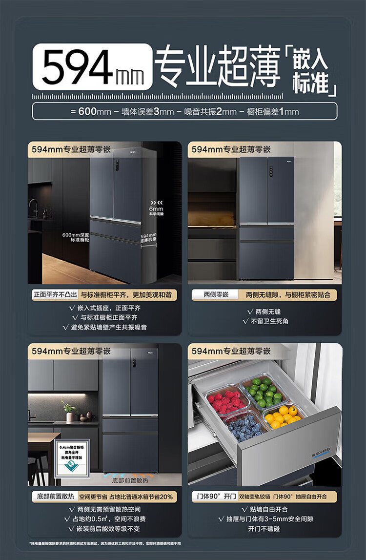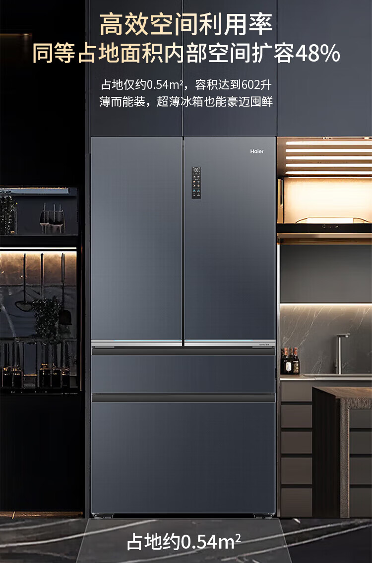 和悦-海尔超薄零嵌入式602升法式多门一级能效风冷无霜家用抽屉式四开门磁控全空间大容量冰箱 磁控全空间保鲜丨双系统丨超薄零嵌BCD-602WGHFD2BGWU1