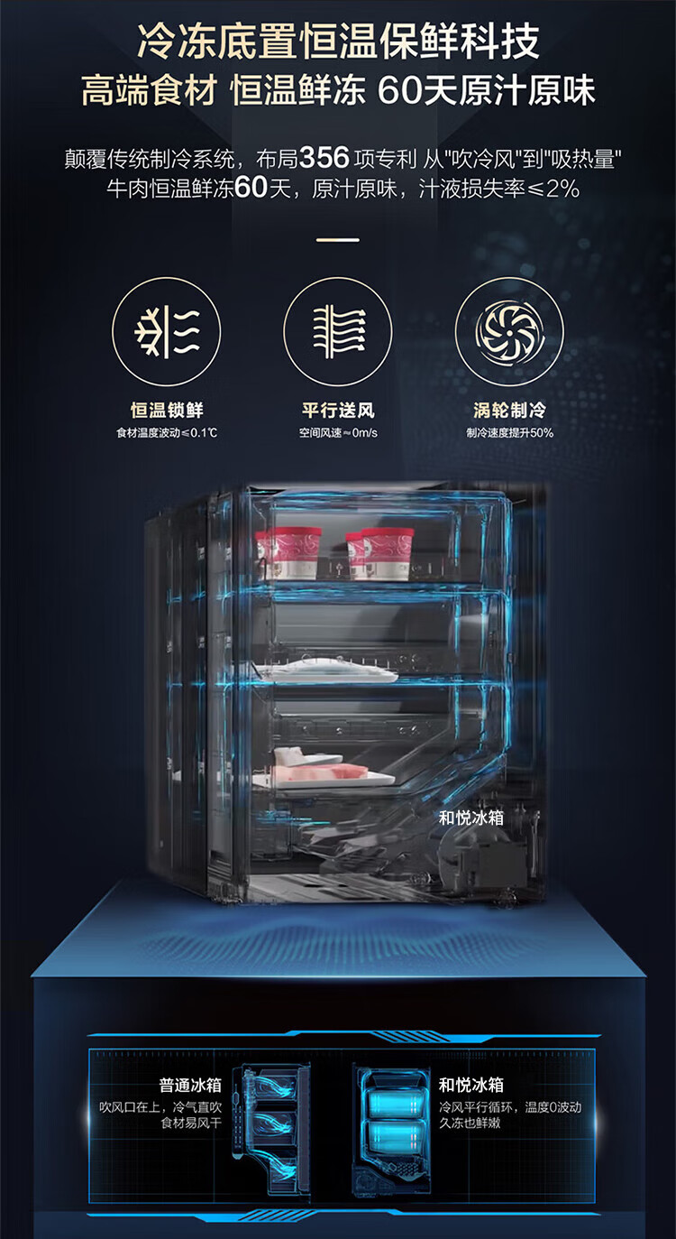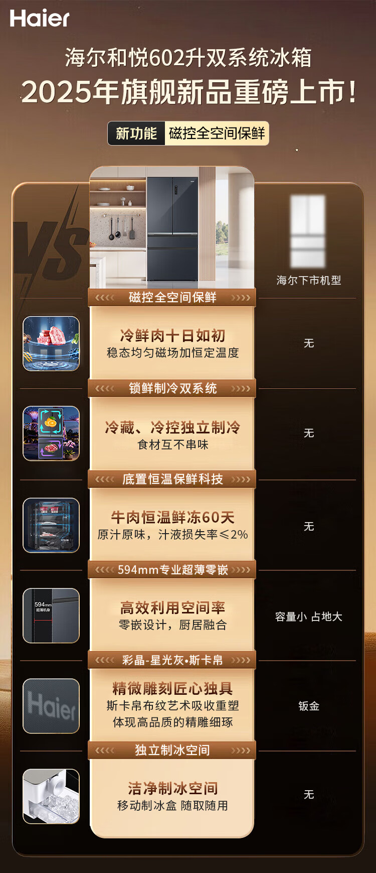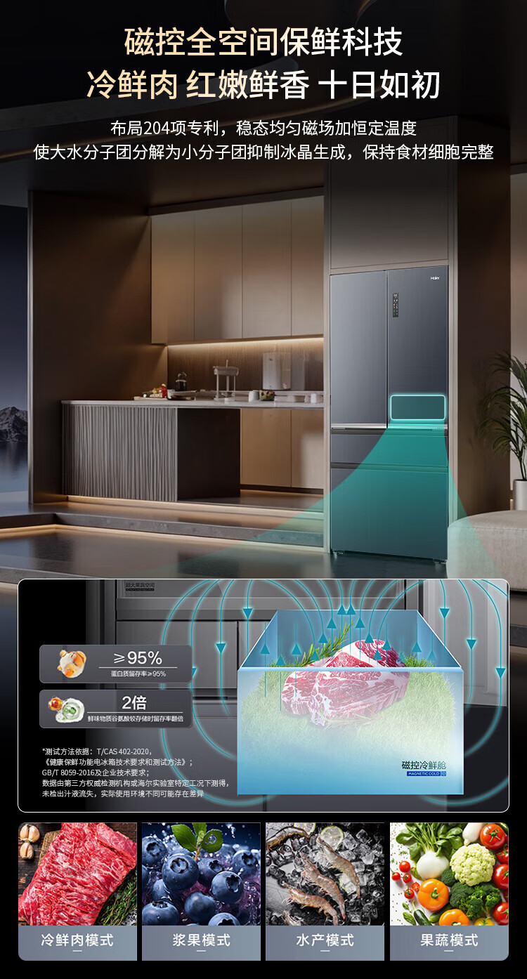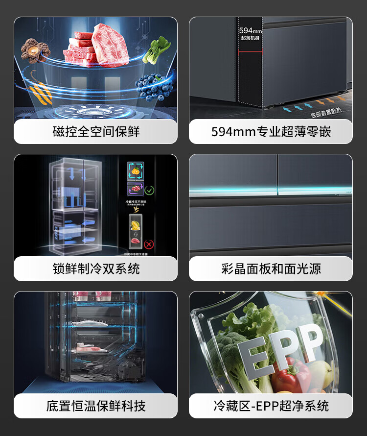 和悦-海尔超薄零嵌入式602升法式多门一级能效风冷无霜家用抽屉式四开门磁控全空间大容量冰箱 磁控全空间保鲜丨双系统丨超薄零嵌BCD-602WGHFD2BGWU1