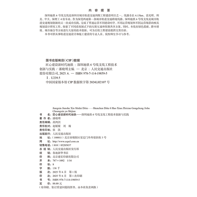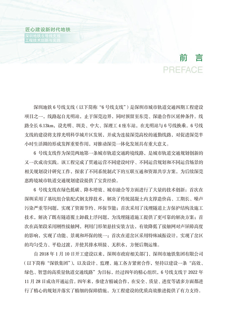 书名:匠心建设新时代地铁——深圳地铁6号线支线工程技术创新与实践