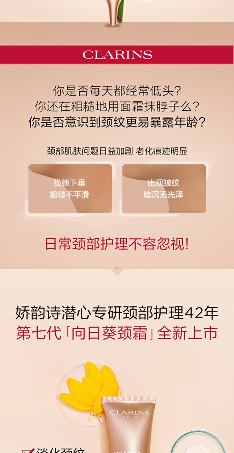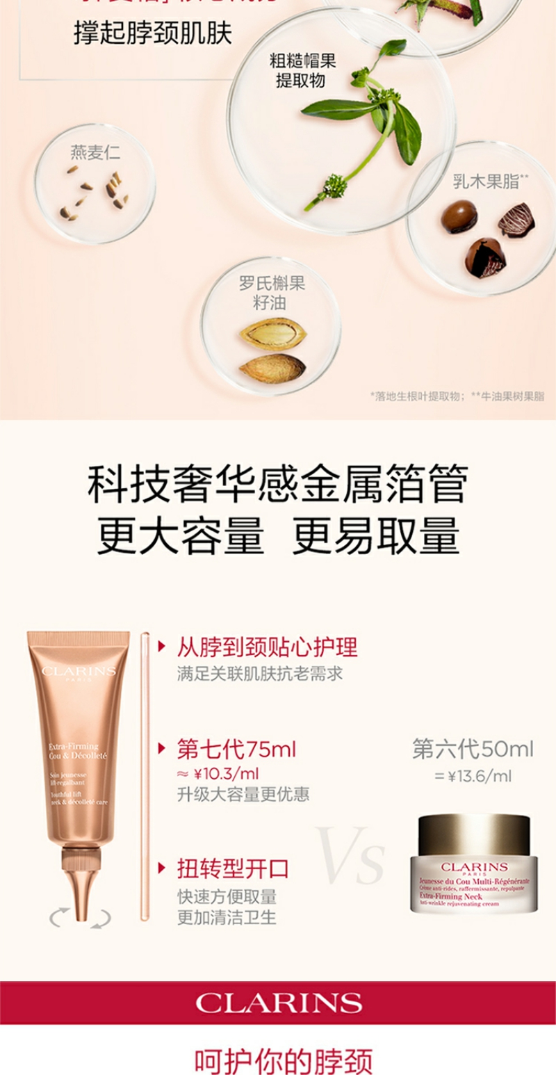 【YZ】Clarins/娇韵诗颈霜 75ml脖子提拉去除颈部细纹紧致霜天鹅颈