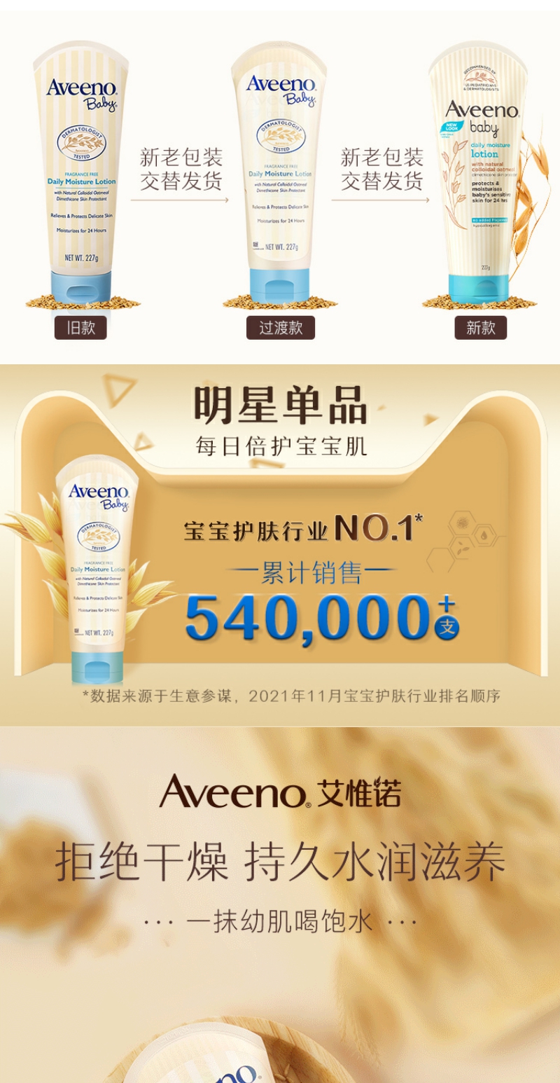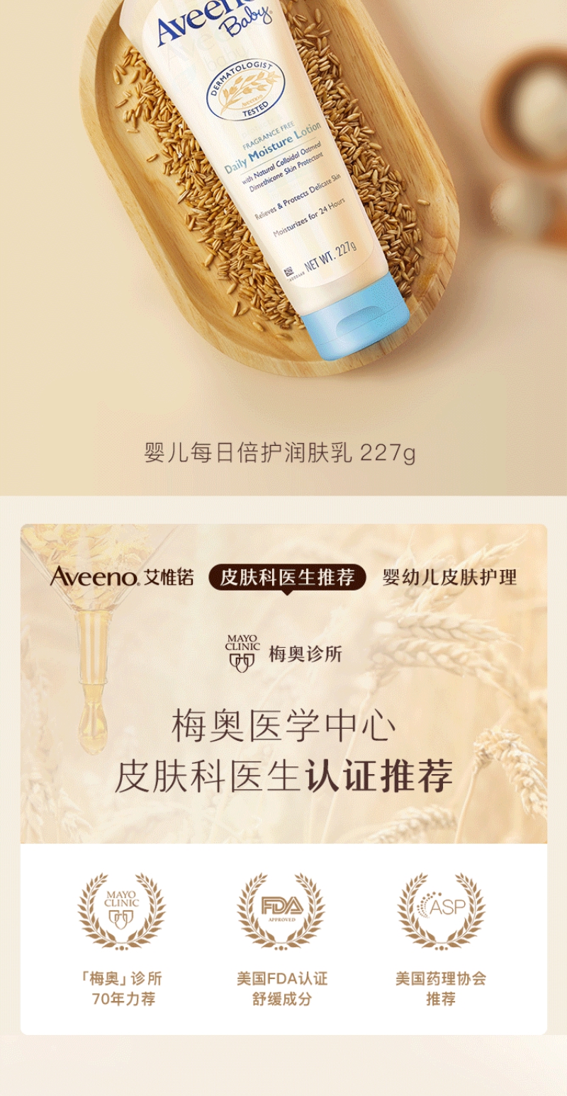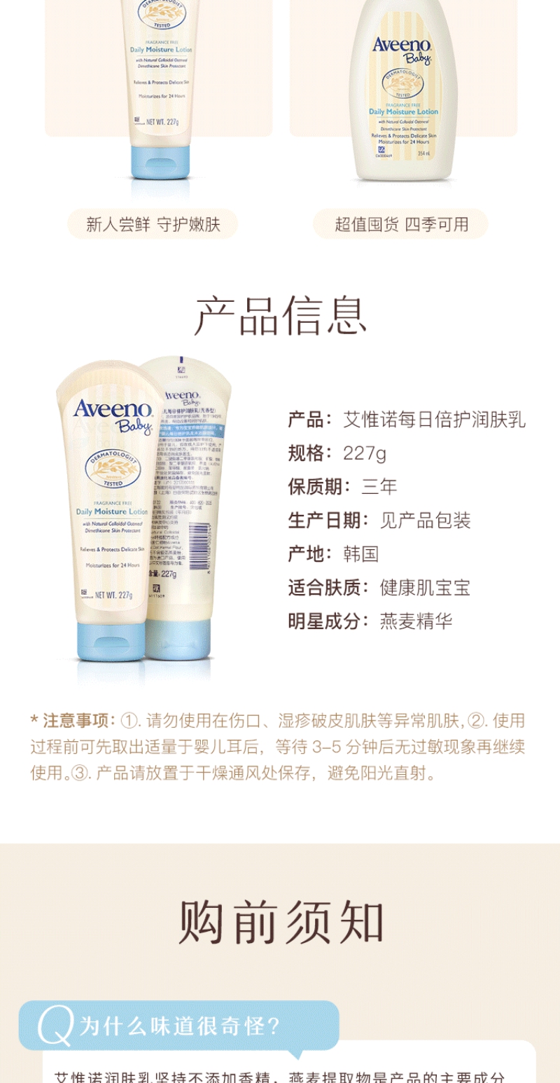 【YZ】Aveeno艾维诺婴幼儿童燕麦保湿润肤乳身体乳宝宝护肤面霜