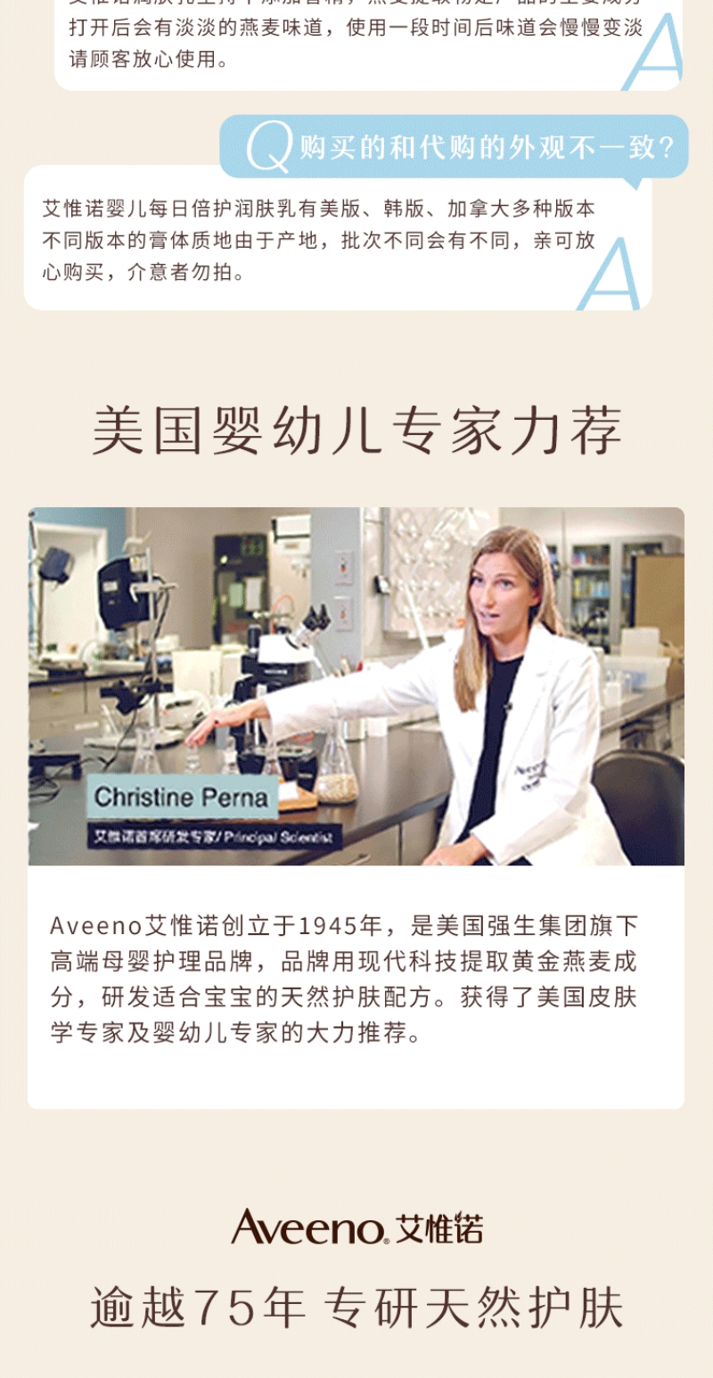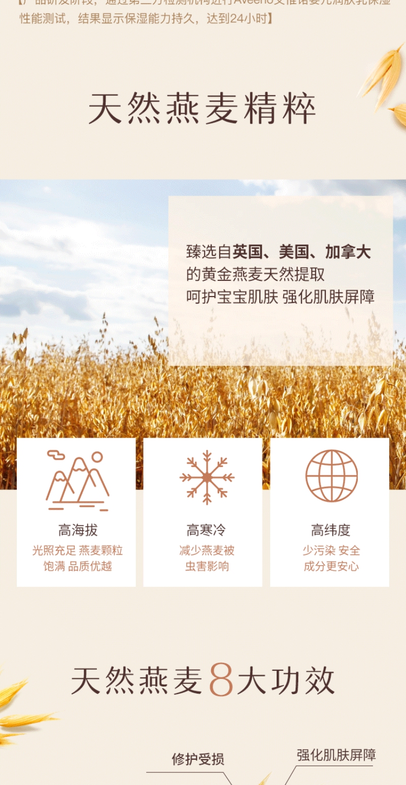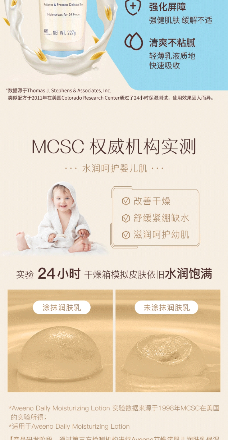【YZ】Aveeno艾维诺婴幼儿童燕麦保湿润肤乳身体乳宝宝护肤面霜