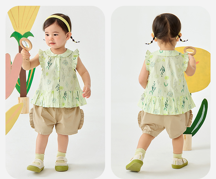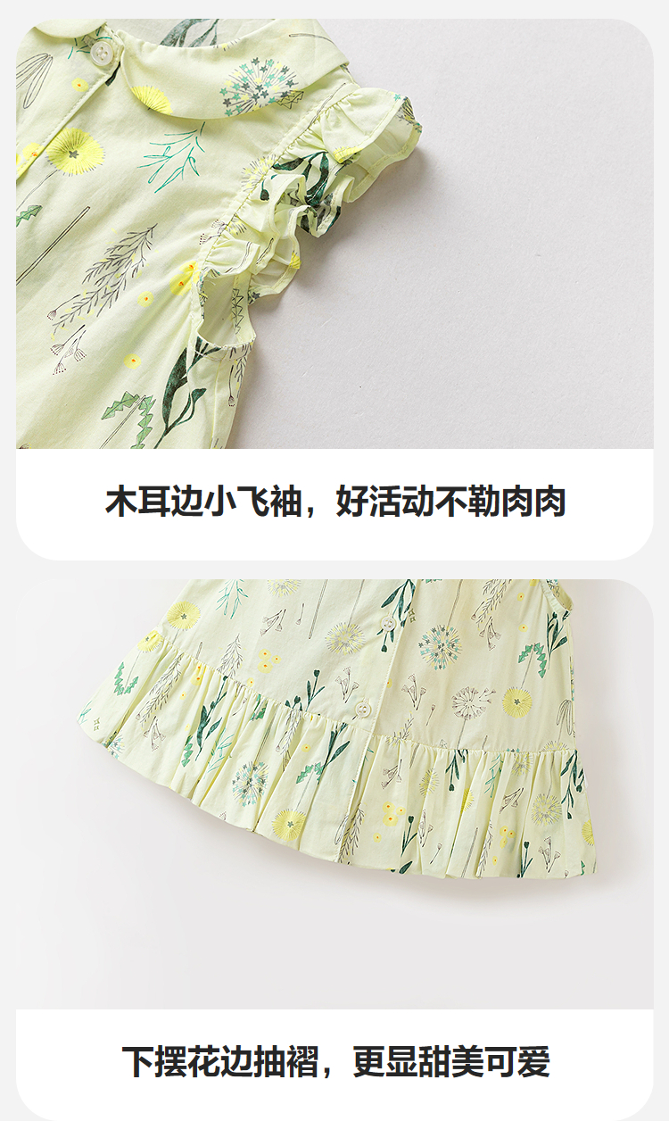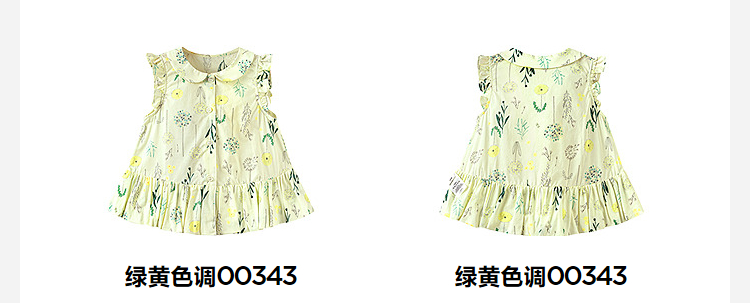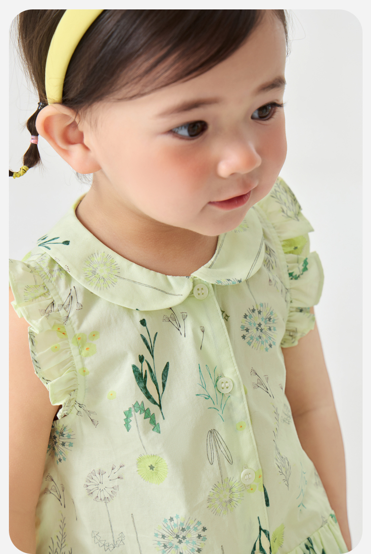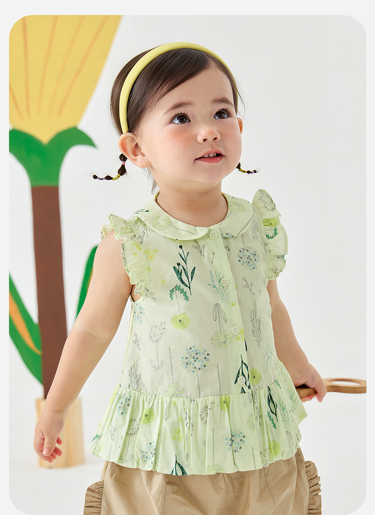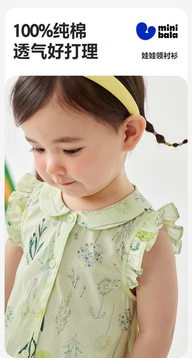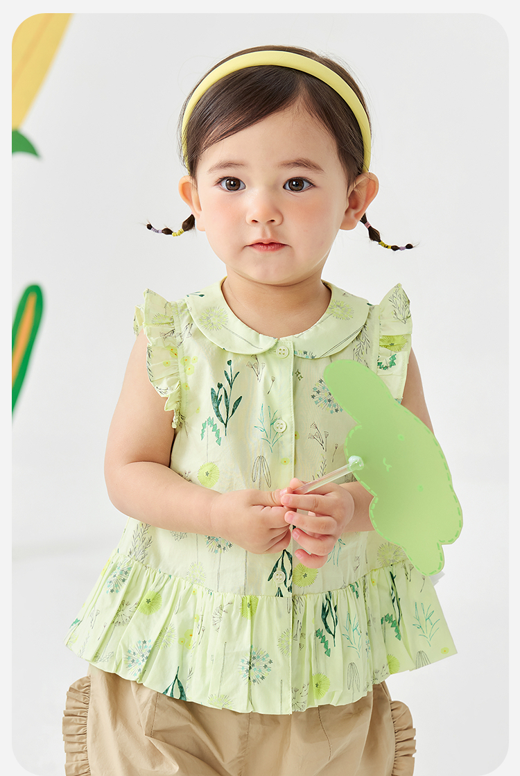 【纯棉透气】迷你巴拉女童不闷汗甜美娃娃领碎花无袖衬衫夏季