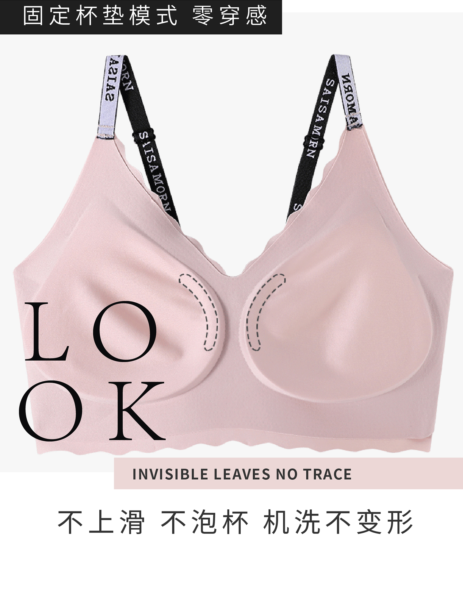 ⁶99元两件【Saisamorn赛莎梦】字母肩带乳胶无痕内衣 有背心款和背扣款两款可选 尺寸适配A-C杯【泰国溯源】SS06-QTT-SSM