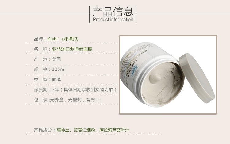 科颜氏亚马逊白泥净致面膜125ml