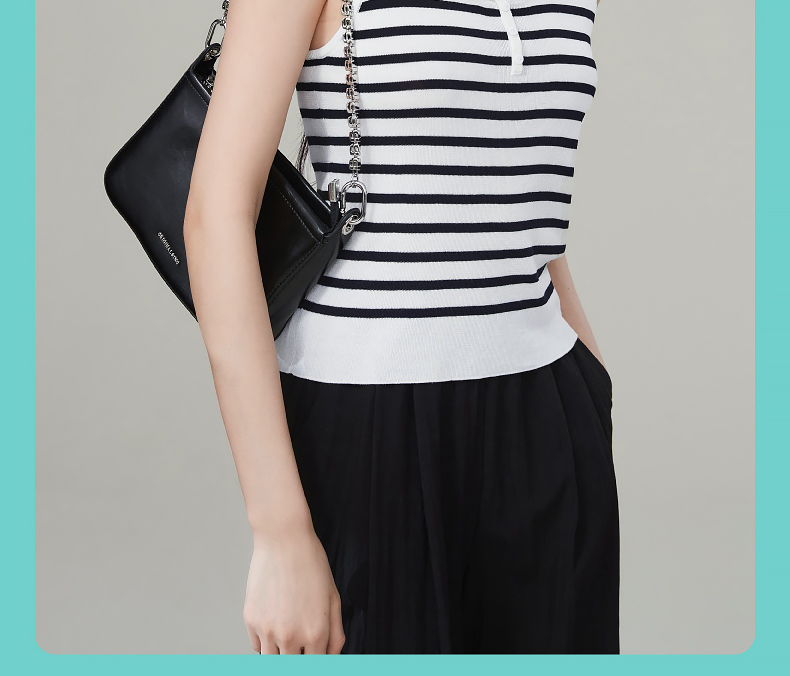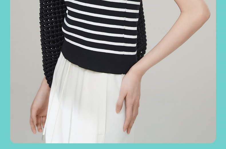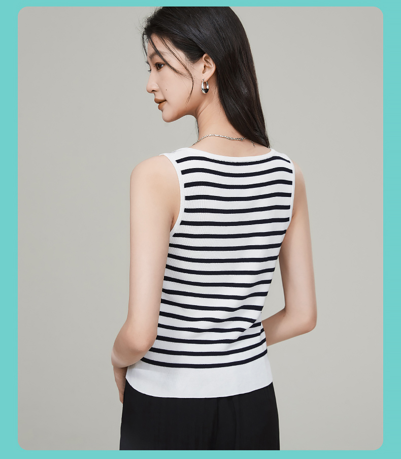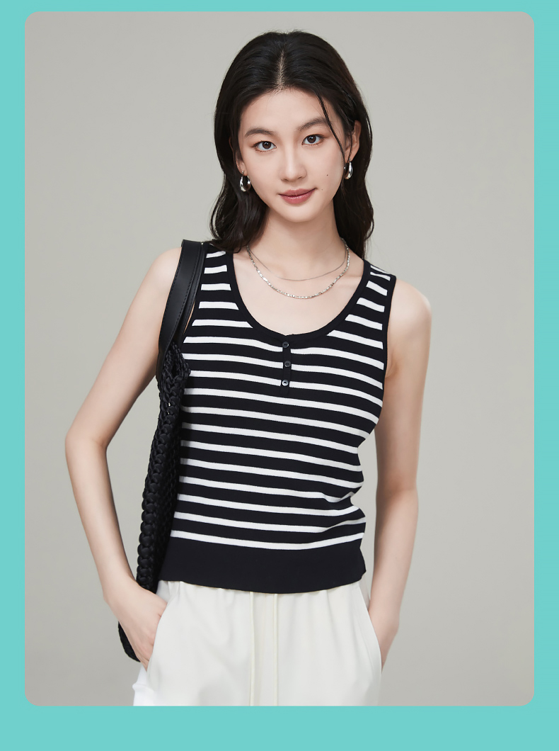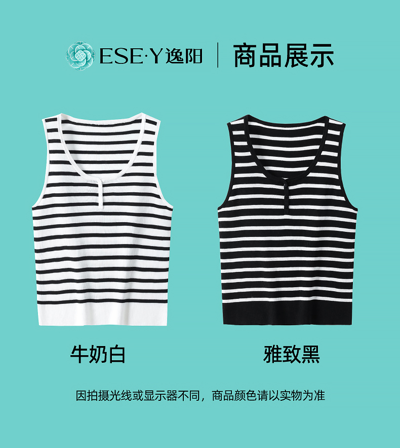 【降价亏本售!条纹背心】逸阳夏新品莱赛尔修身显瘦短款上衣5123