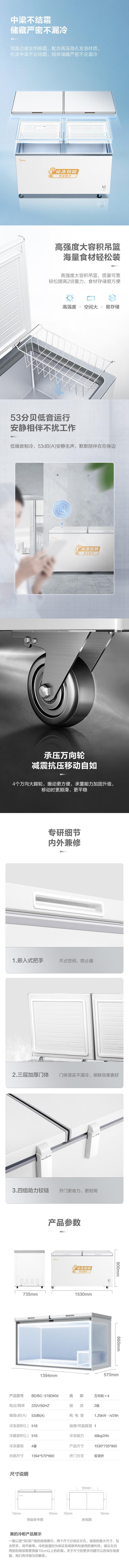 美的(Midea) (202731 )冰柜商用518升大容量 冷藏冷冻转换卧式冷柜 速冻保鲜囤货雪柜BD/BC-518DKM