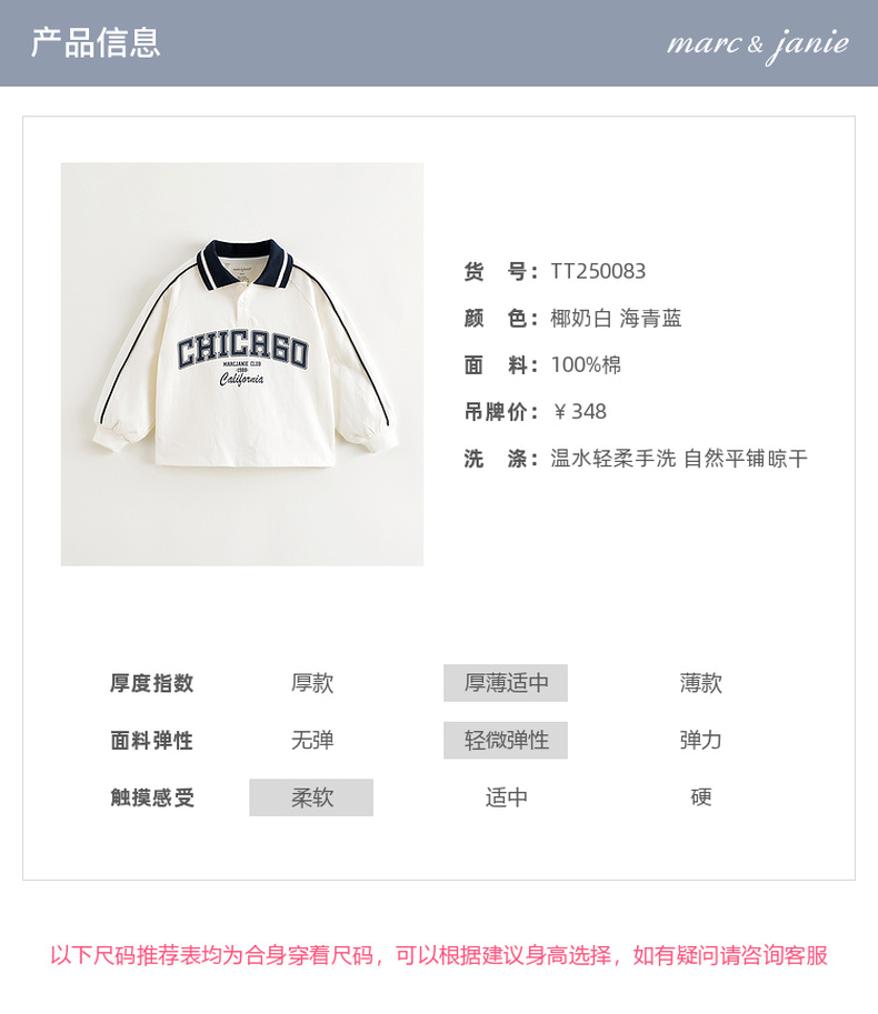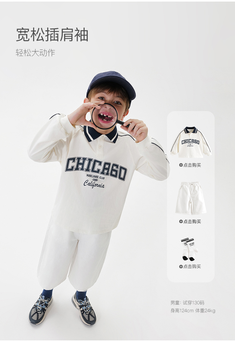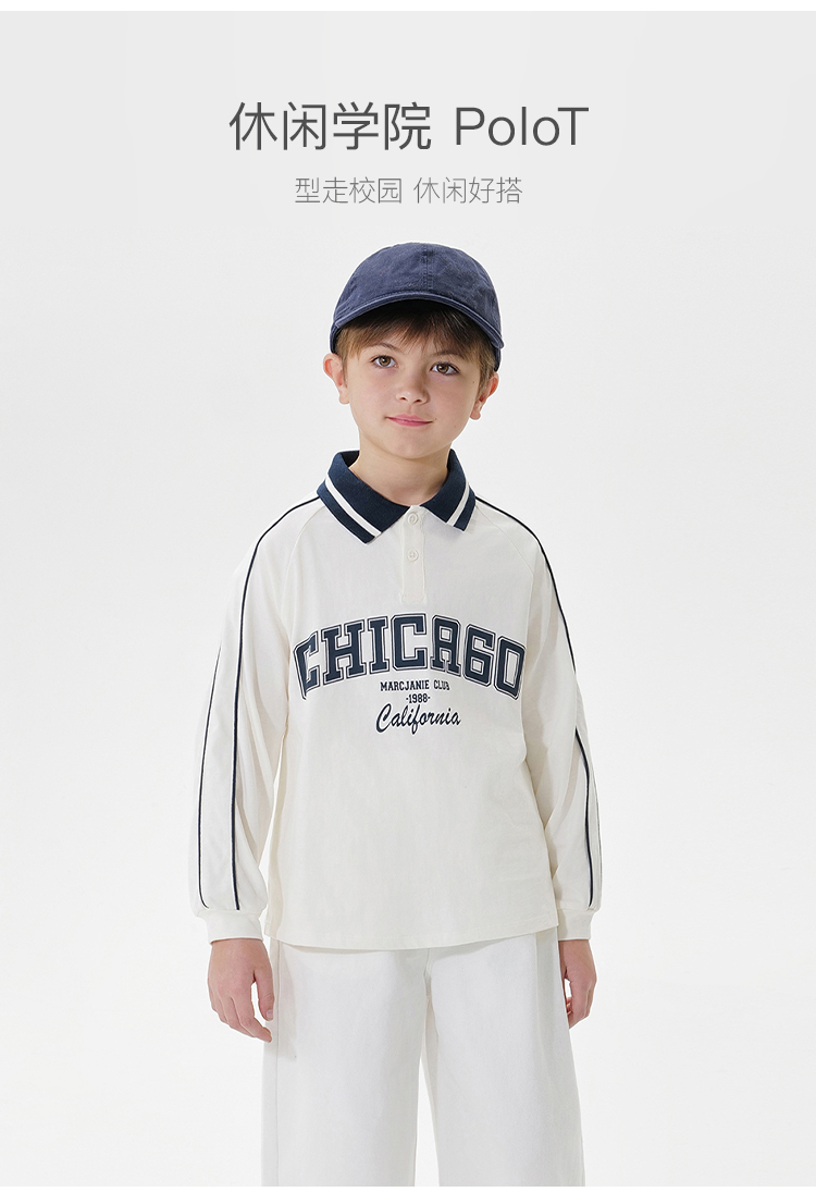 马克珍妮男童休闲学院POLO领T恤 儿童上衣2025年春装新款250083