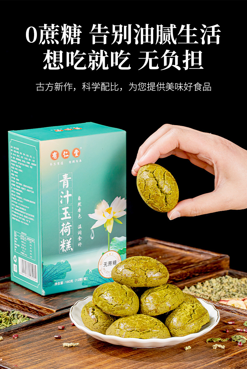 【第二盒半价!不单独添加蔗糖青汁玉荷糕】拒绝臃肿,清新口感清甜轻负担,青汁荷叶糕点饱腹代餐零食老式糕点代健康