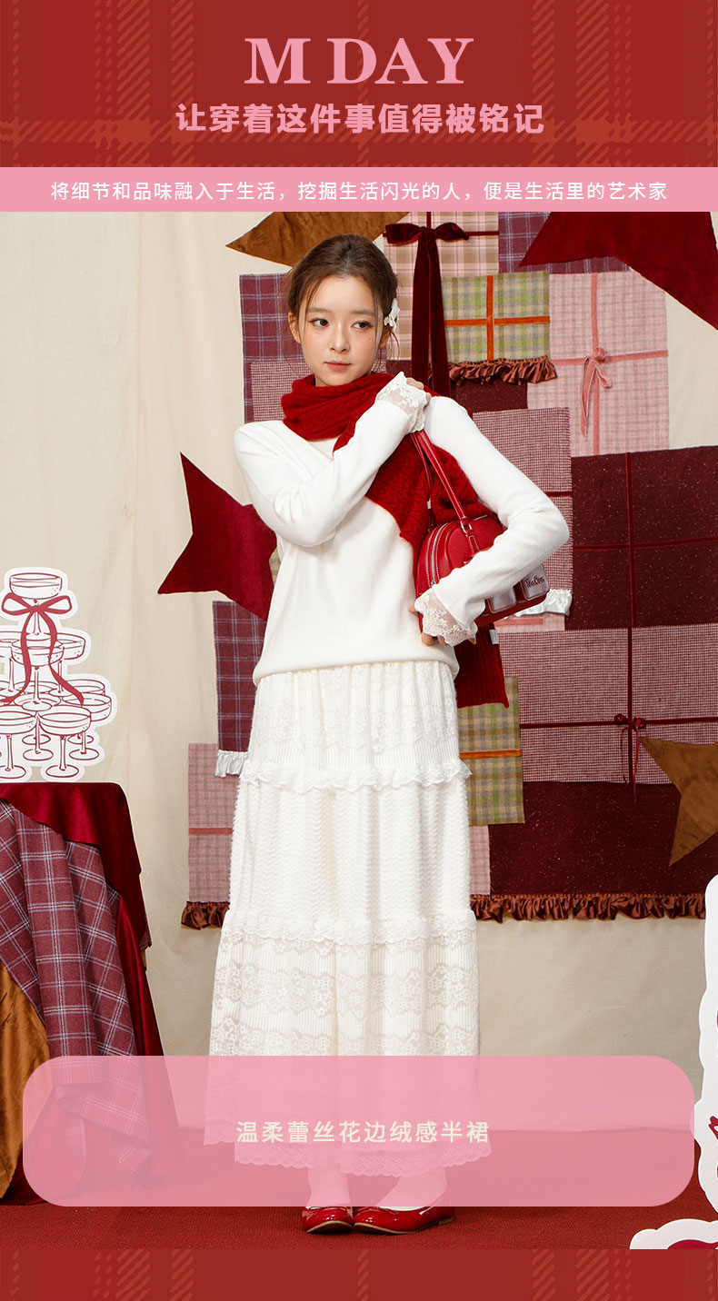 【礼物季】温柔蕾丝花边绒感半裙-纪念日百货门店同款167995986