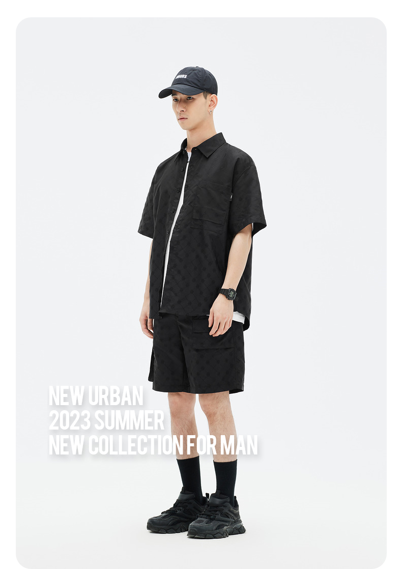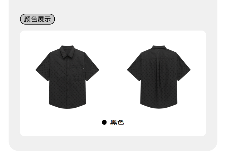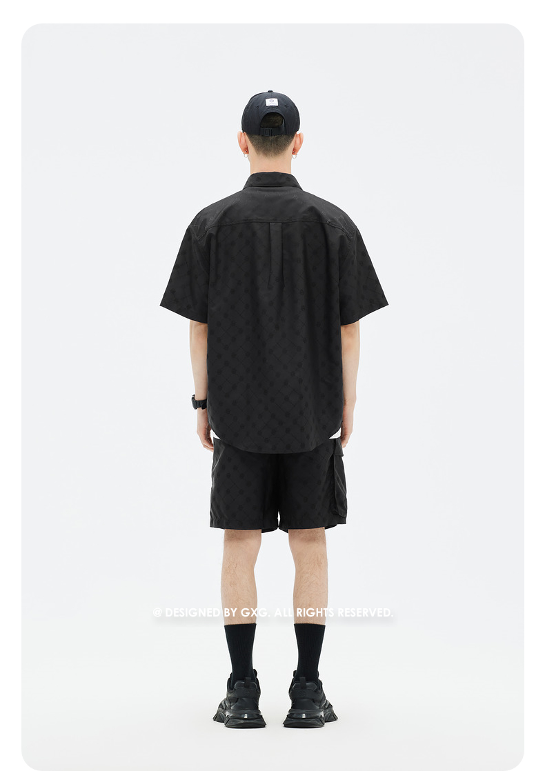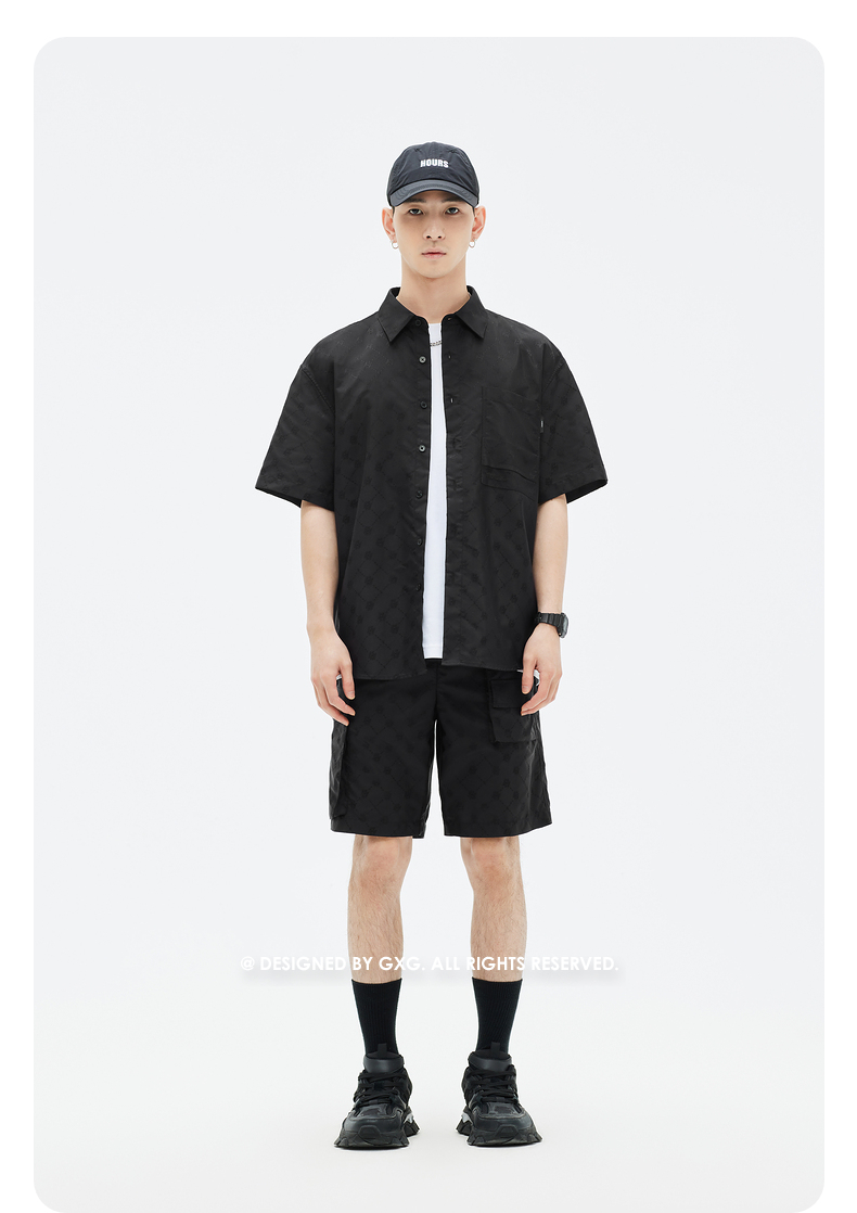 GXG男装 黑色微阔提花工艺短袖衬衫时尚 夏季热卖衬衫
