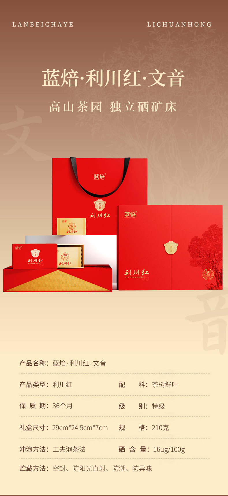 蓝焙·利川红·文音210克(42袋*5克)特级