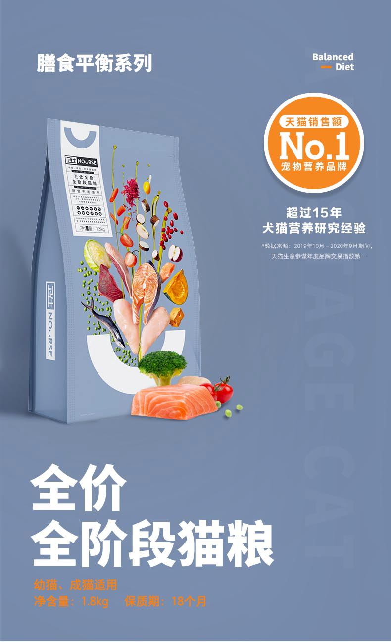 卫仕猫粮1.8kg室内成猫幼猫全阶段猫咪主粮