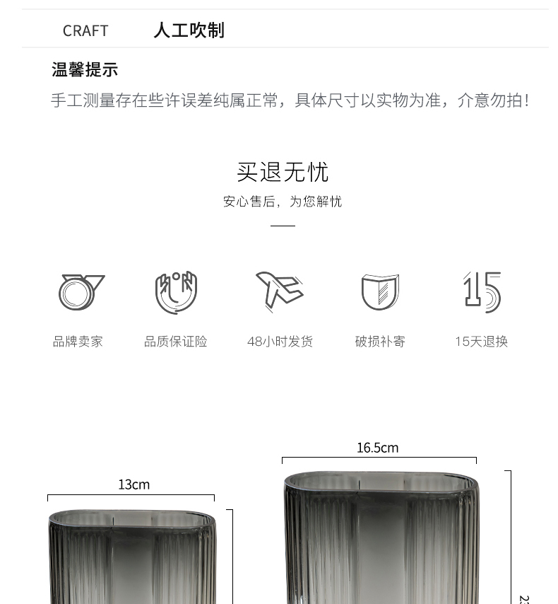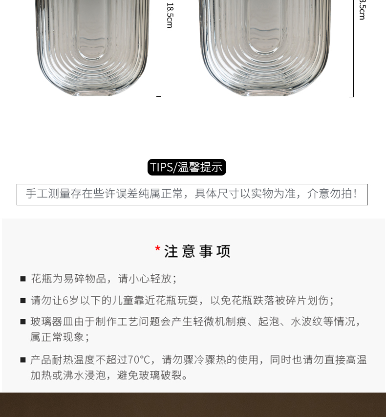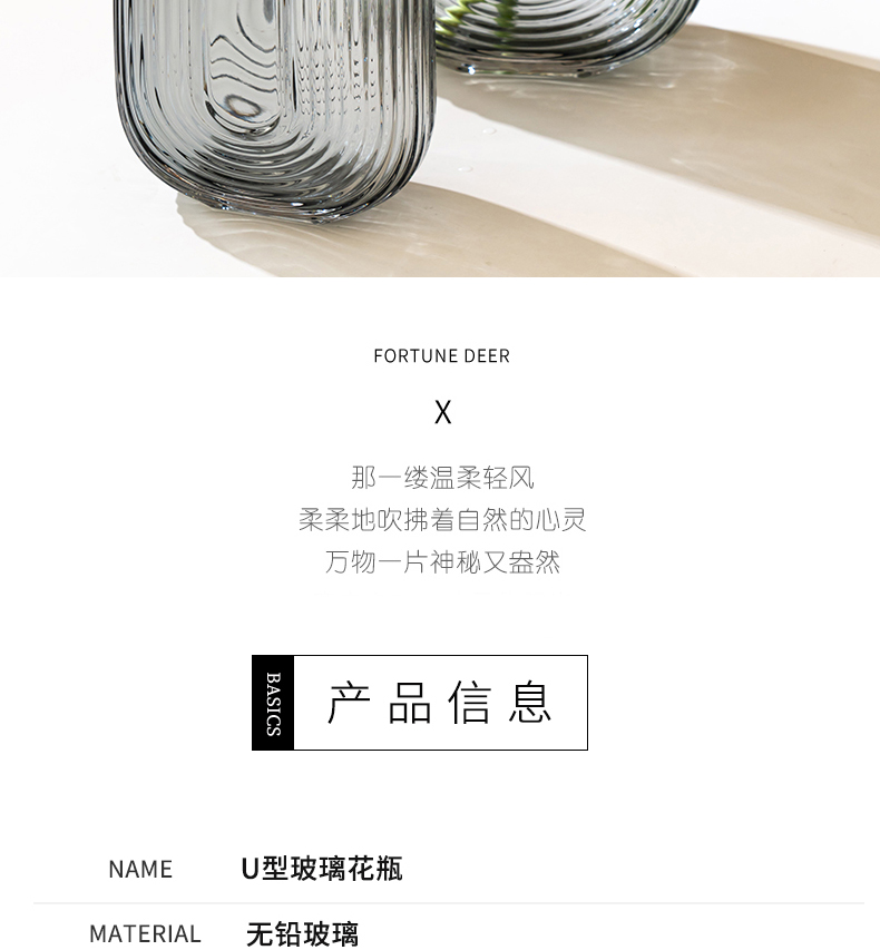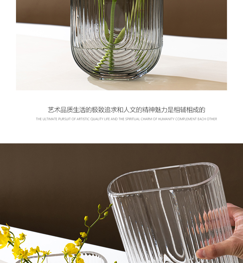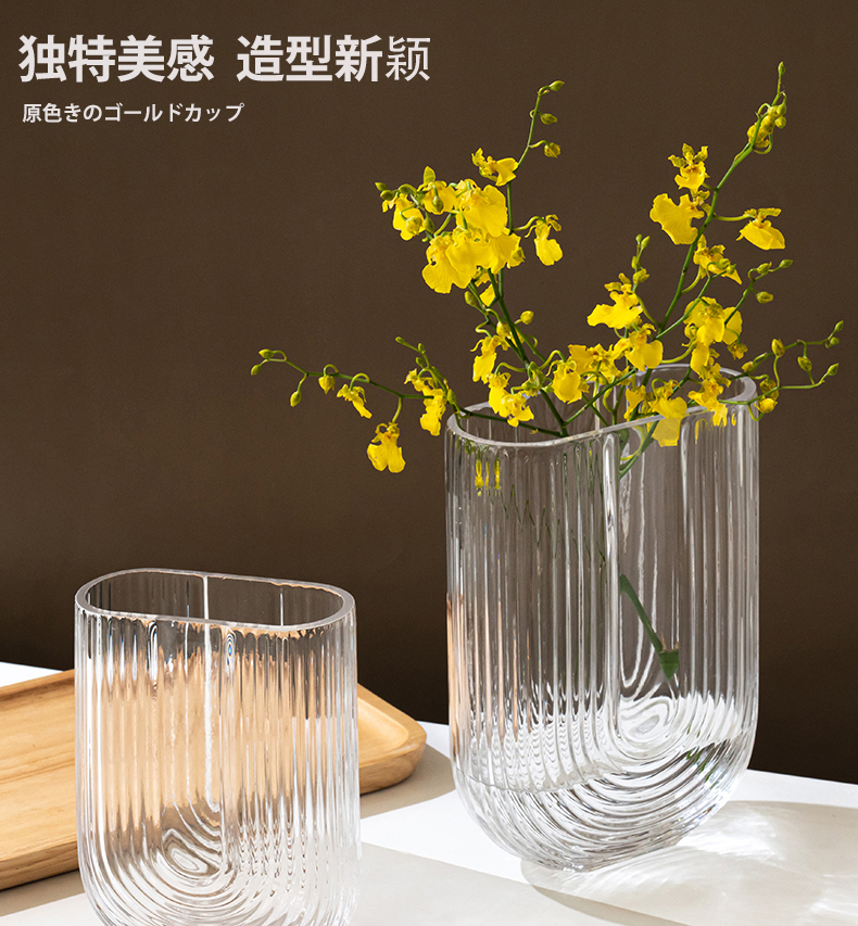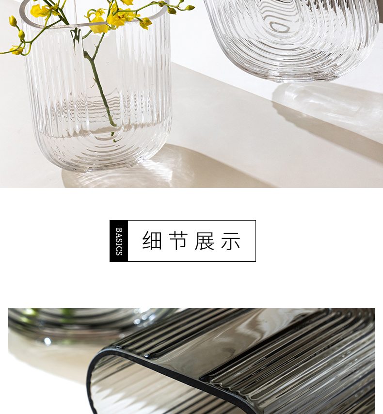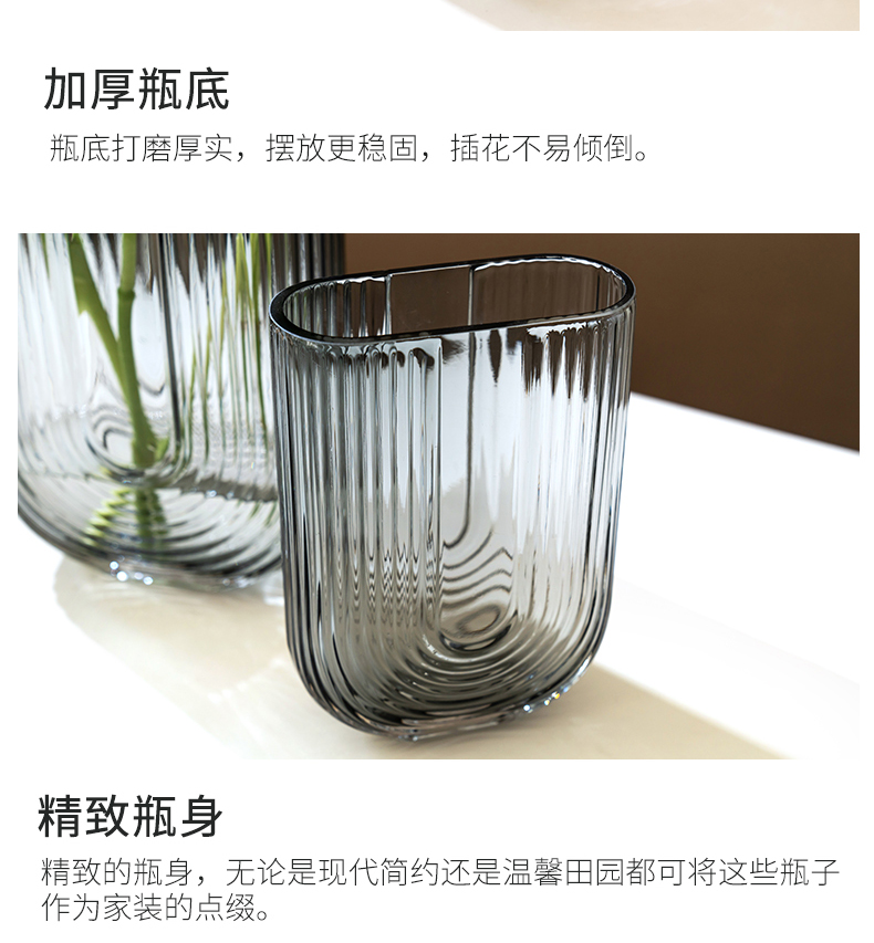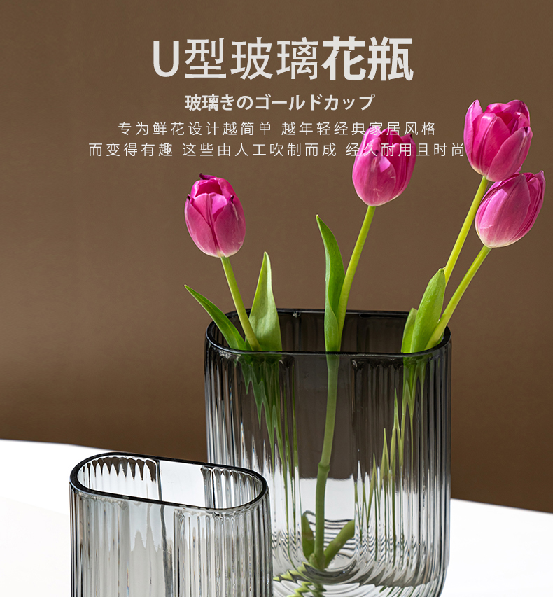 轻奢简约透明 U型玻璃花瓶-1005灰-1006灰