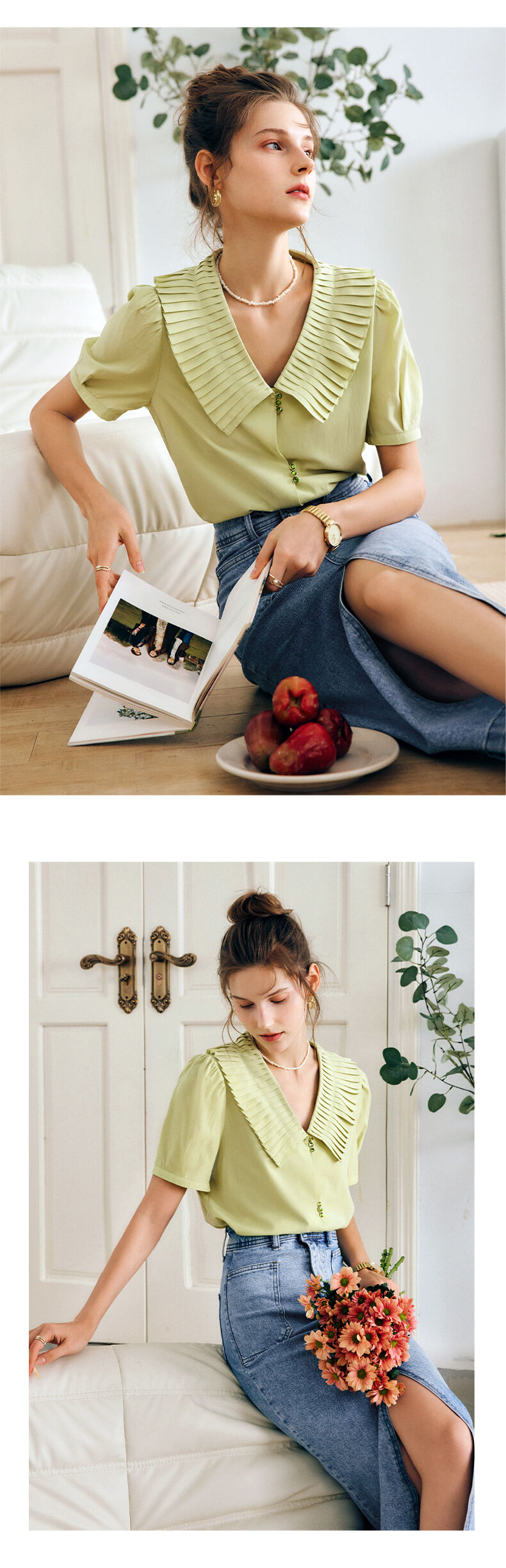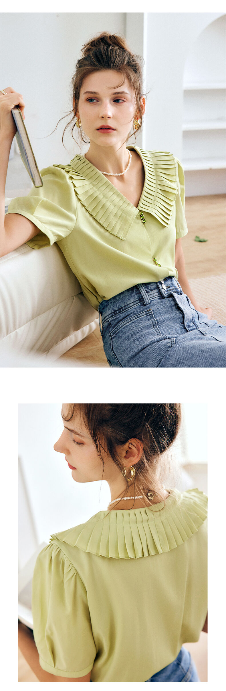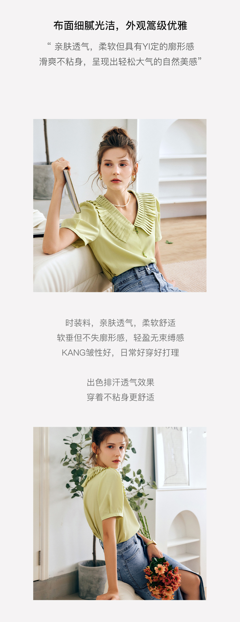 OLrain法式高级穿搭蕾丝雪纺衫女夏季2022年新款宽松时尚压褶衬衣