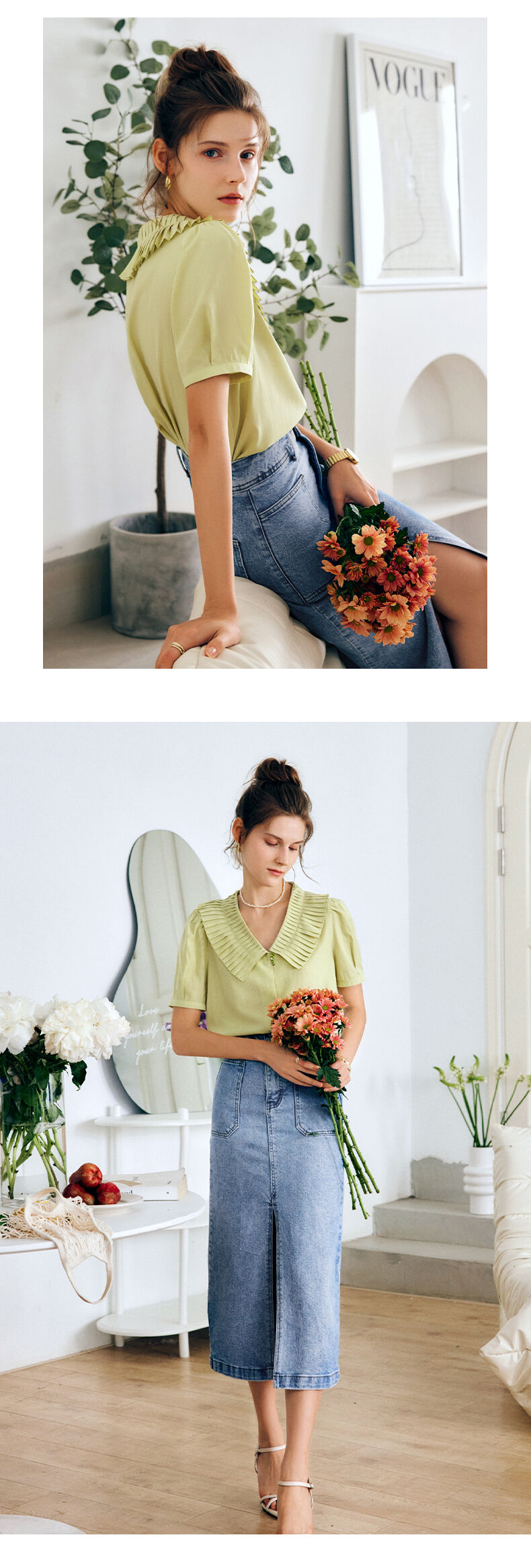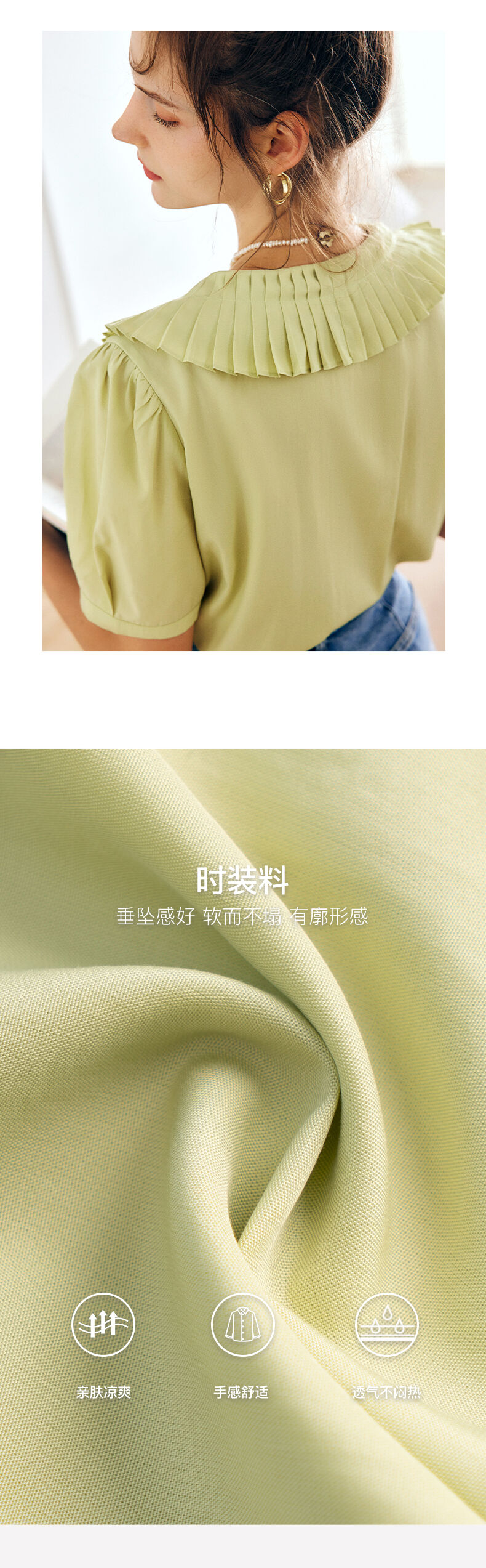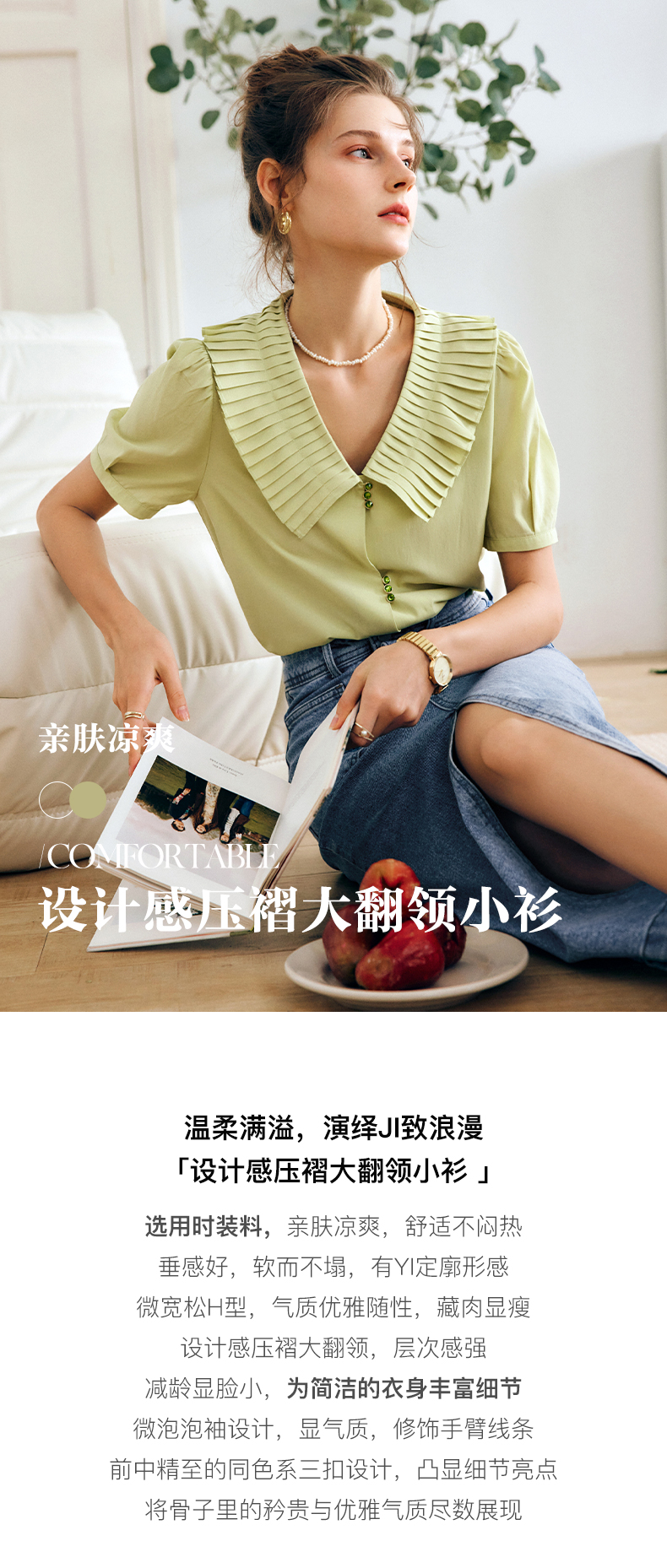 OLrain法式高级穿搭蕾丝雪纺衫女夏季2022年新款宽松时尚压褶衬衣