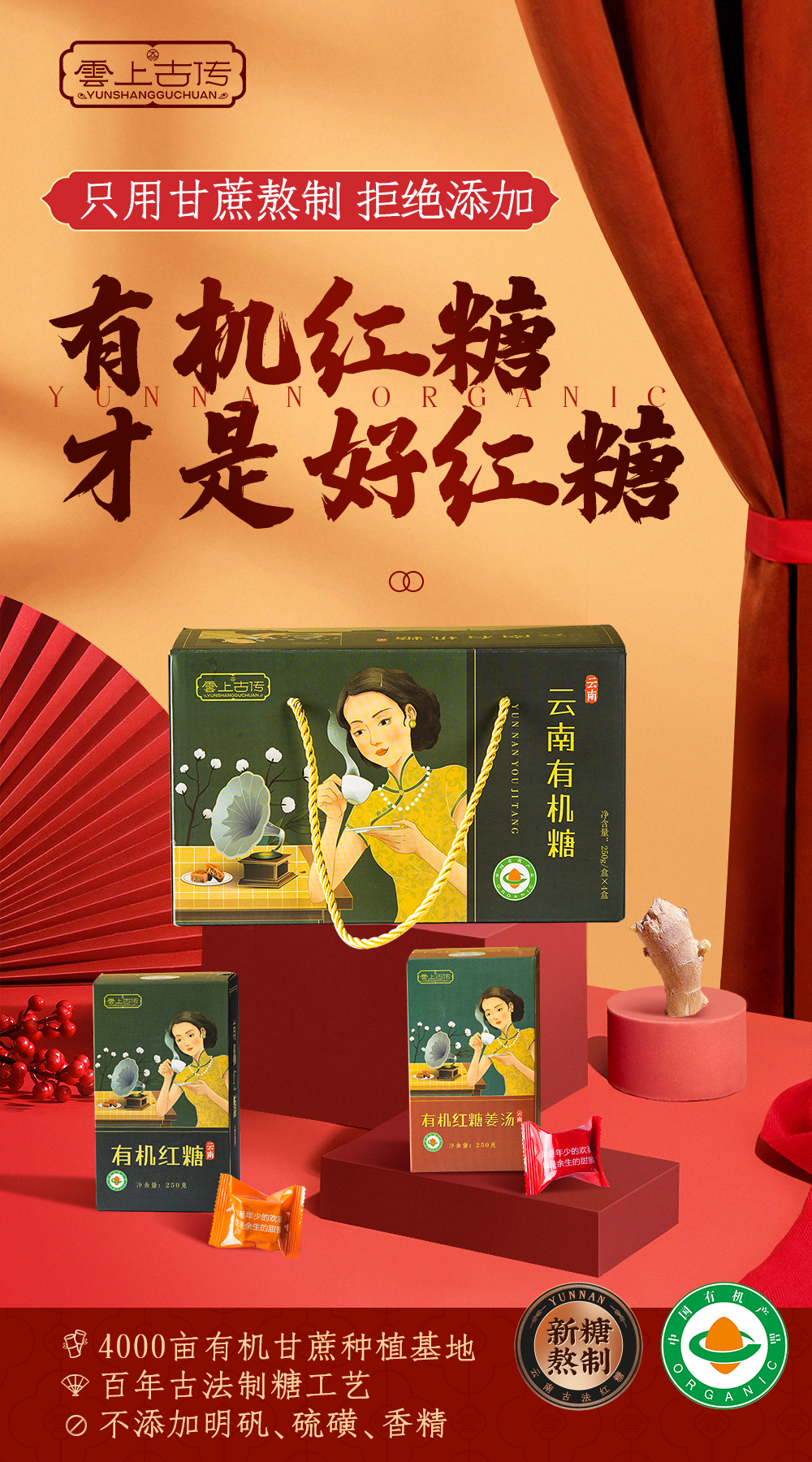 云南有机红糖/有机红糖姜汤(250g*4盒)