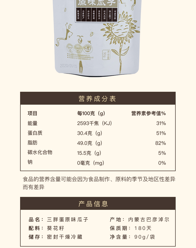三胖蛋 正宗内蒙特产原味大瓜子 每日坚果 葵花籽 坚果休闲零食 90g/袋