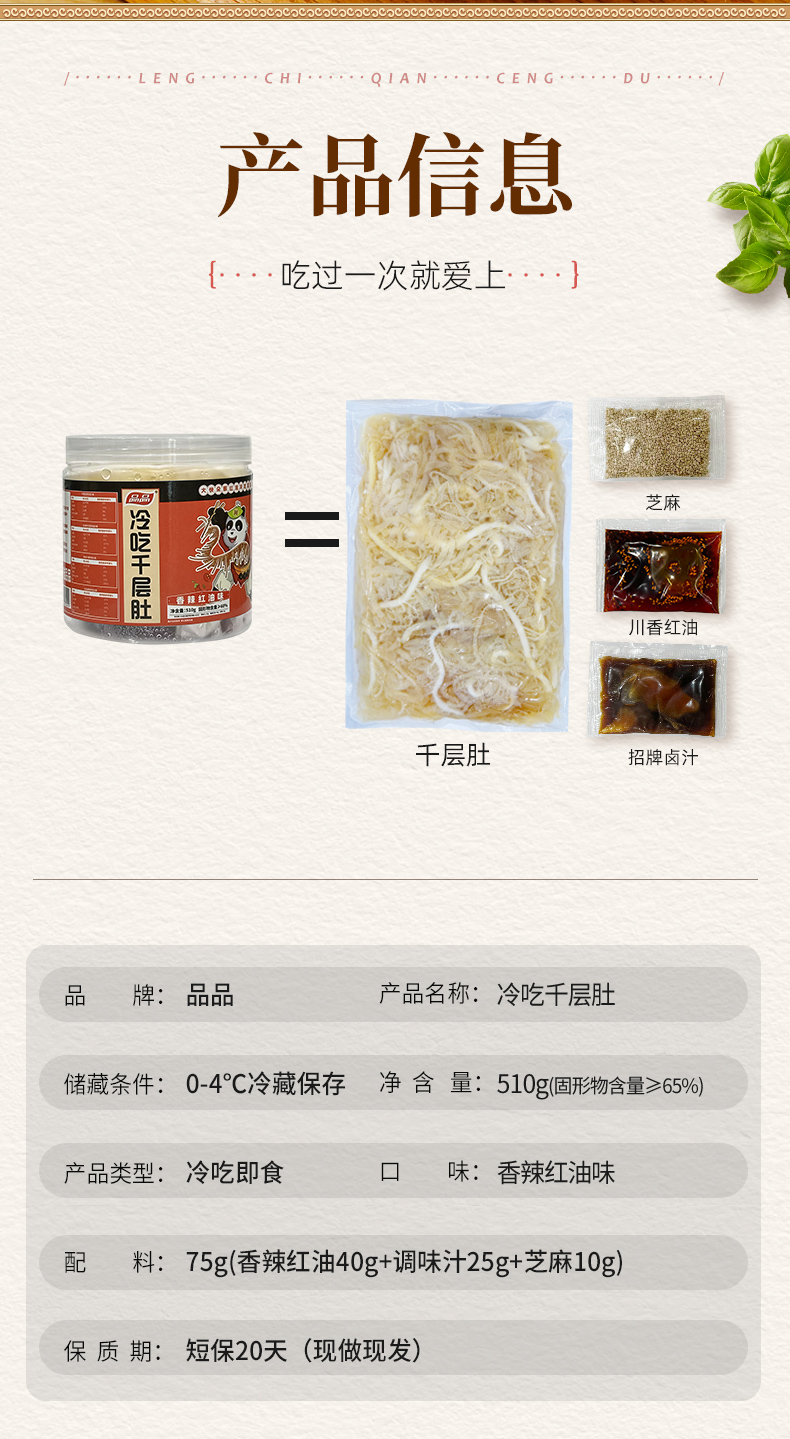 四川品品冷吃千层肚地道川味香辣红油味鲜拌脆爽510g/罐