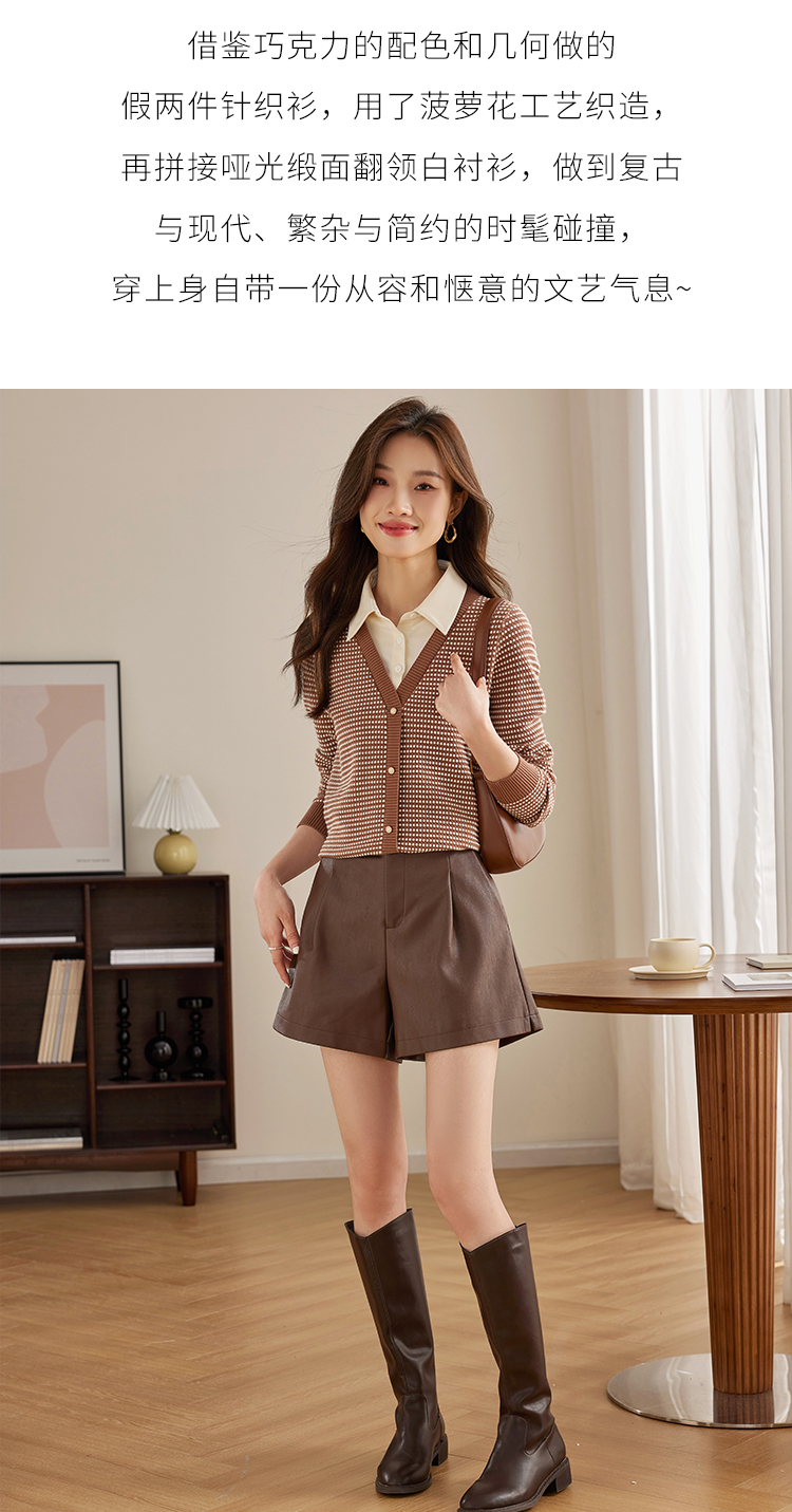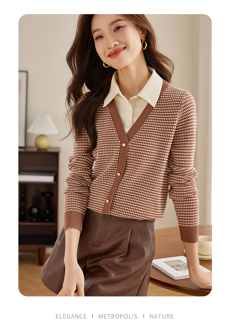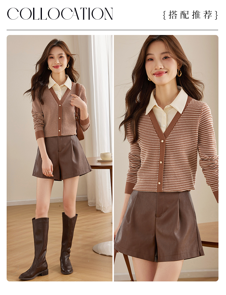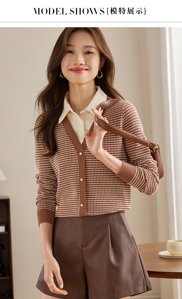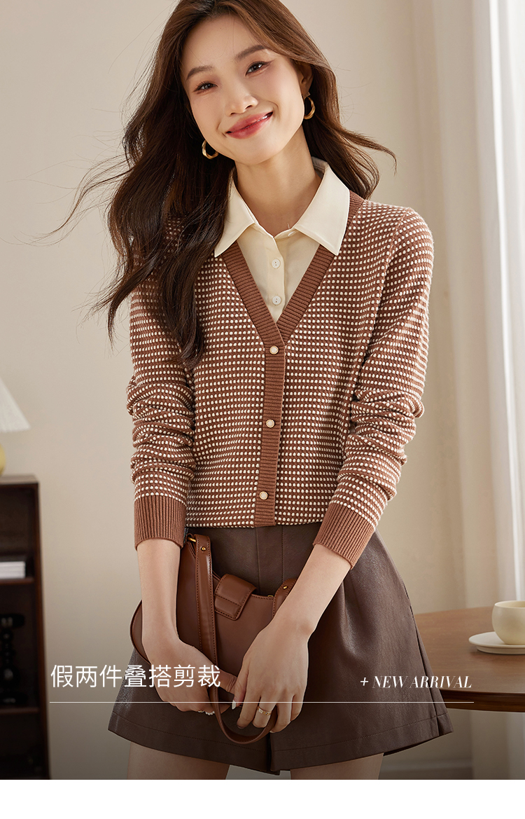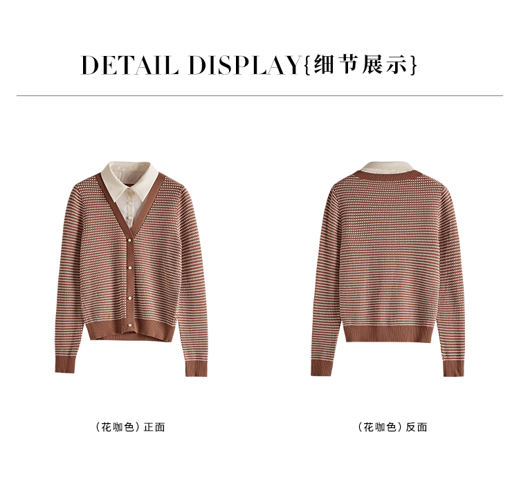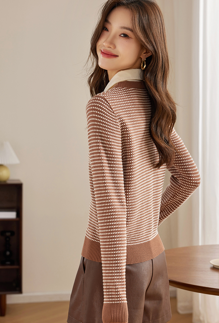 【专属特价】熙世界polo领拼接复古条纹针织衫女2025秋新款设计感假两件上衣