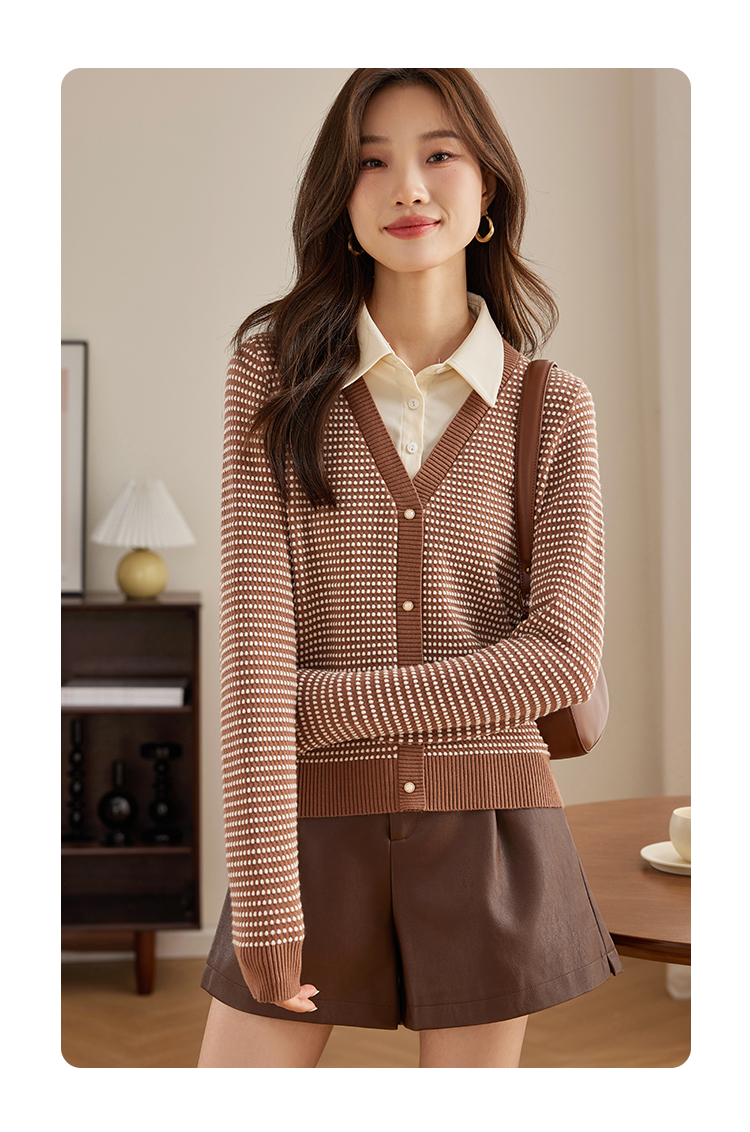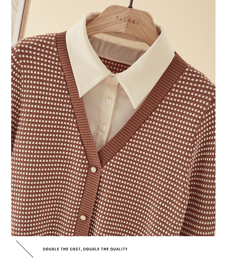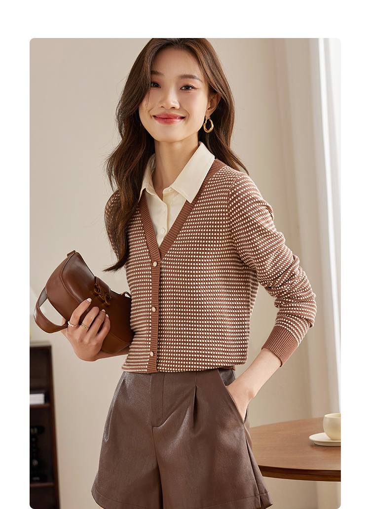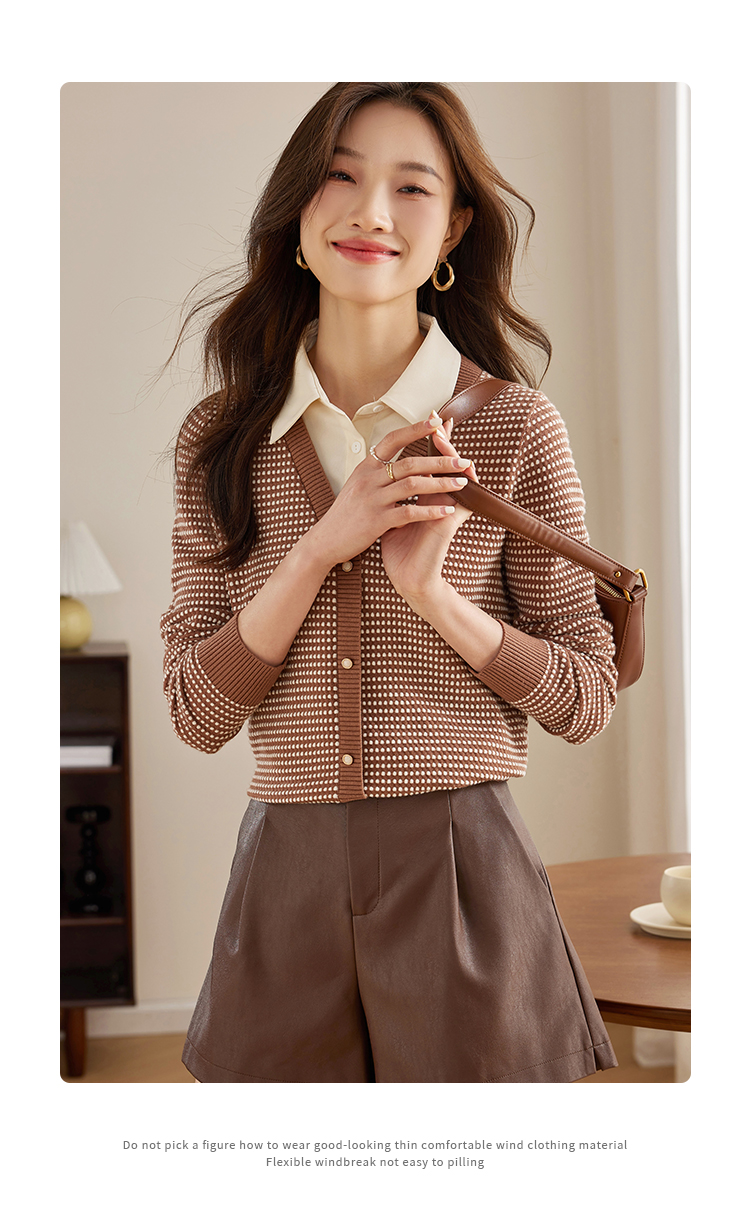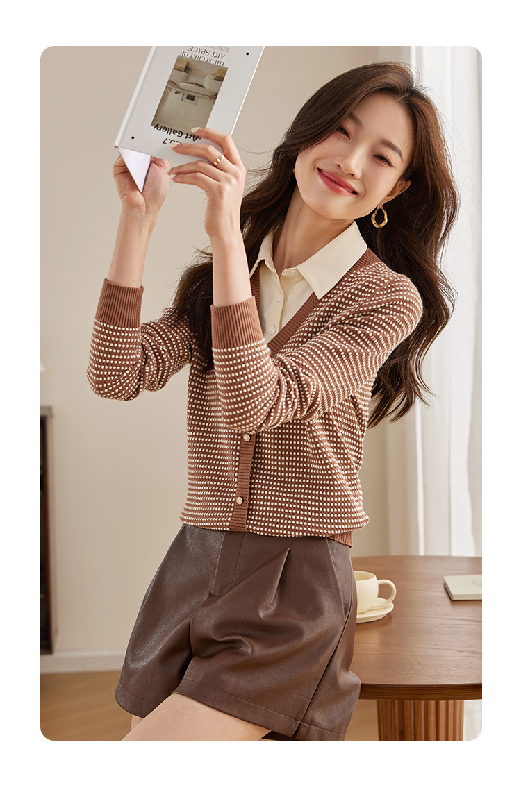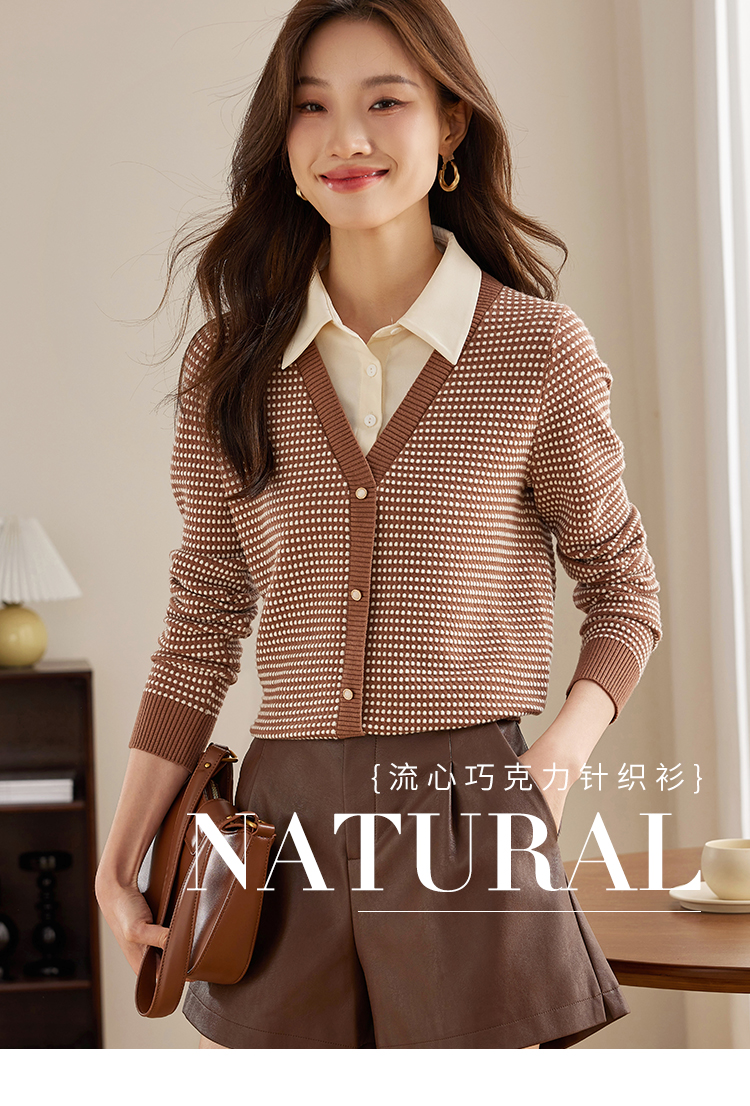 【专属特价】熙世界polo领拼接复古条纹针织衫女2025秋新款设计感假两件上衣
