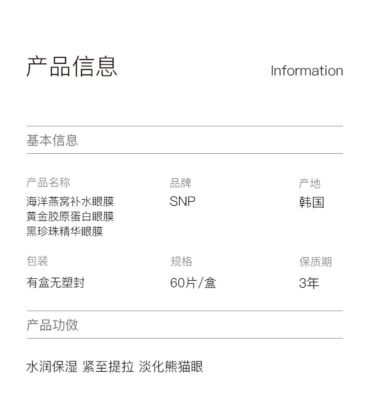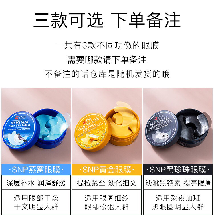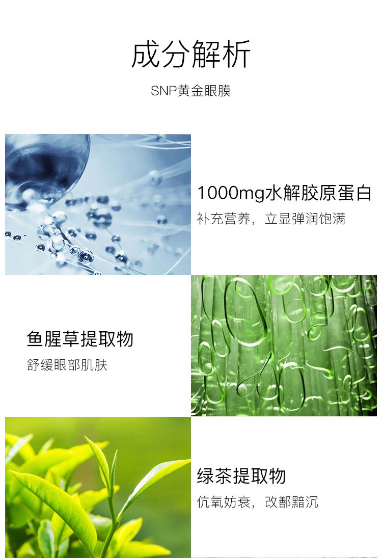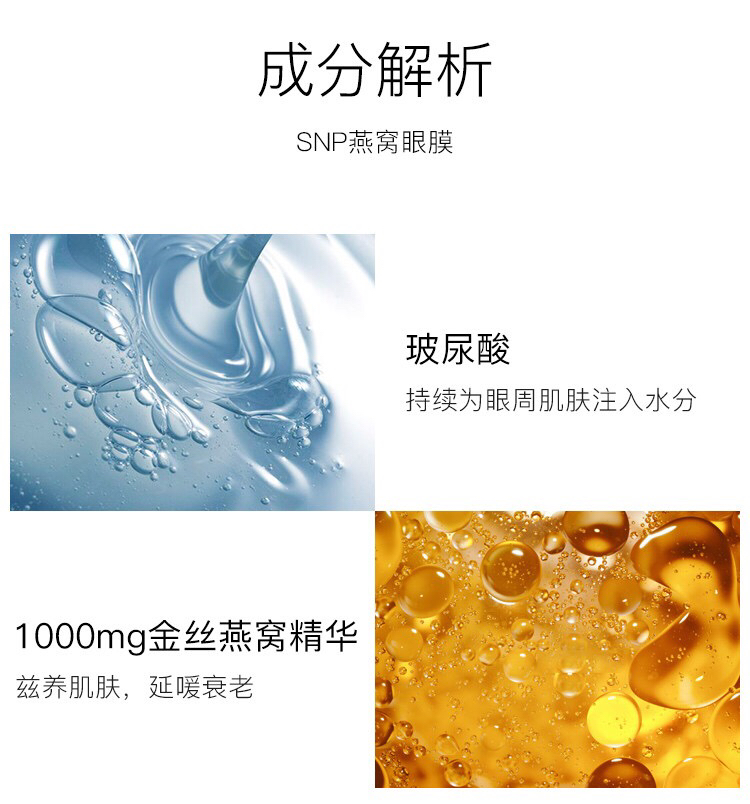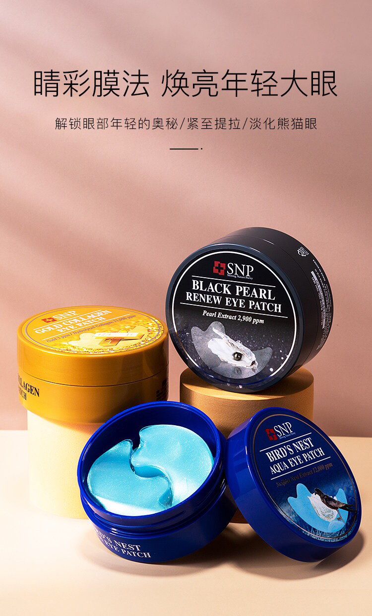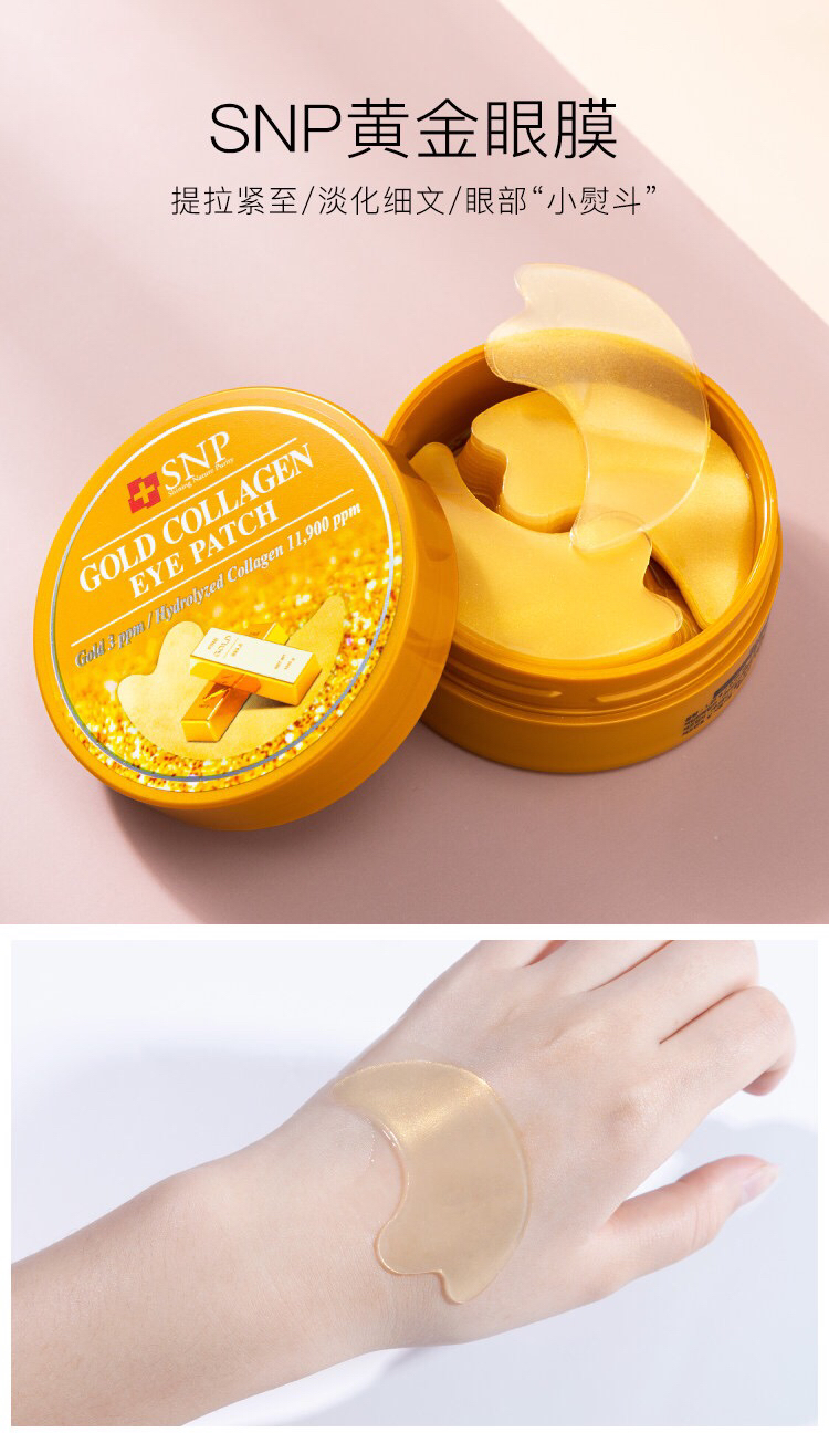 韩国SNP眼膜-黄金燕窝眼膜去黑眼圈眼袋淡化细纹提拉紧致补水保湿60片-会员6折